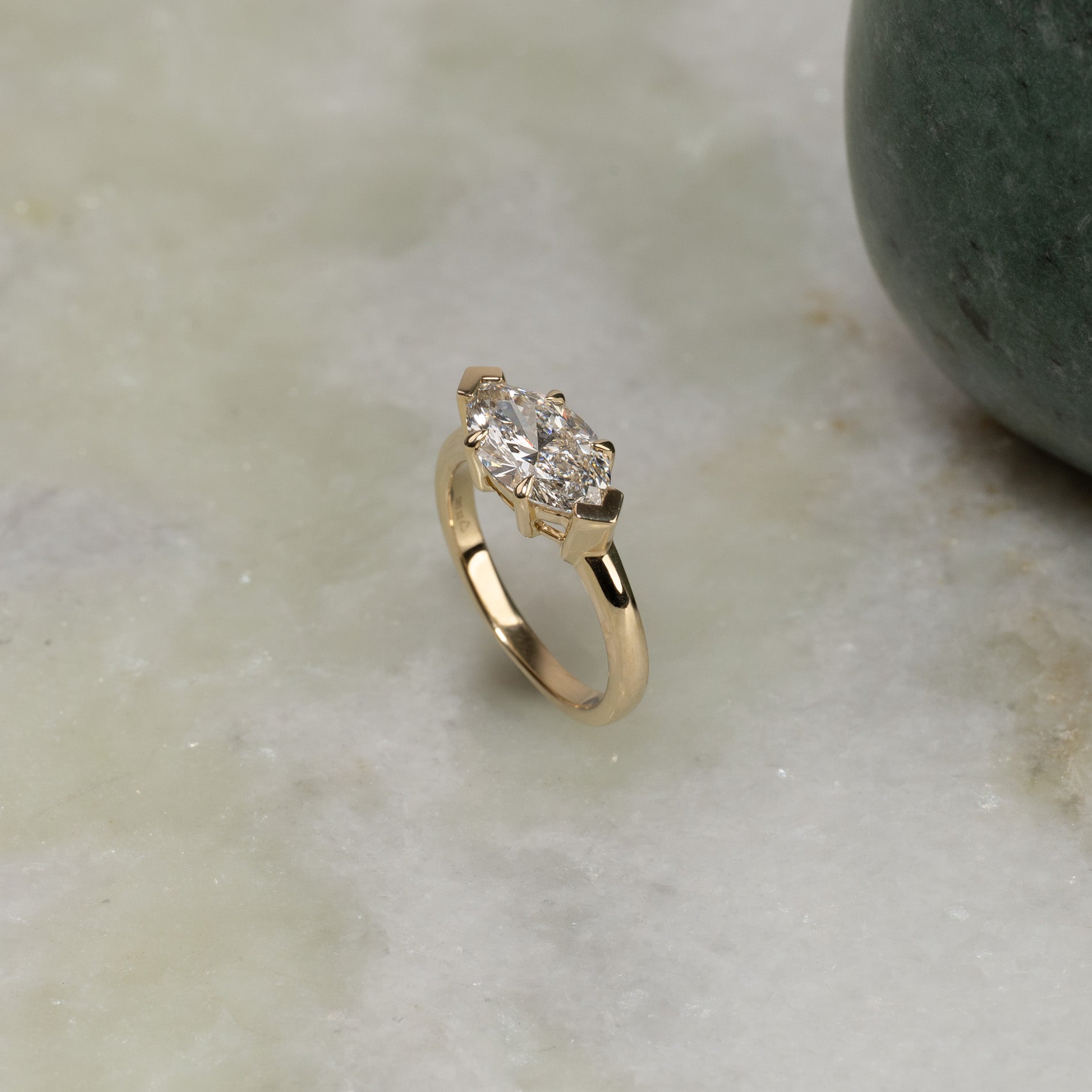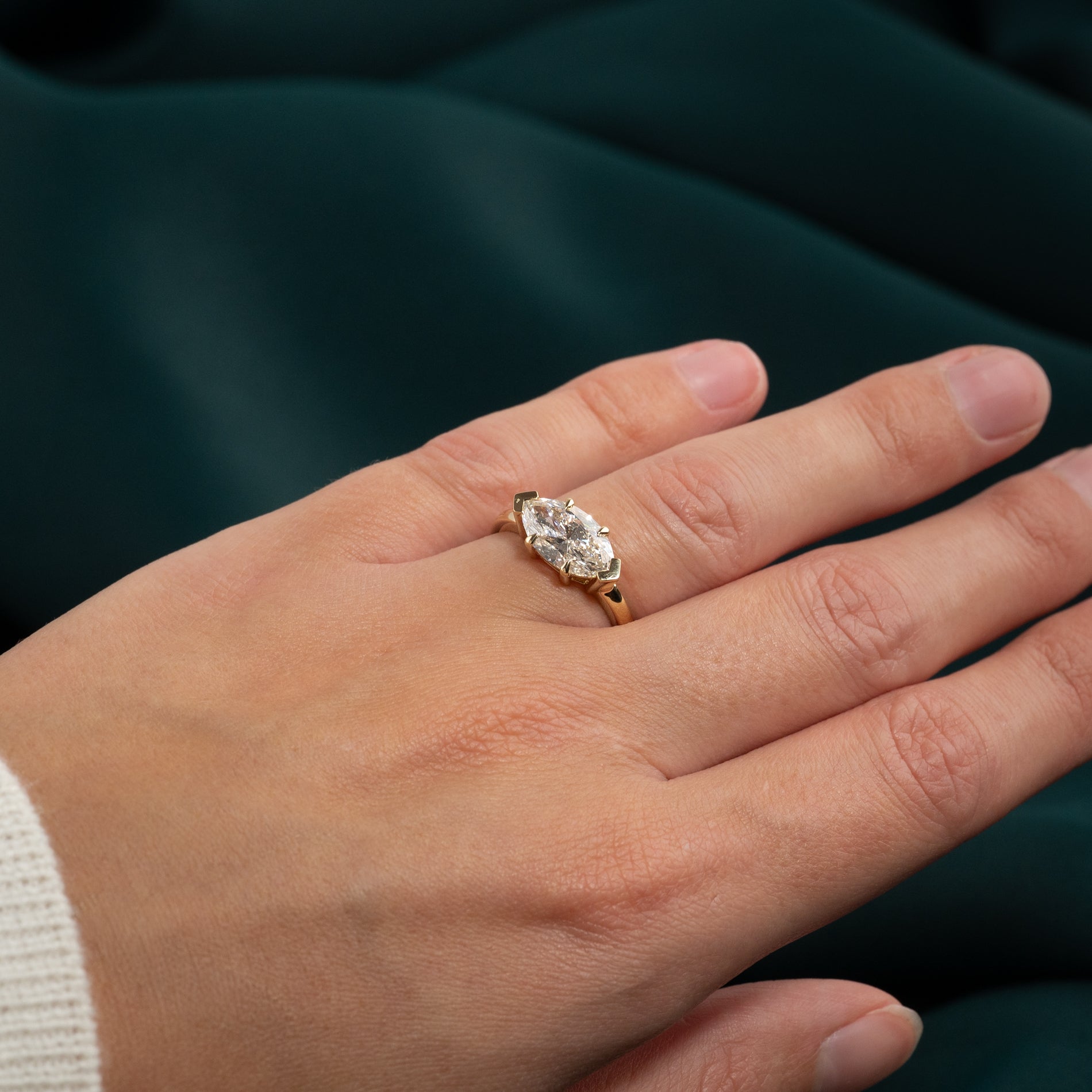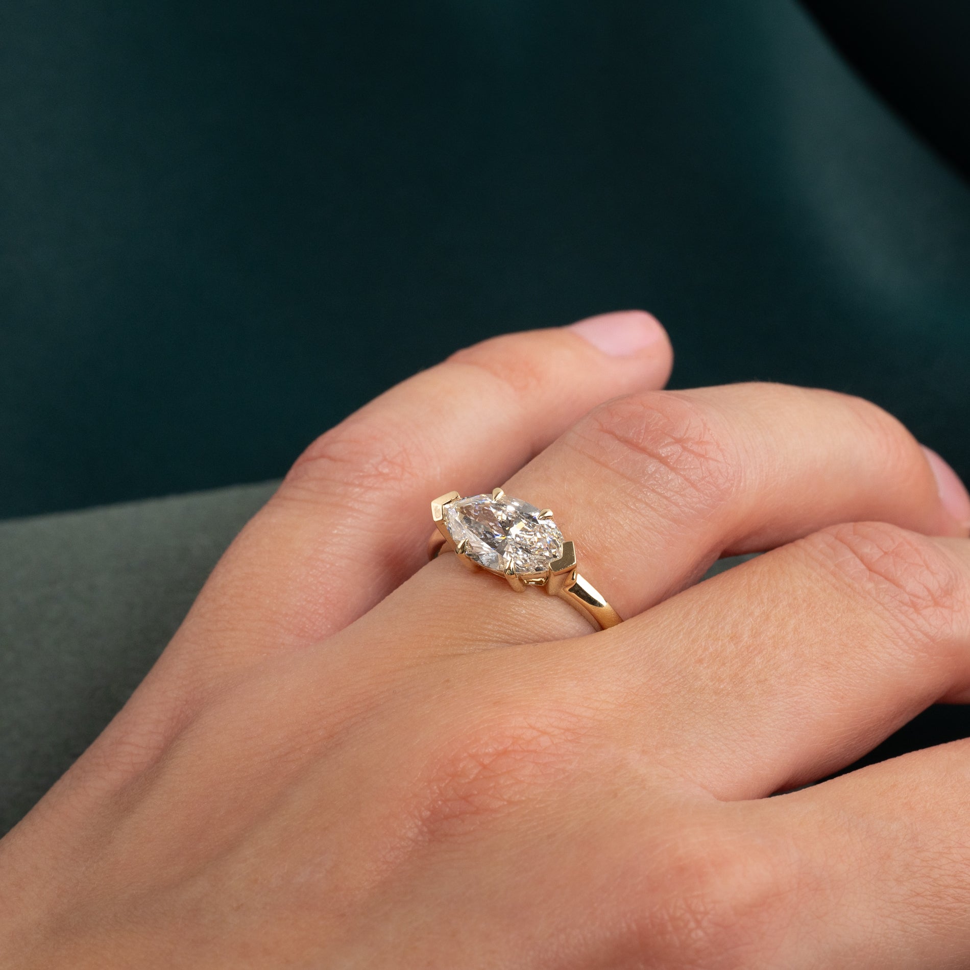 EAST TO WEST MARQUISE-CUT SOLITAIRE LAB-DIAMOND RING - 2.0ct - YG