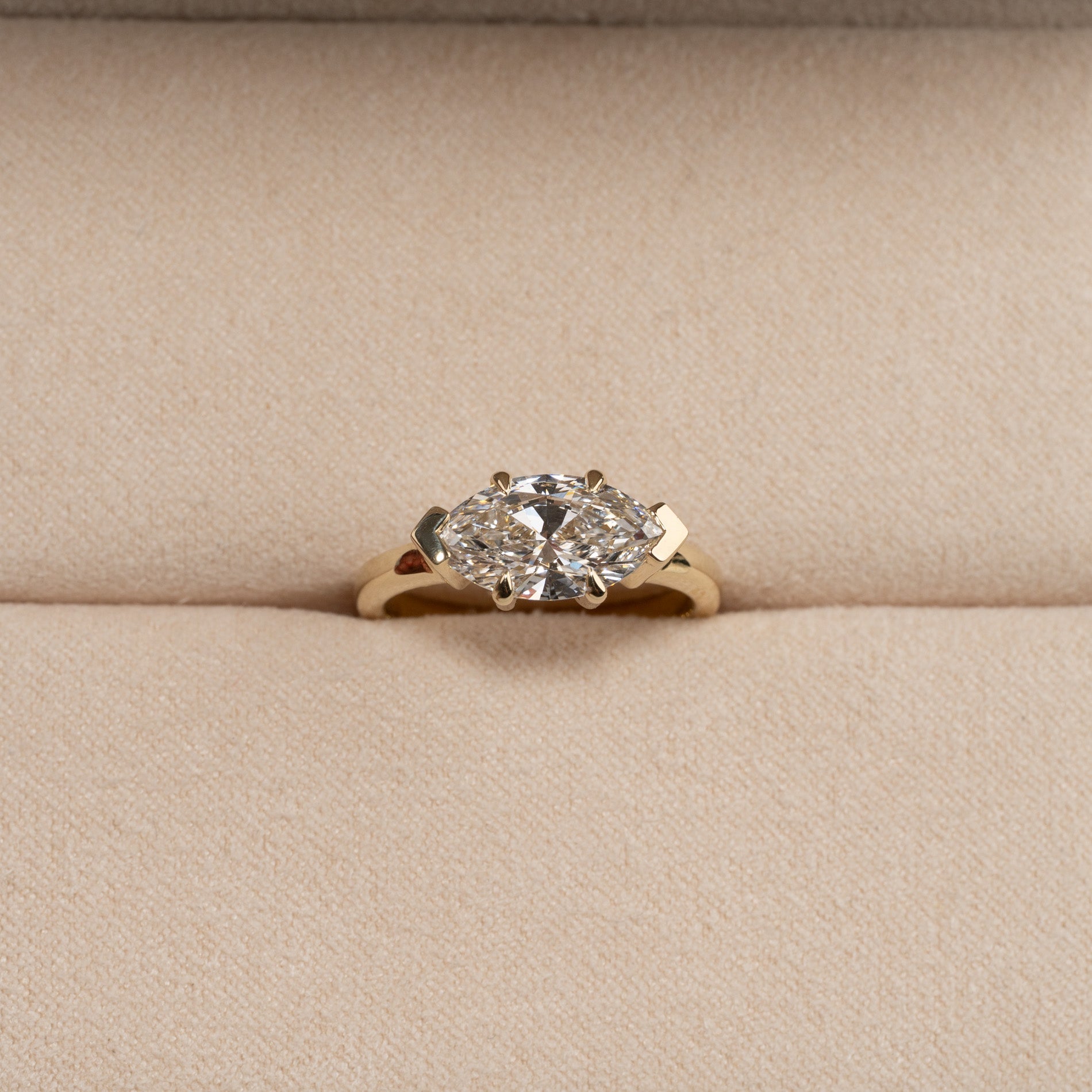 Øst-vest solitaire med 2,0 ct. marquise-slipt lab-grown diamant