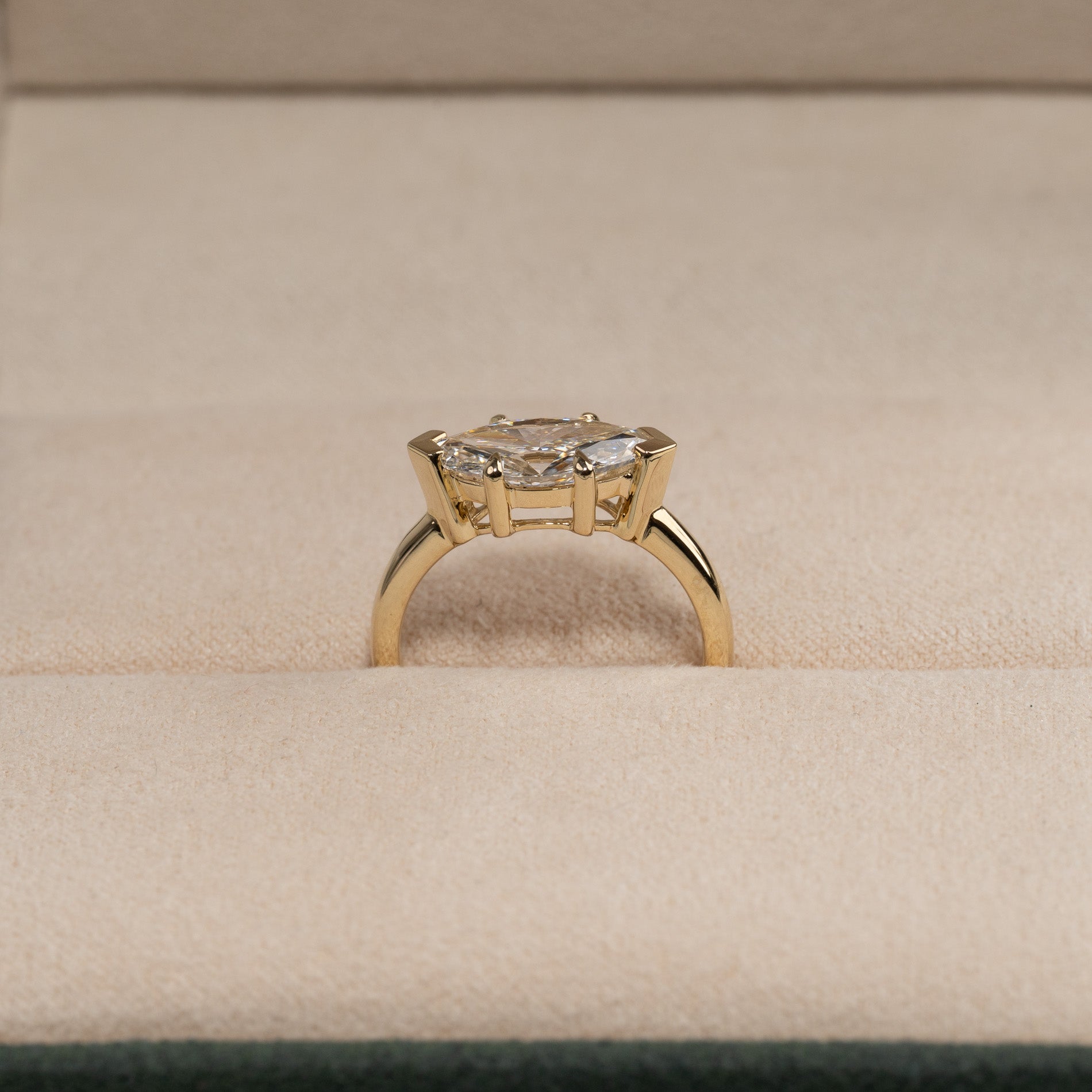 Ringen er laget av 14 karat massivt gull med en 2,0 carat lab-growndiamant i farge E-F (River) og klarhet VVS. Smykket er laget med omhu; diamantene er blant annet laget ved hjelp av solenergi, og gullet er 100 % sertifisert resirkulert.
