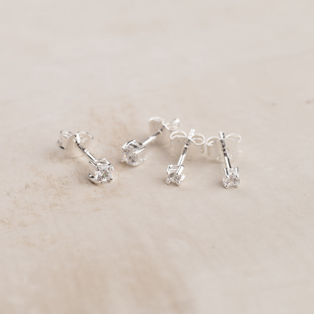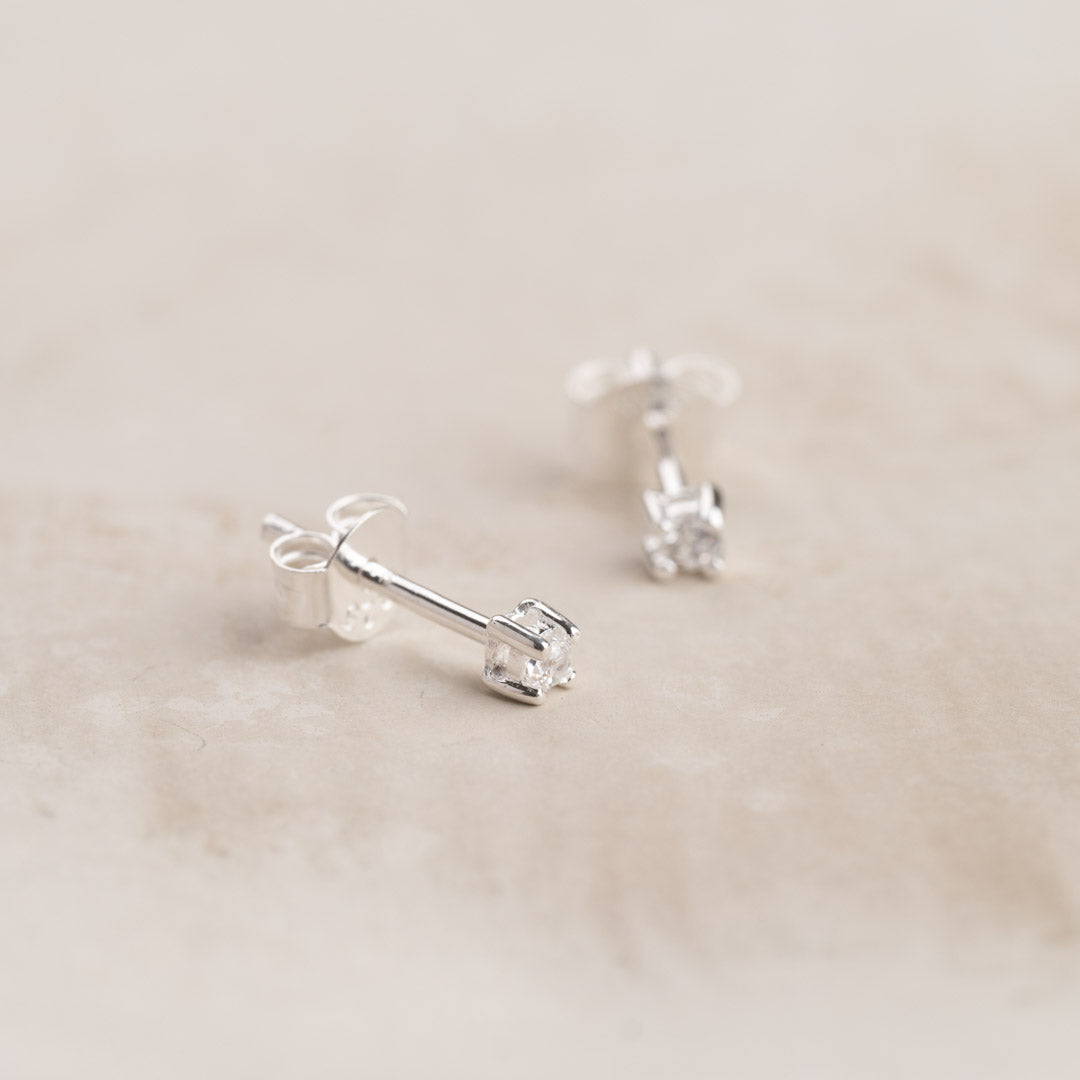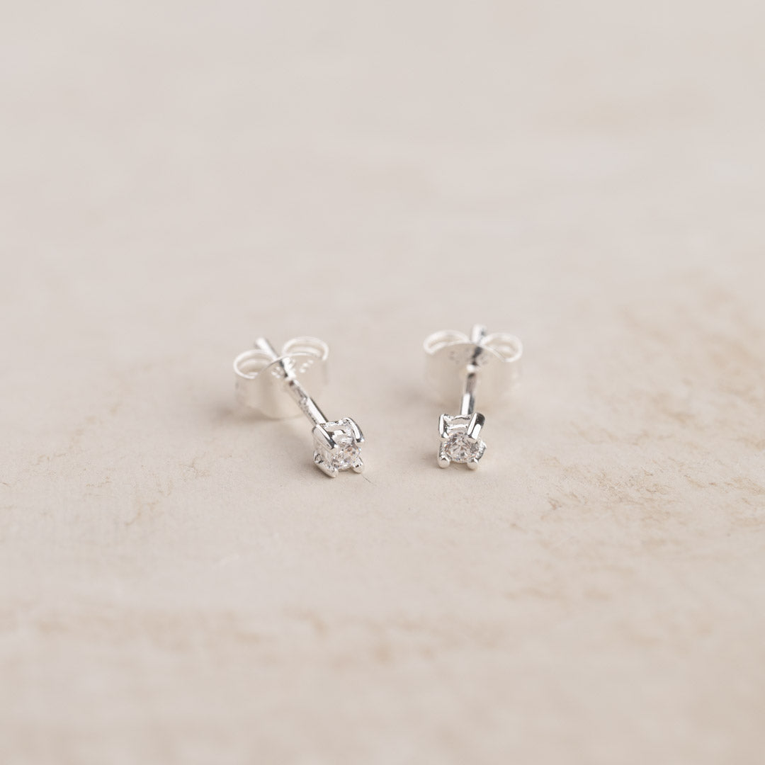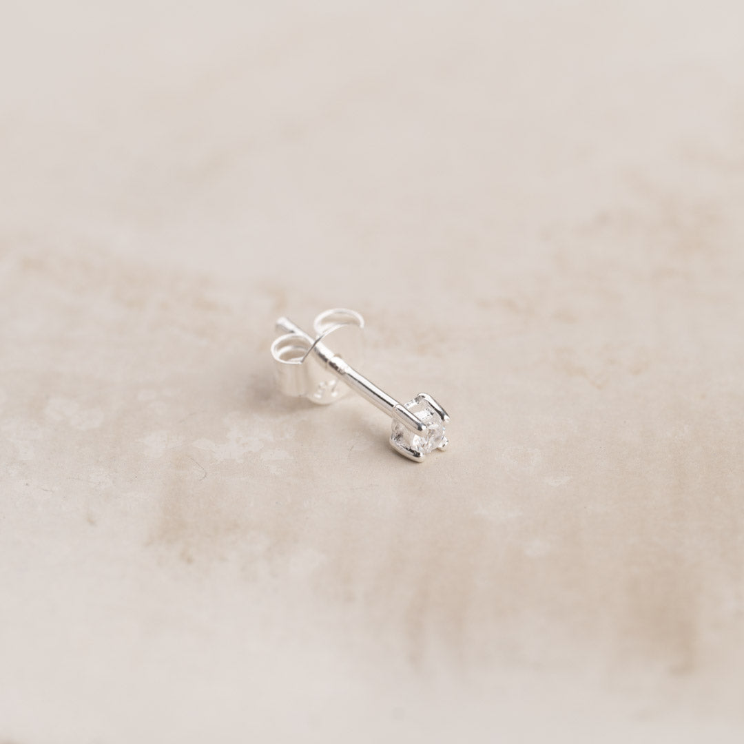 Klassiske øredobber med en klar zirkoniasten i sterlingsølv