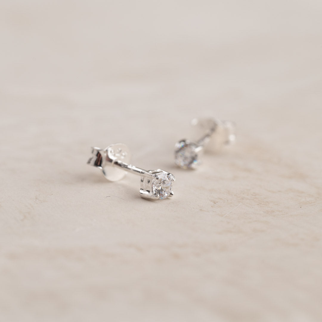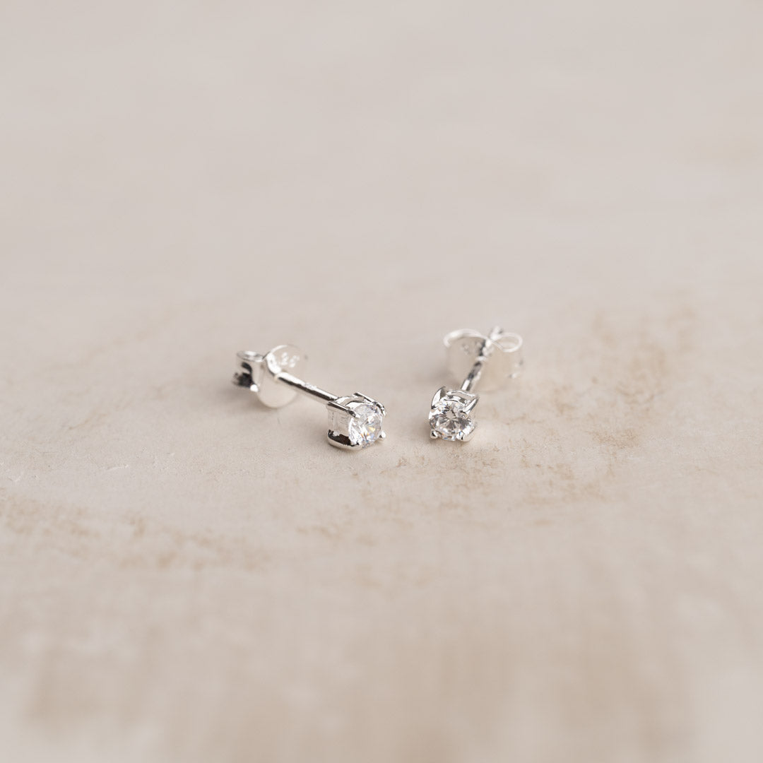 Klassiske øredobber med en klar zirkoniasten i sterlingsølv
