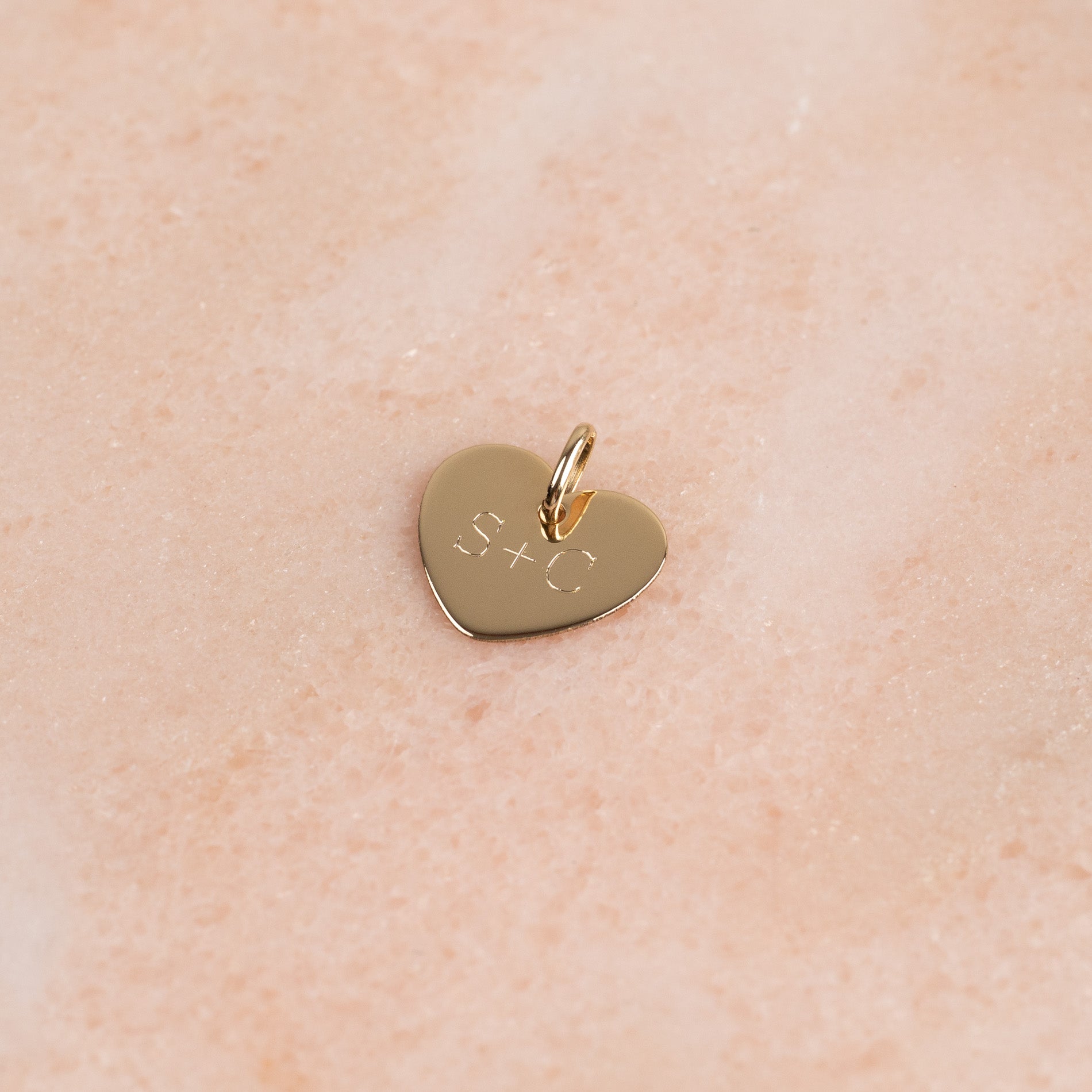 ENGRAVABLE HEART SOLID GOLD PENDANT - 12mm