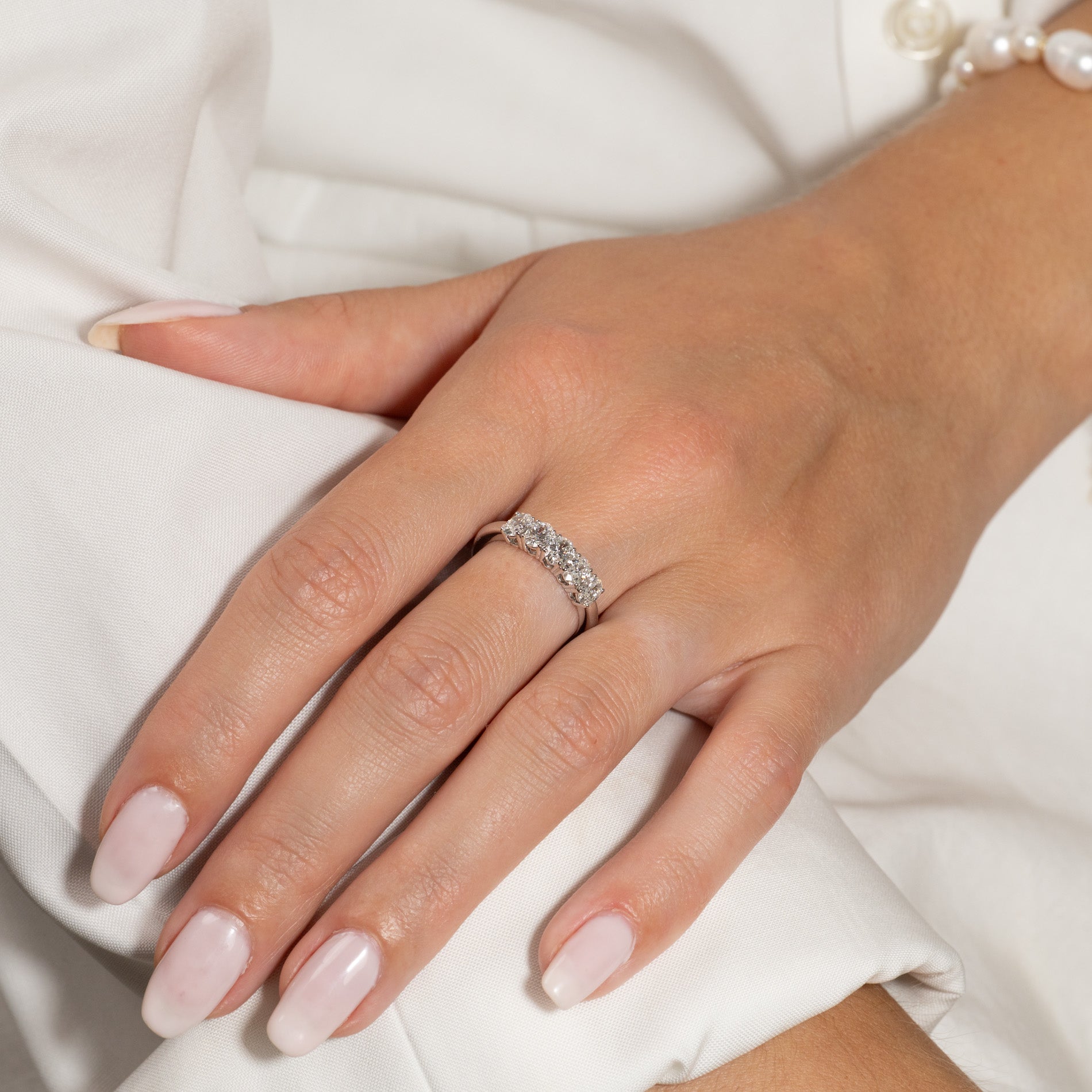 Femsteinsring med ovale lab-grown diamanter (1,0 ct.) i 14 kt. hvitt gull