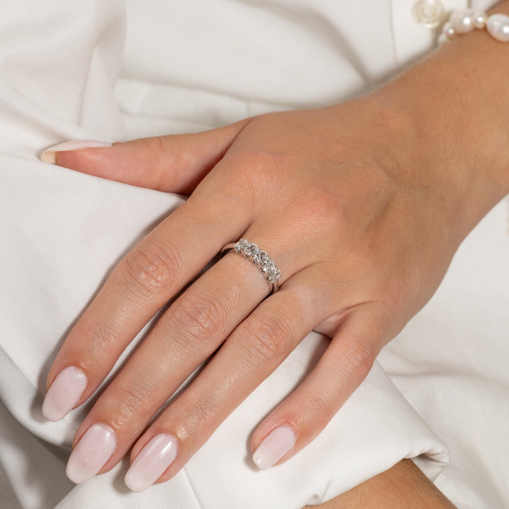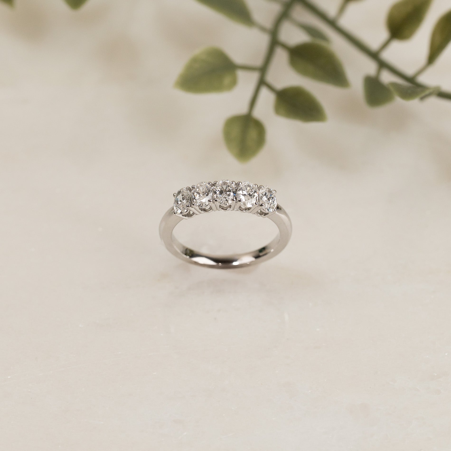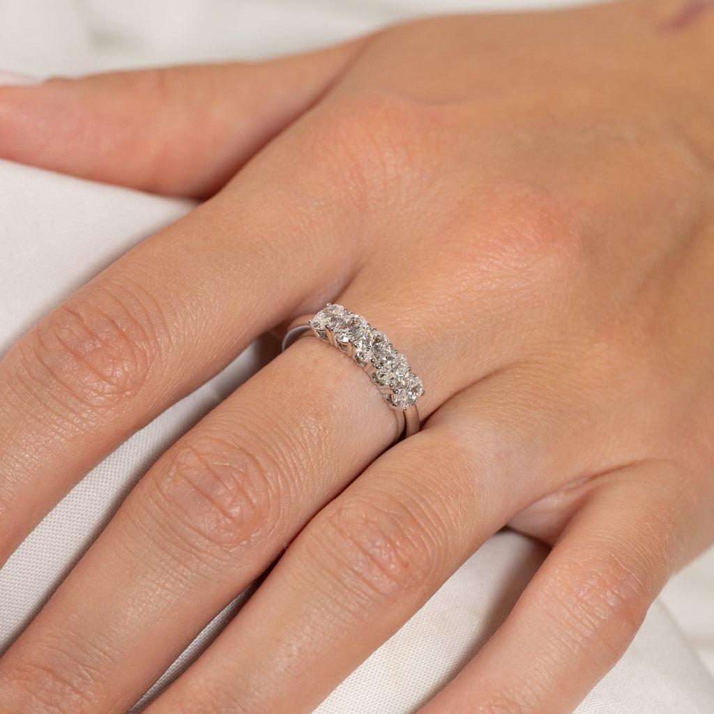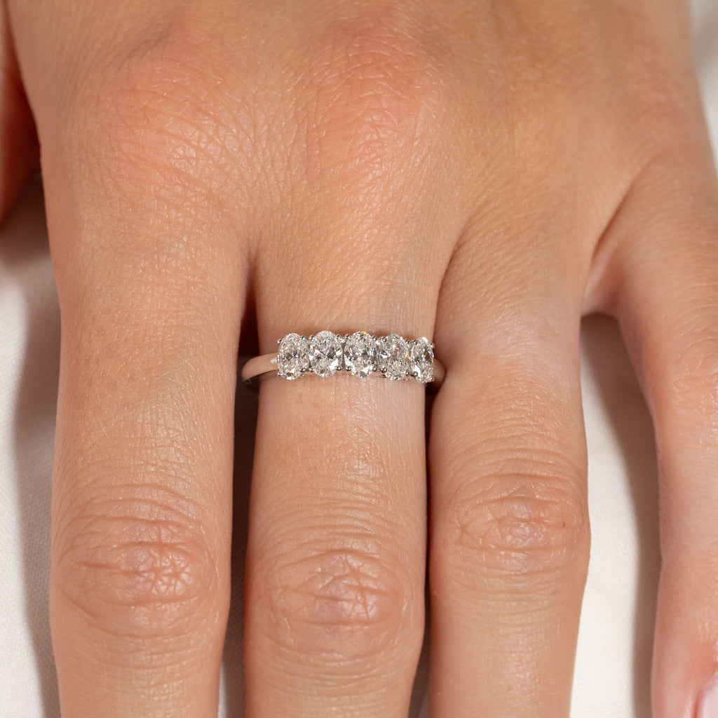 Femsteinsring i 14 karat hvitt gull med 5 ovale lab-grown diamanter på 0,2 carat hver, med en samlet vekt på 1 carat.