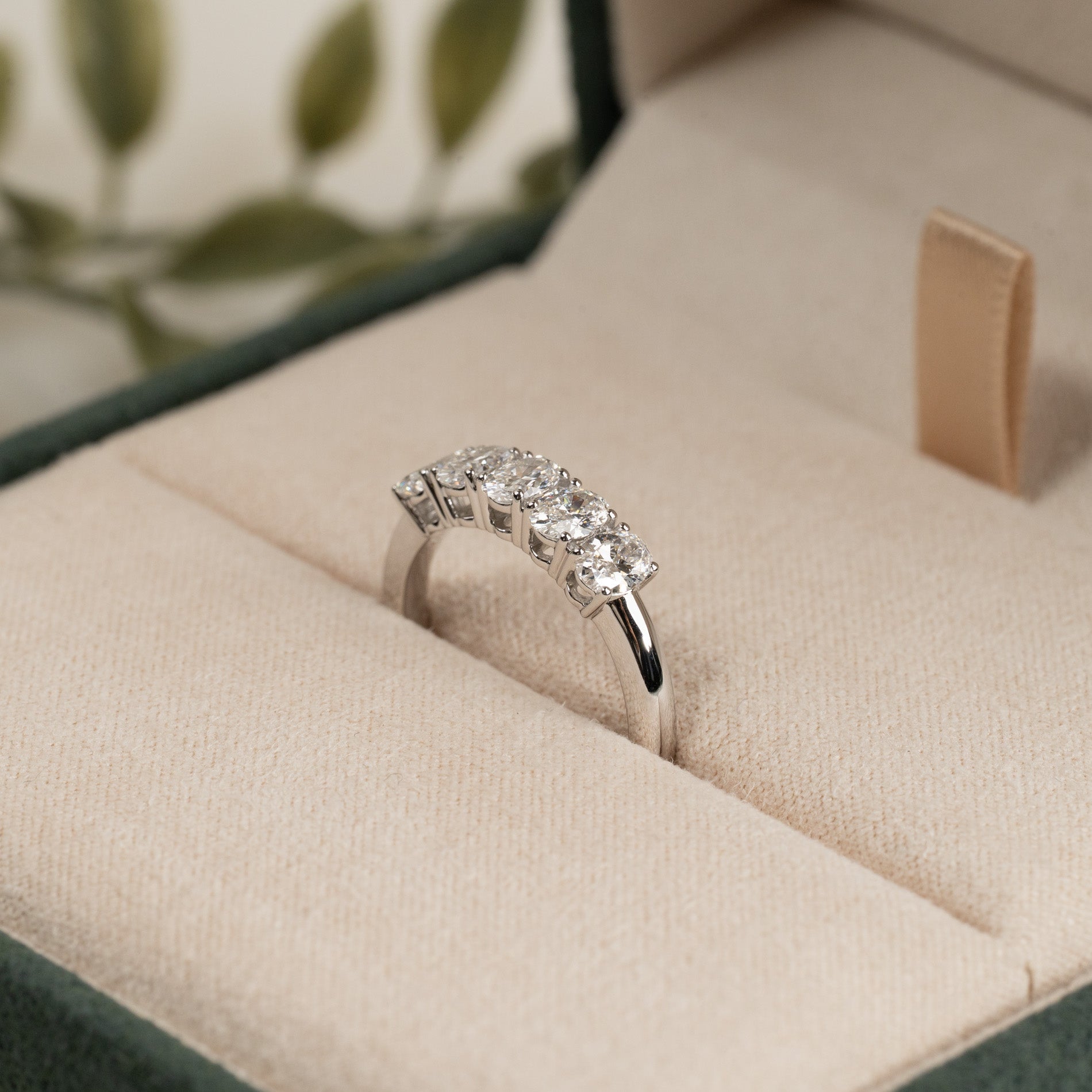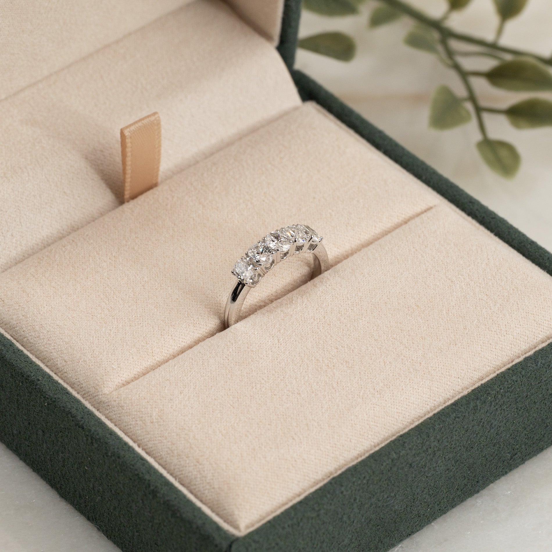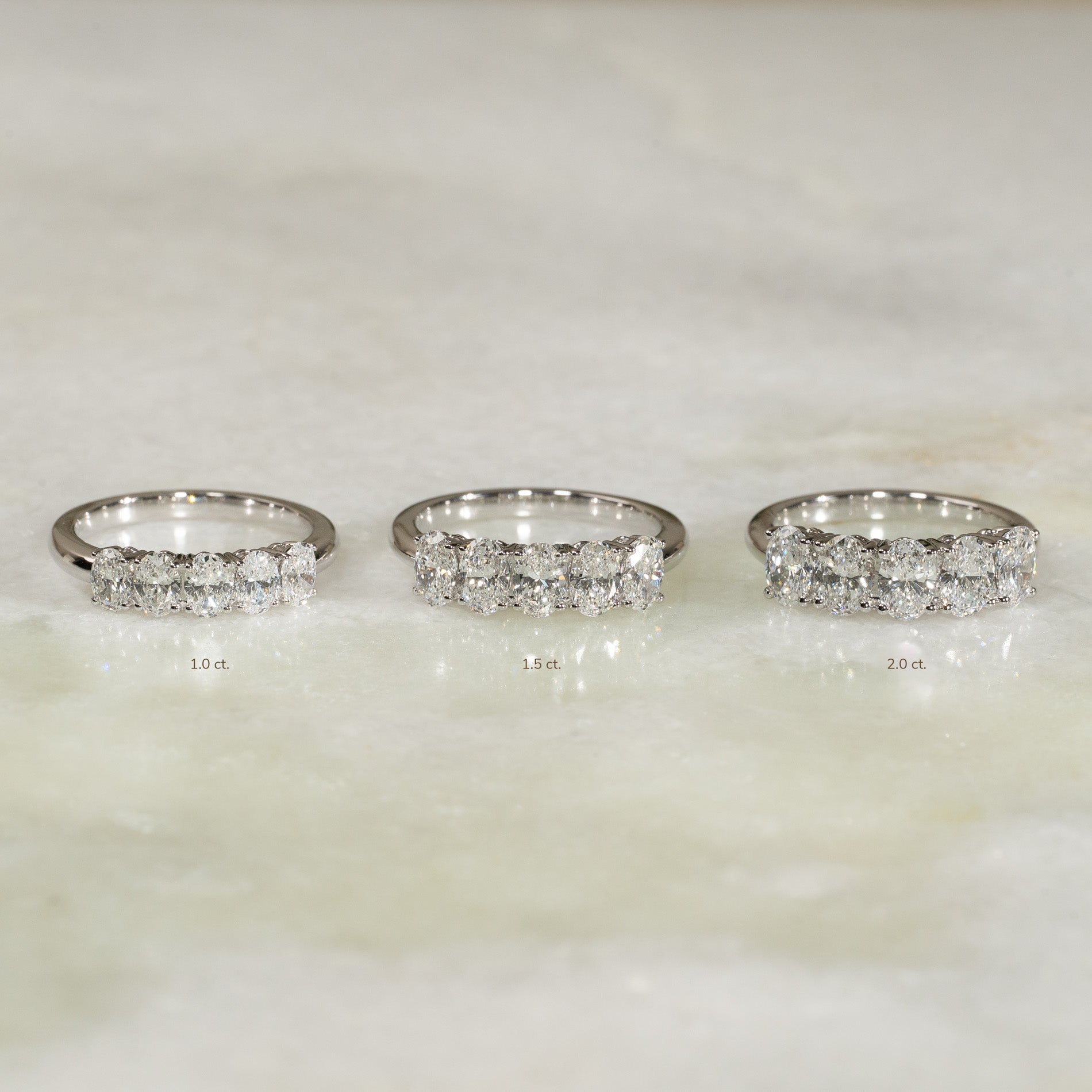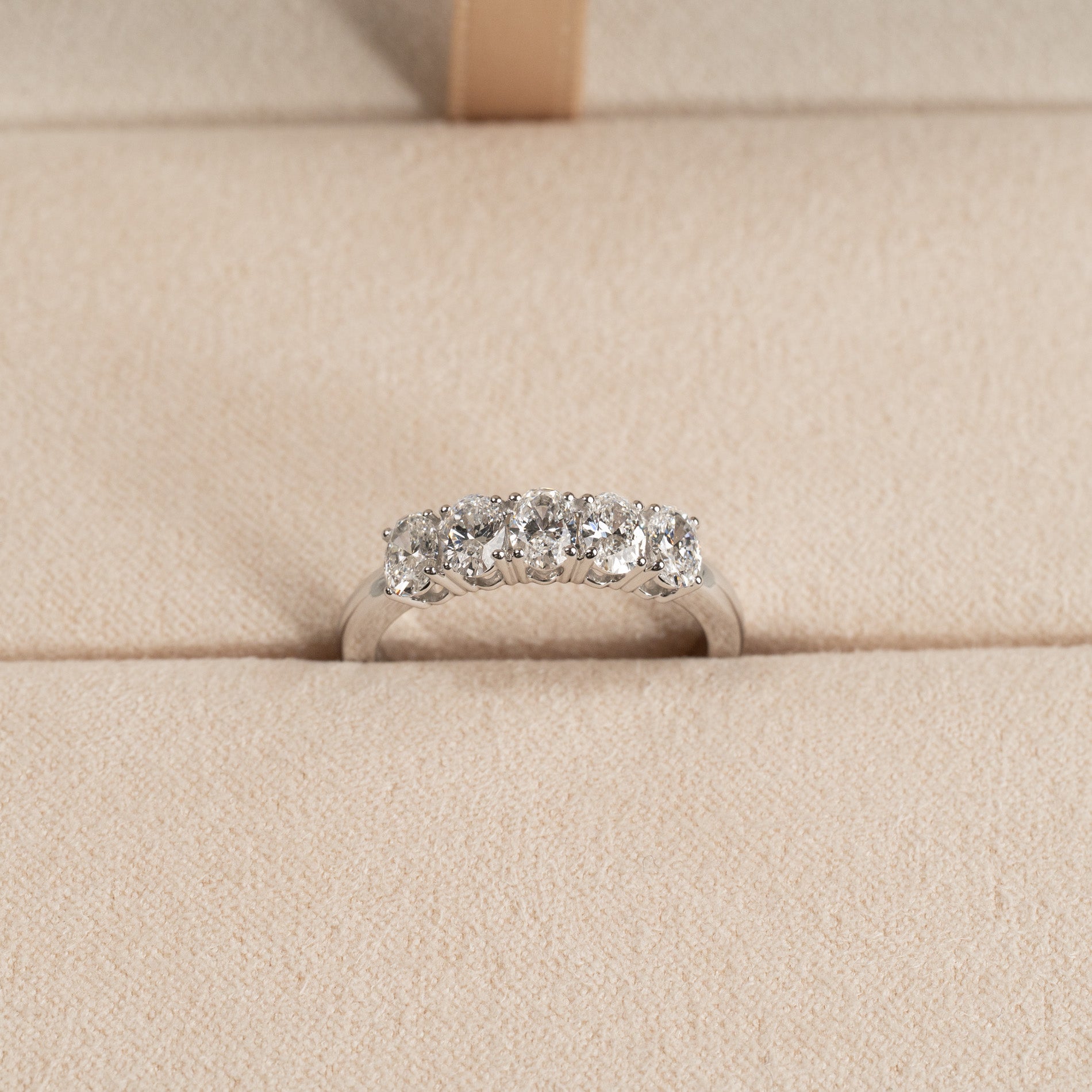 Femsteinsring i 14 karat hvitt gull med 5 ovale lab-grown diamanter på 0,2 carat hver, med en samlet vekt på 1 carat.