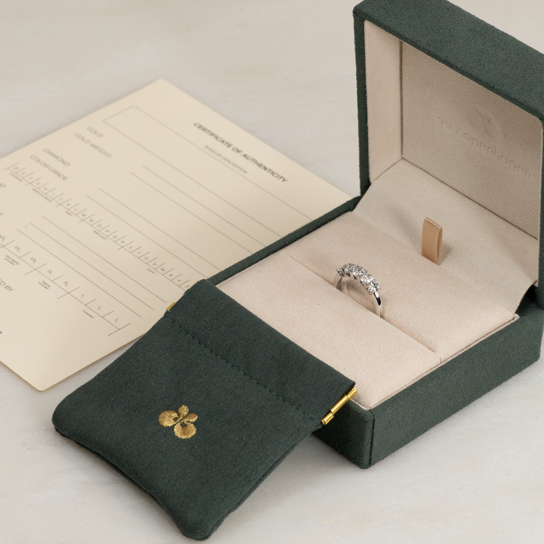 Smykket leveres i vår eksklusive Diamond Collection-eske. Esken inneholder et smykkeskrin, Sisi Copenhagen Certificate of Authenticity og en reise-pouch.