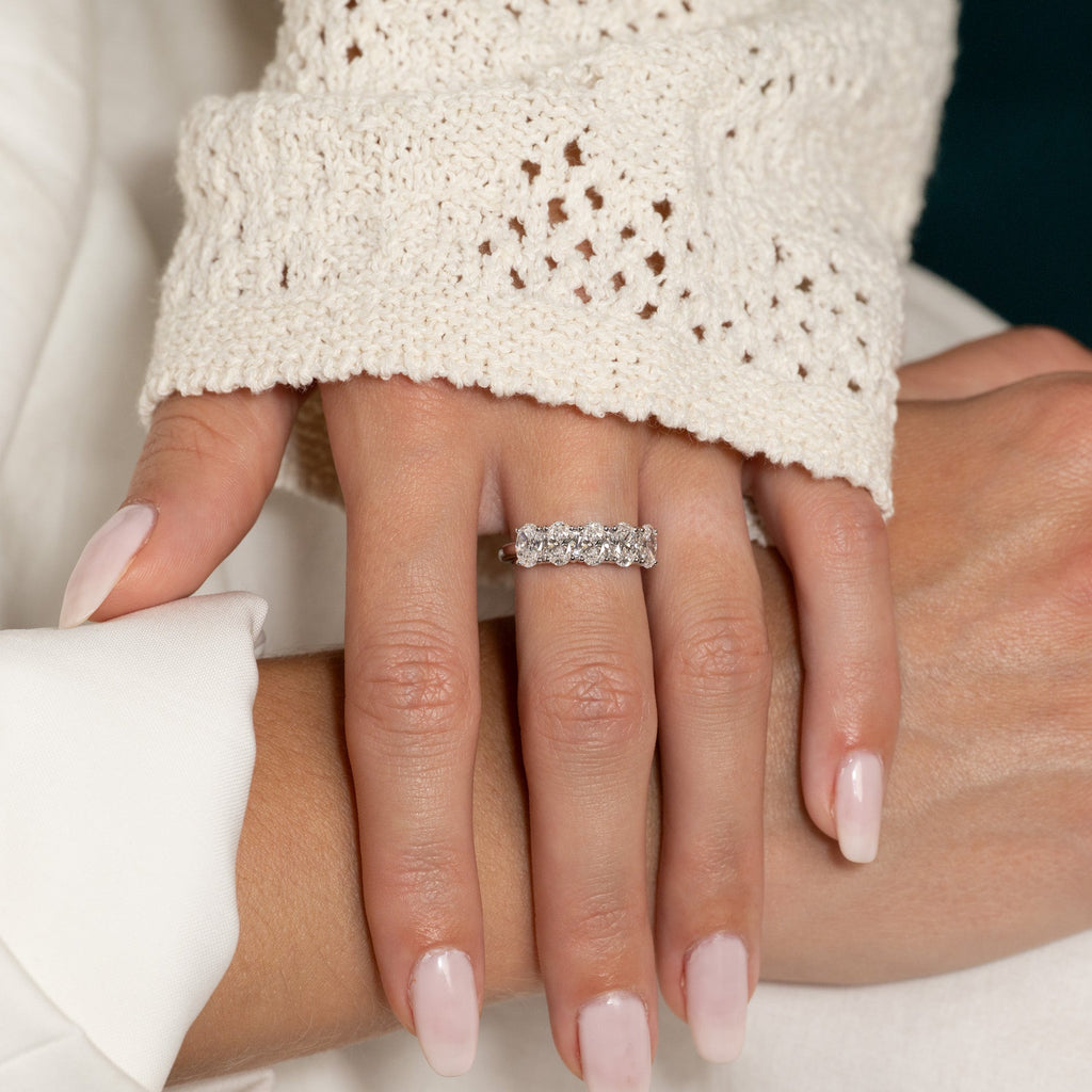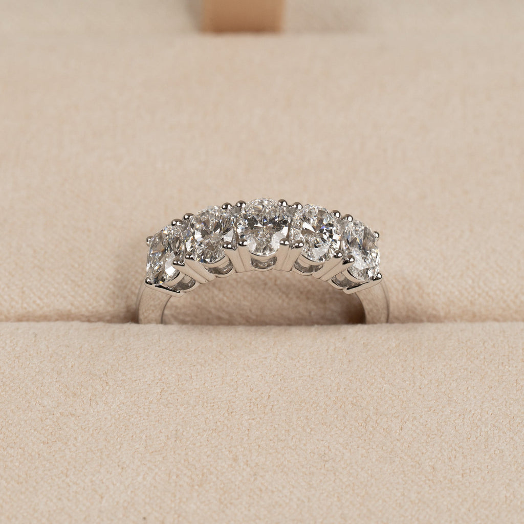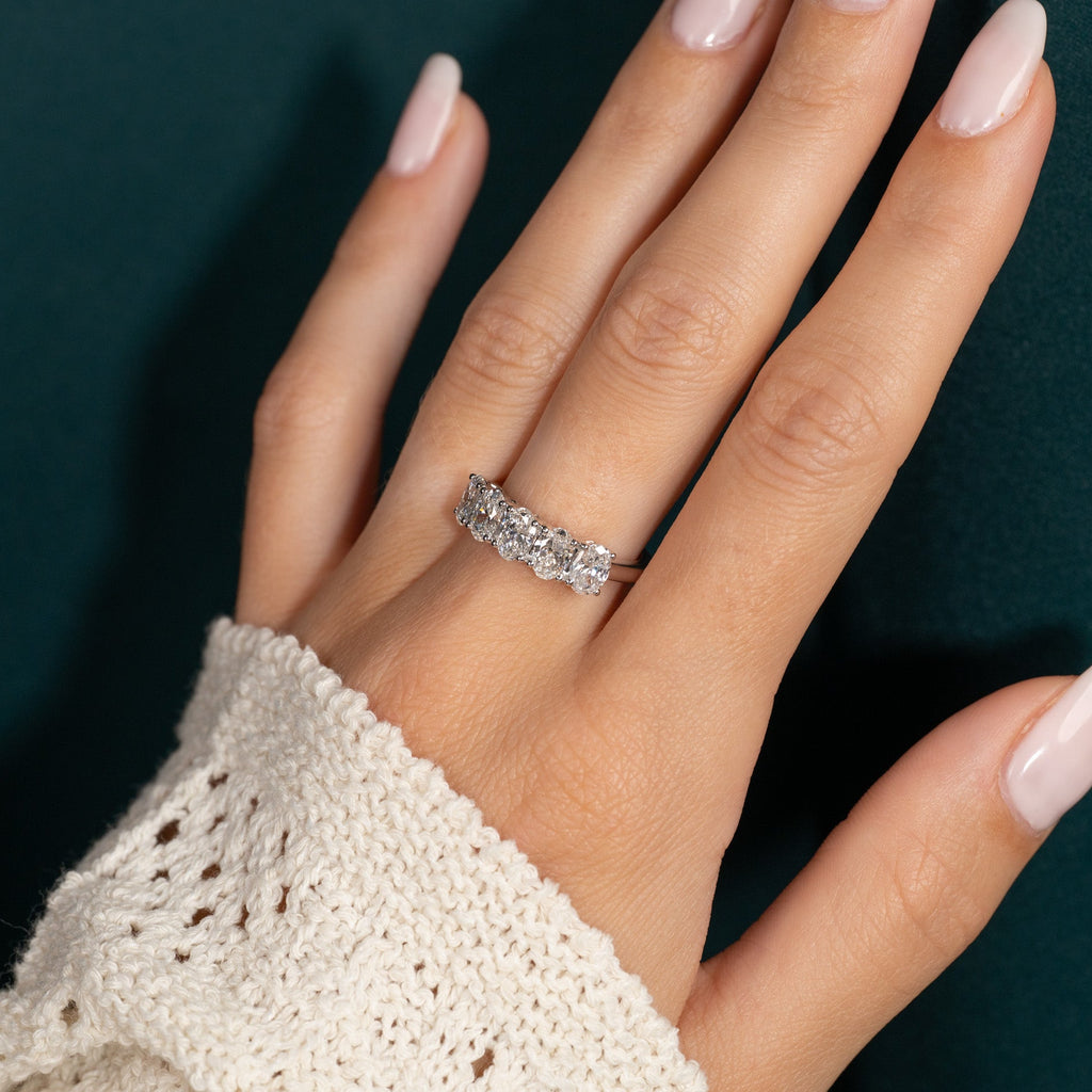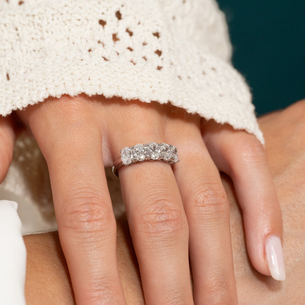 Femsteinsring i 14 karat hvitt gull med 5 ovale lab-grown diamanter på 0,4 carat hver, med en samlet vekt på 2,0 carat.
