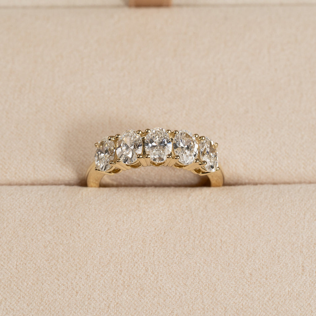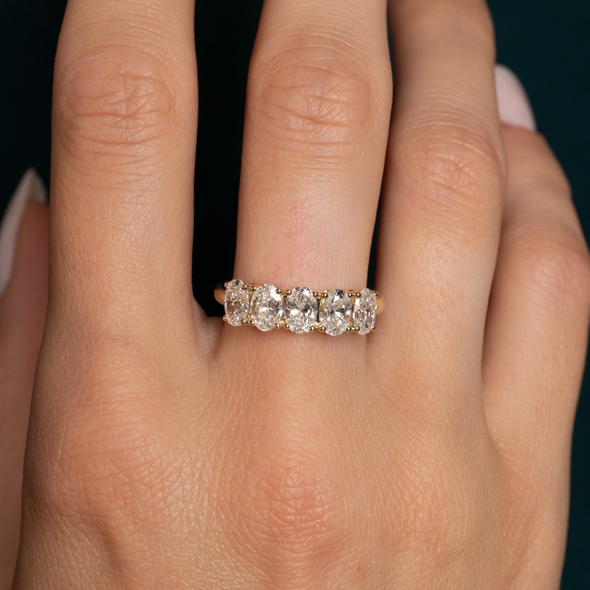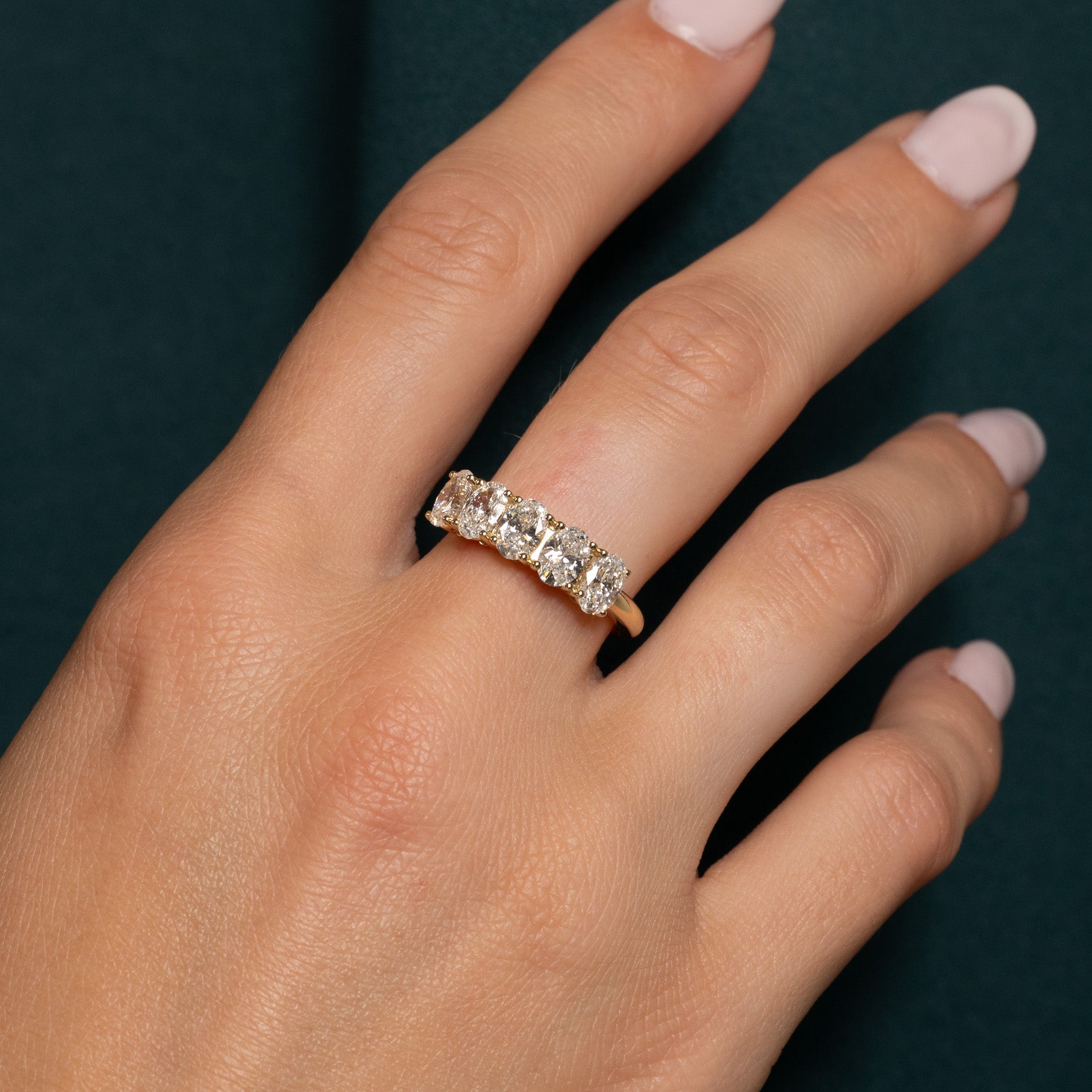 Femsteinsring i 14 karat gull med 5 ovale lab-grown diamanter på 0,4 karat hver, med en samlet vekt på 2 carat.