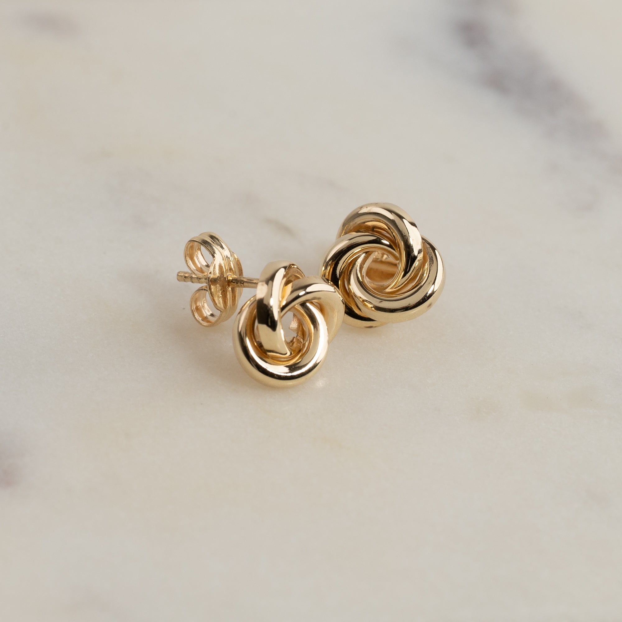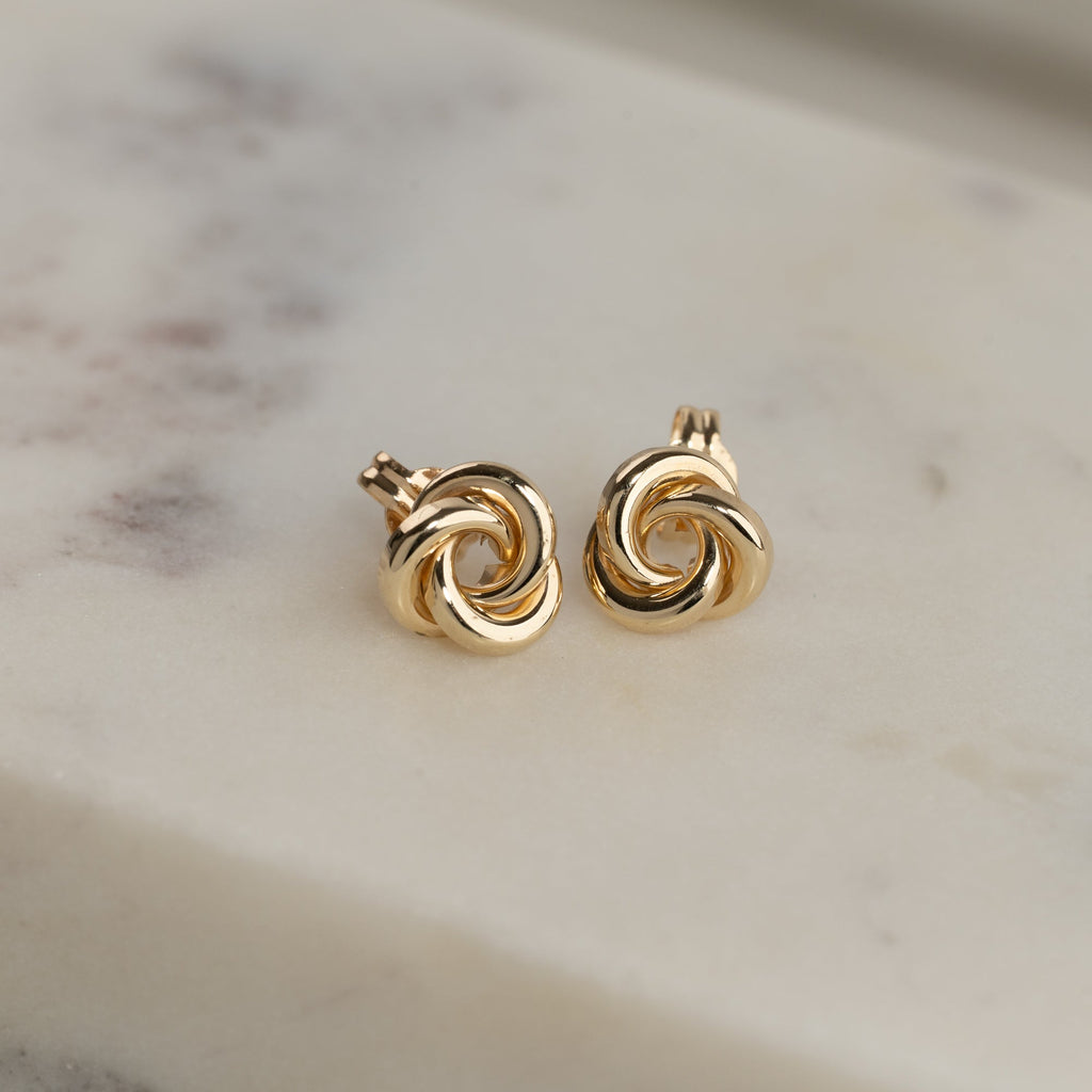Øredobber i 100 % resirkulert 9 karat gull med et elegant knuteformet design.