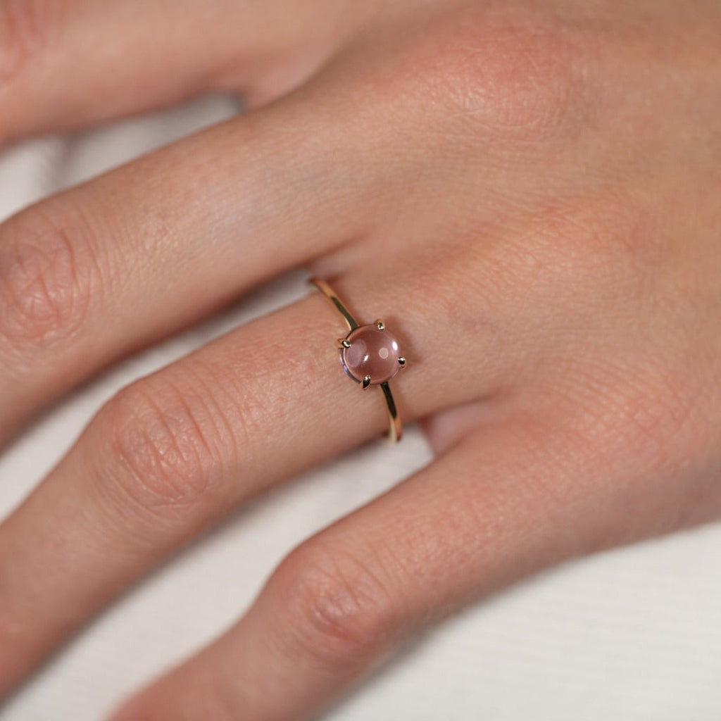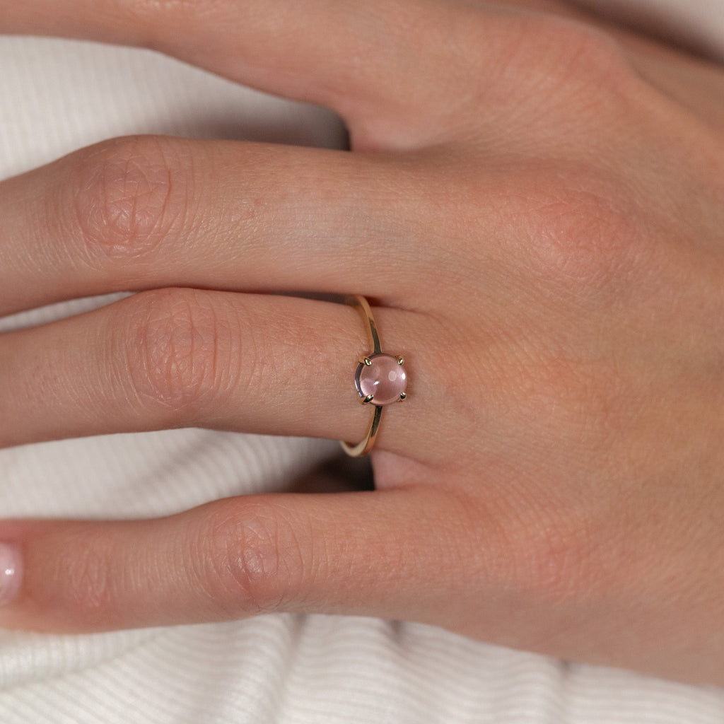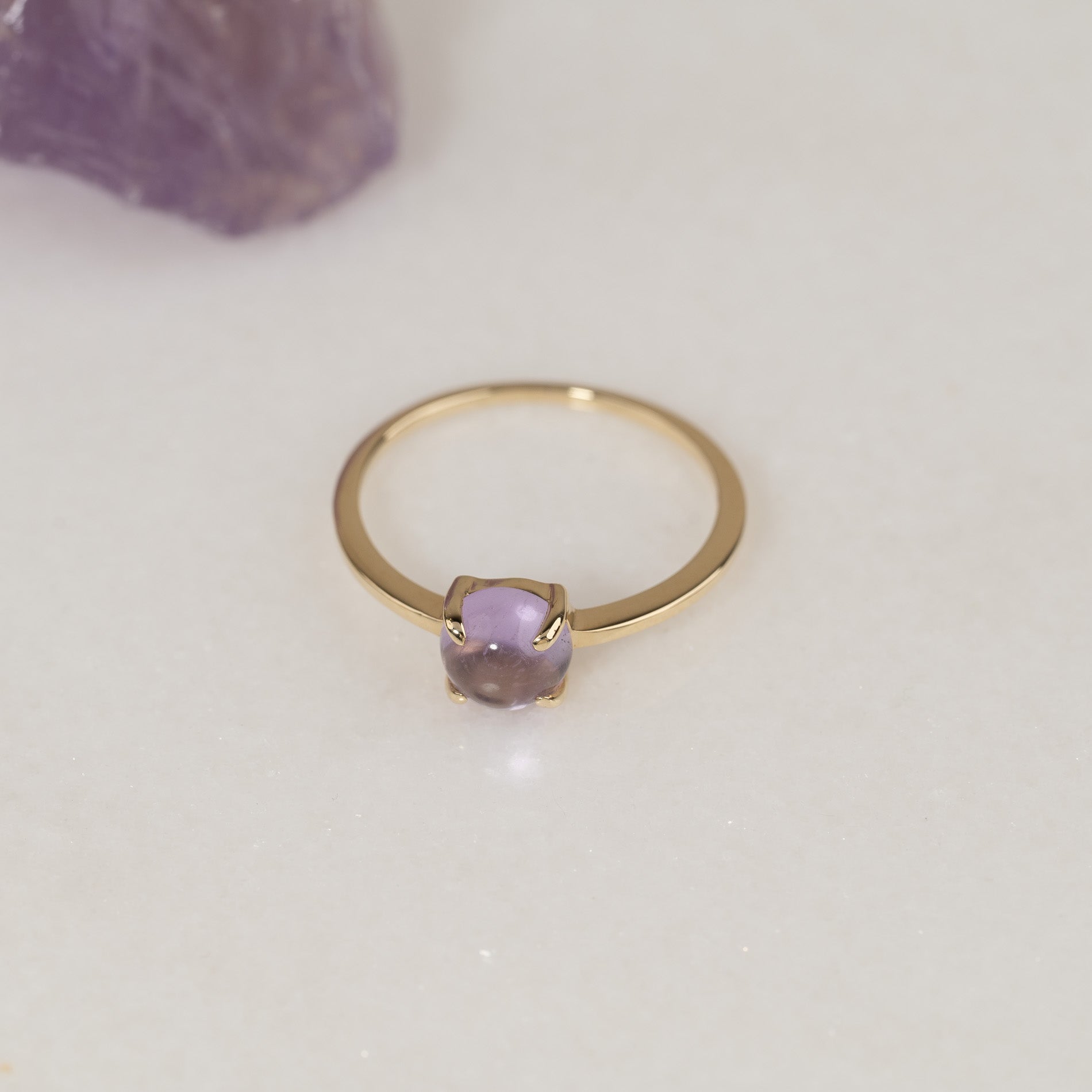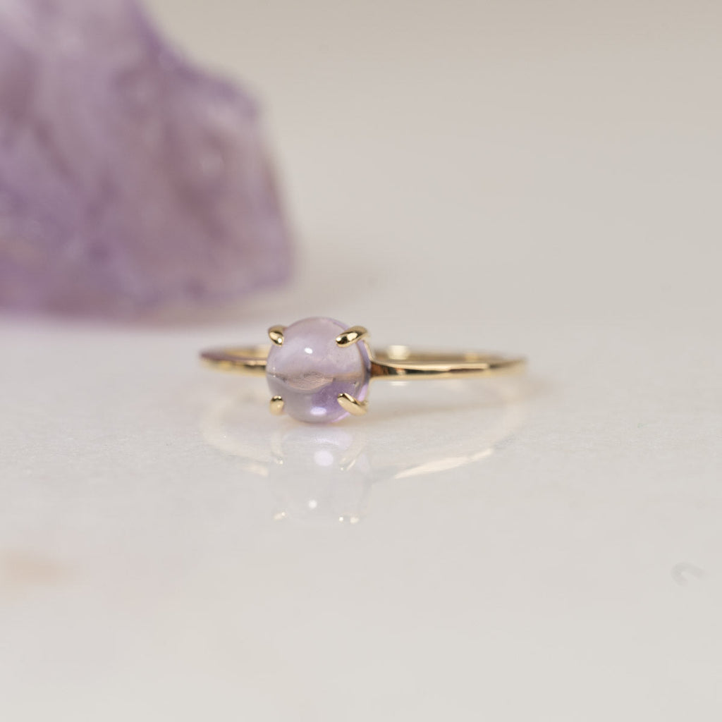 Ring i 100% resirkulert 9 karat massivt gull med en vakker cabochon-slipt lilla ametyst.