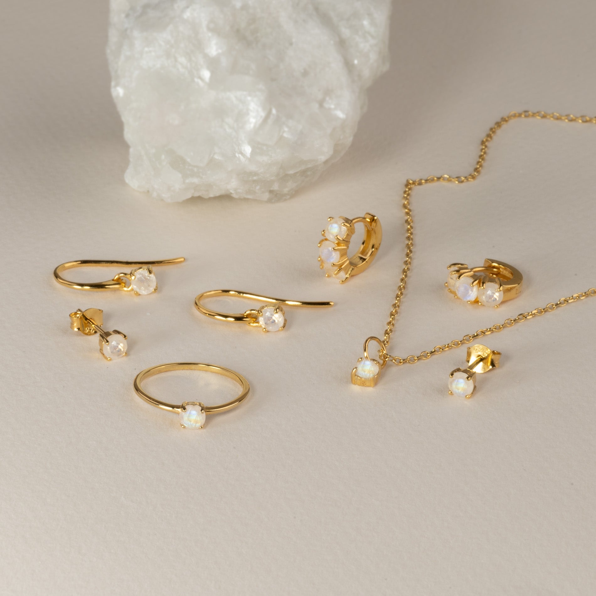 Forgylt ørering med månesten-besatt anheng