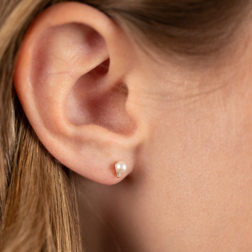 GINA PEARL DIAMOND SOLID GOLD EARRING
