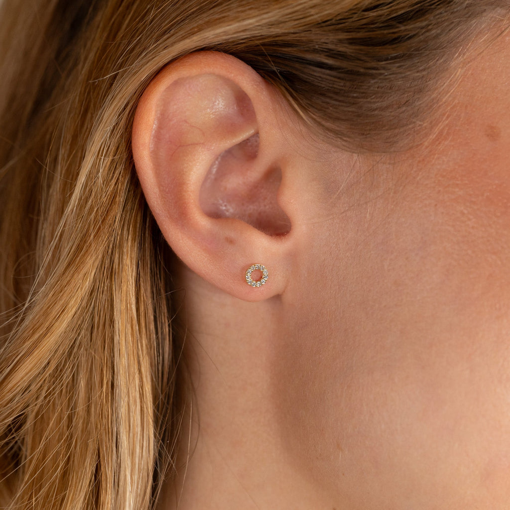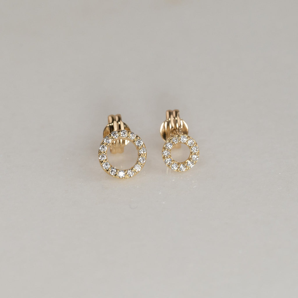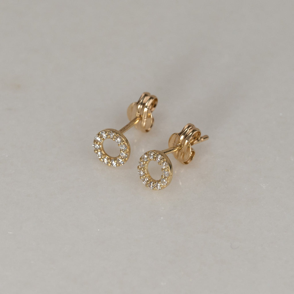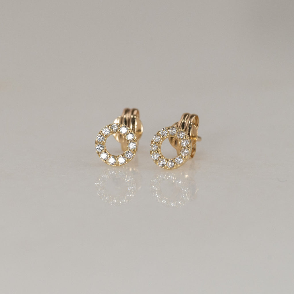 Øredobber laget i 100% resirkulert 9 karat massivt gull. Øredobbene består av en åpen creol besatt med små, hvite kubiske zirkoniasten som gir et flott spill og glitrer vakkert i lyset. Disse øreringene har også et elegant og tidløst design.
