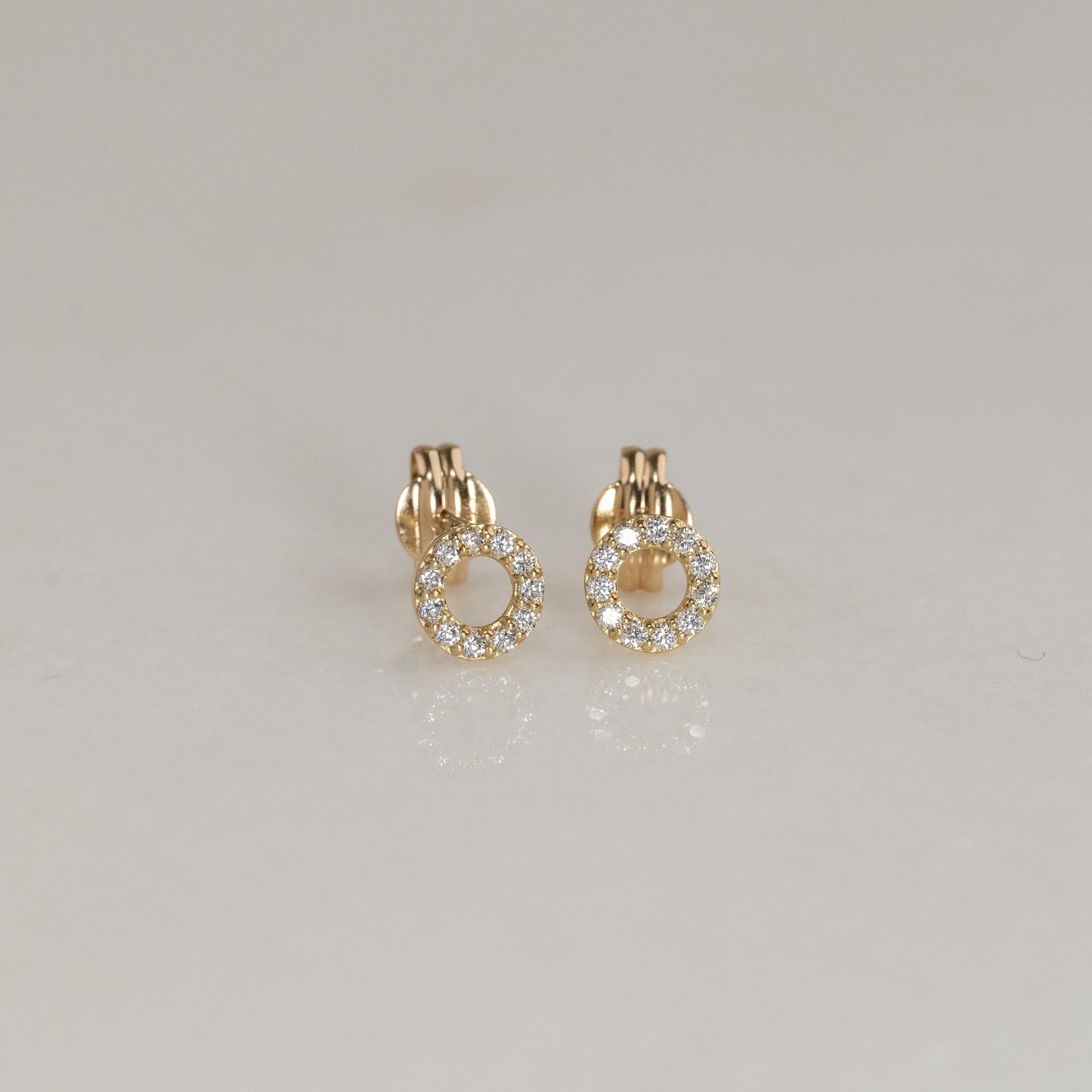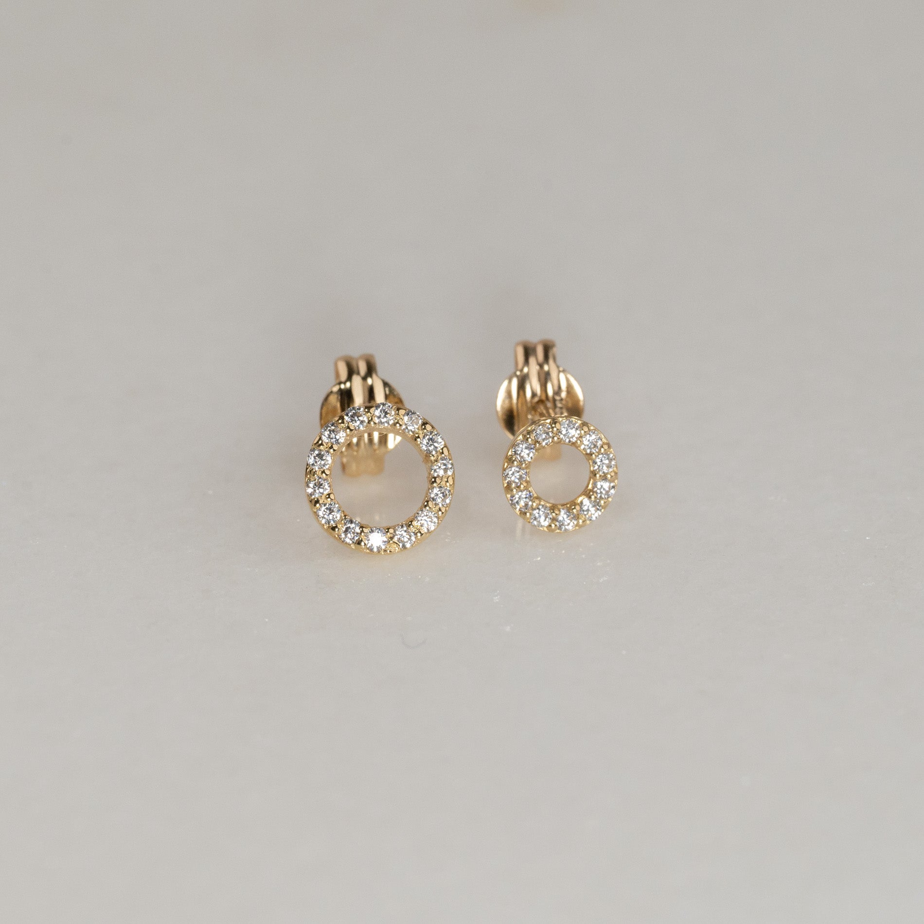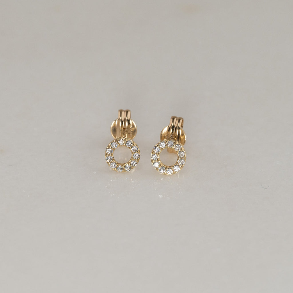 Øredobber laget i 100% resirkulert 9 karat massivt gull. Øredobbene består av en åpen creol besatt med små, hvite kubiske zirkoniasten som gir et flott spill og glitrer vakkert i lyset. Disse øreringene har også et elegant og tidløst design.