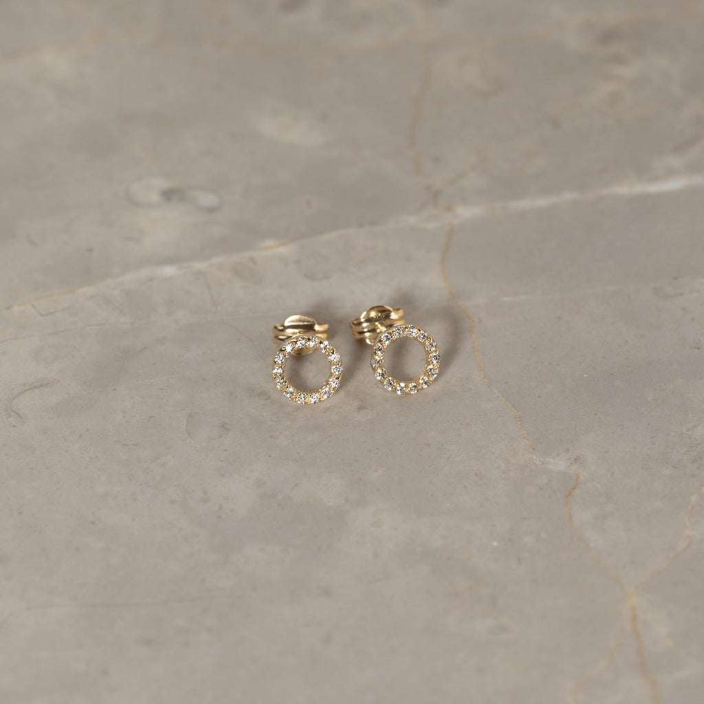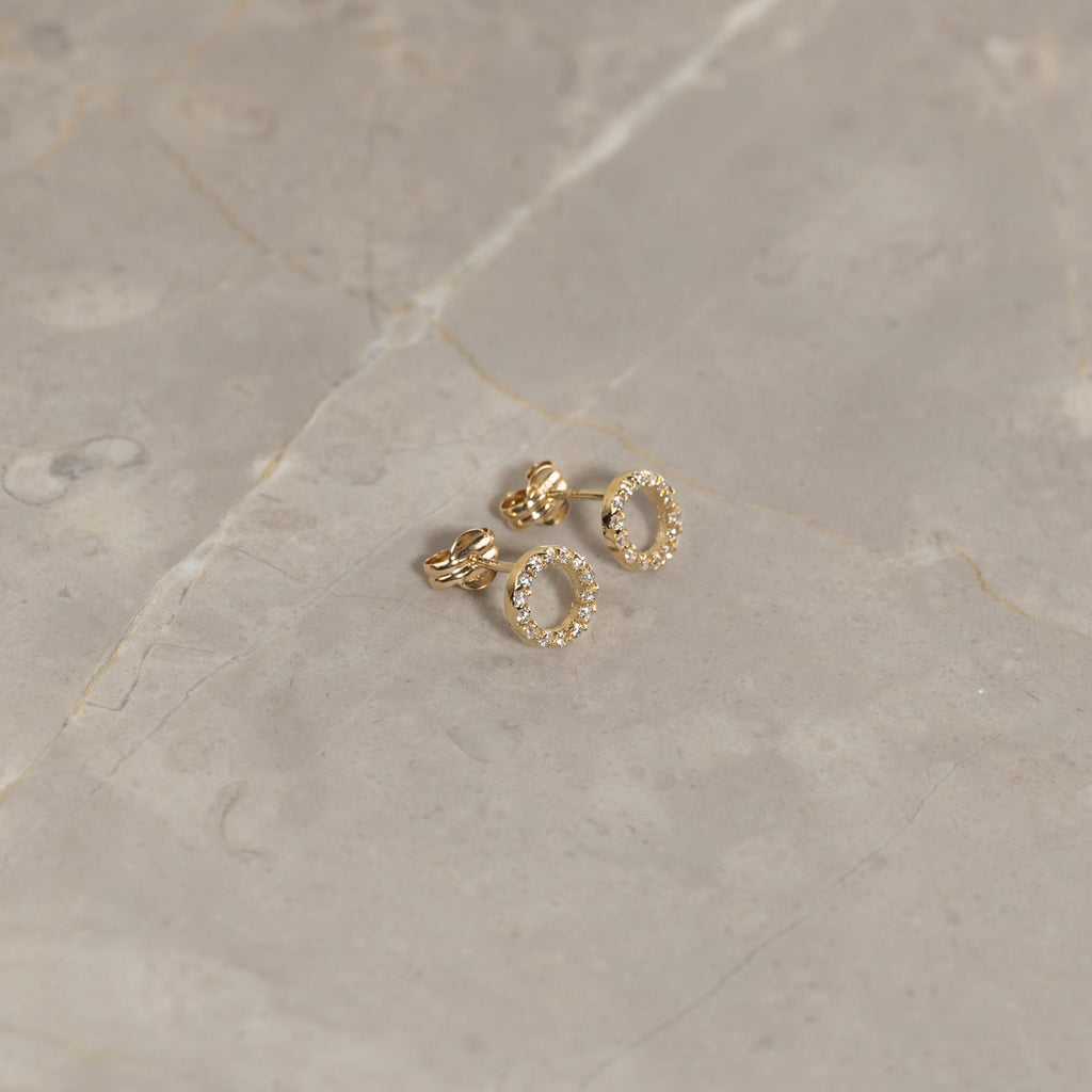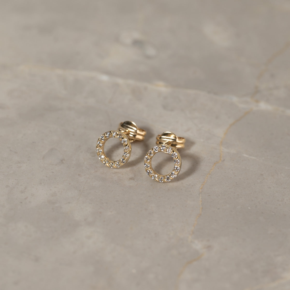 Disse øredobbene er laget i 100% resirkulert 9 karat massivt gull. De er besatt med mange små og fine, hvite kubiske zirkoniastener, som gir et flott spill. Øreringene er utrolig elegante og tidløse, og glitrer vakkert i lyset.