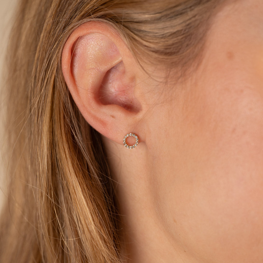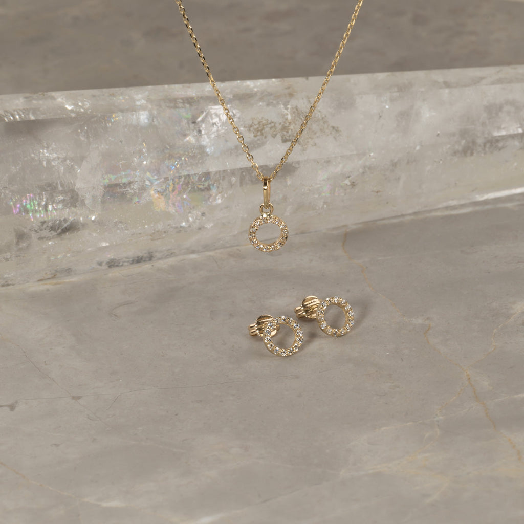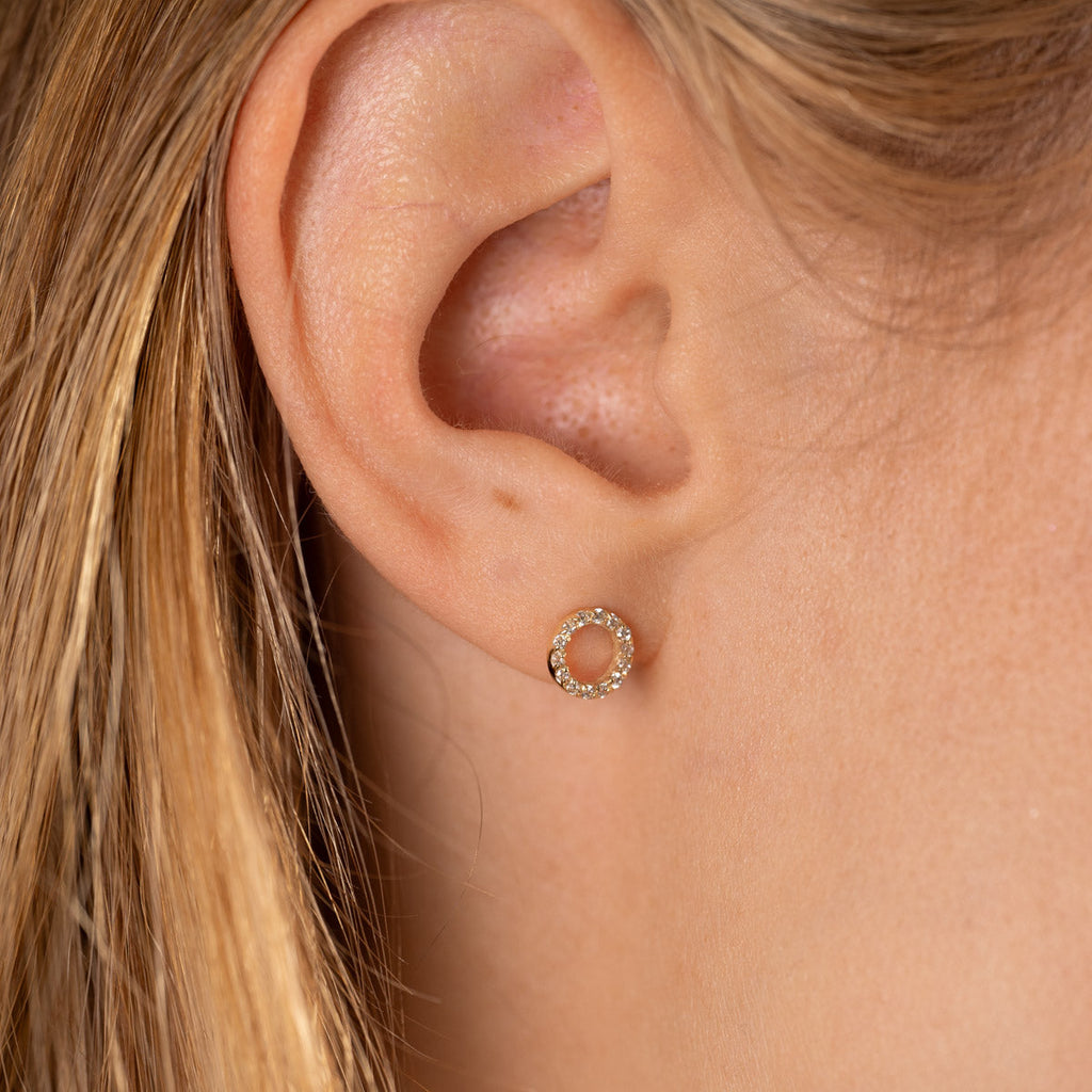 Disse øredobbene er laget i 100% resirkulert 9 karat massivt gull. De er besatt med mange små og fine, hvite kubiske zirkoniastener, som gir et flott spill. Øreringene er utrolig elegante og tidløse, og glitrer vakkert i lyset.