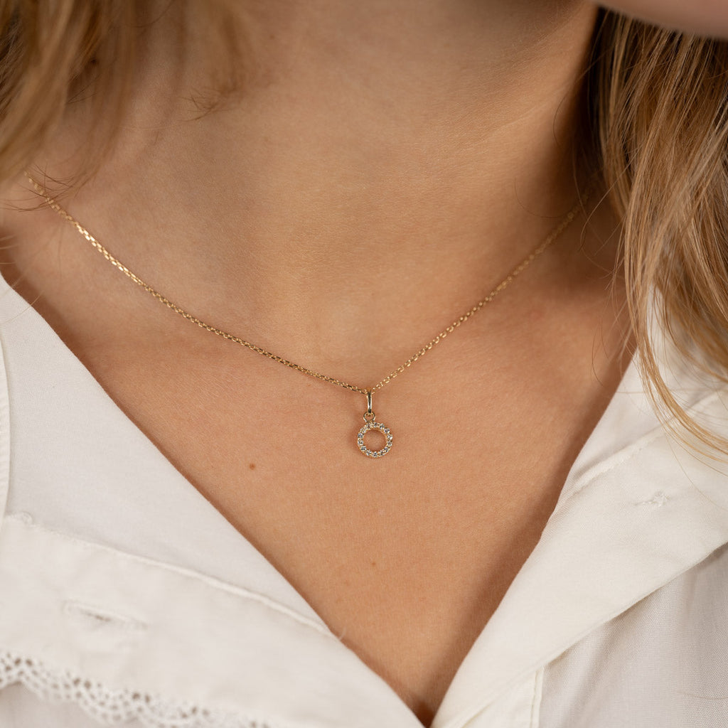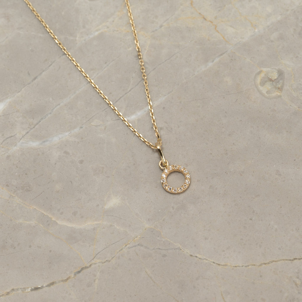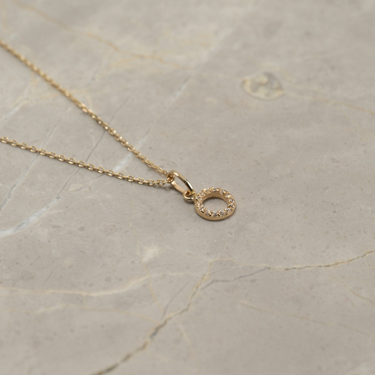 Anhenget er laget i 100% resirkulert 9 karat massivt gull. Det er besatt med mange små og fine, hvite kubiske zirkoniastener, som gir et flott spill og vakker lysrefleksjon.