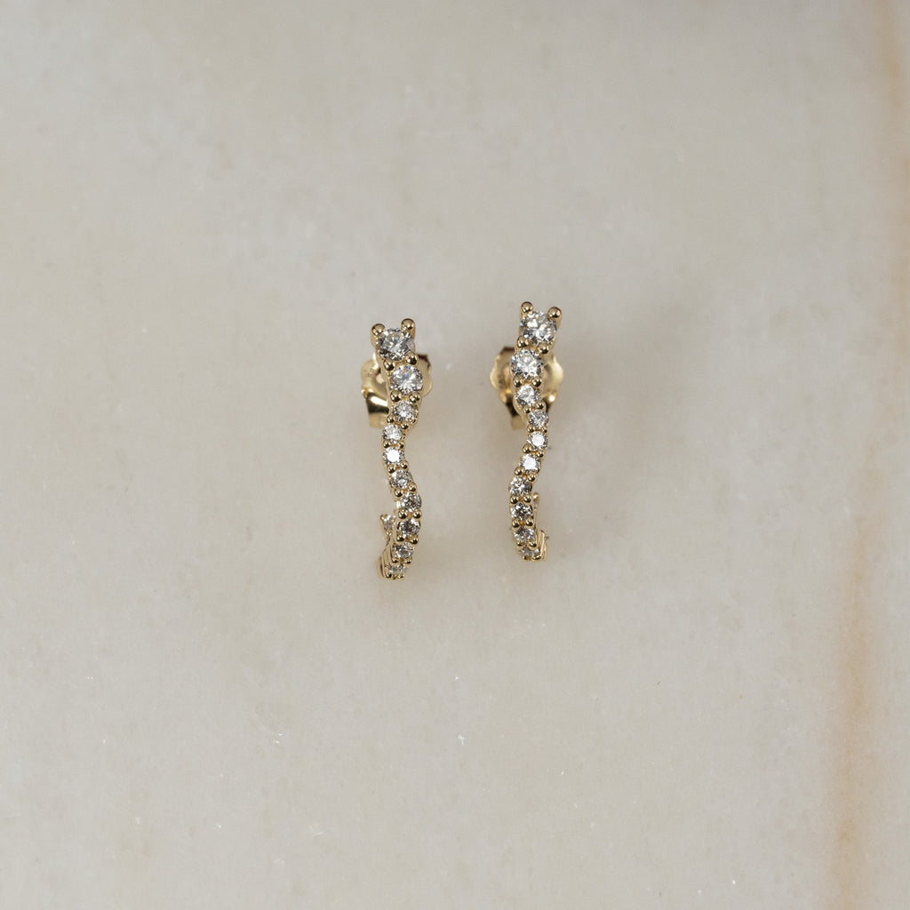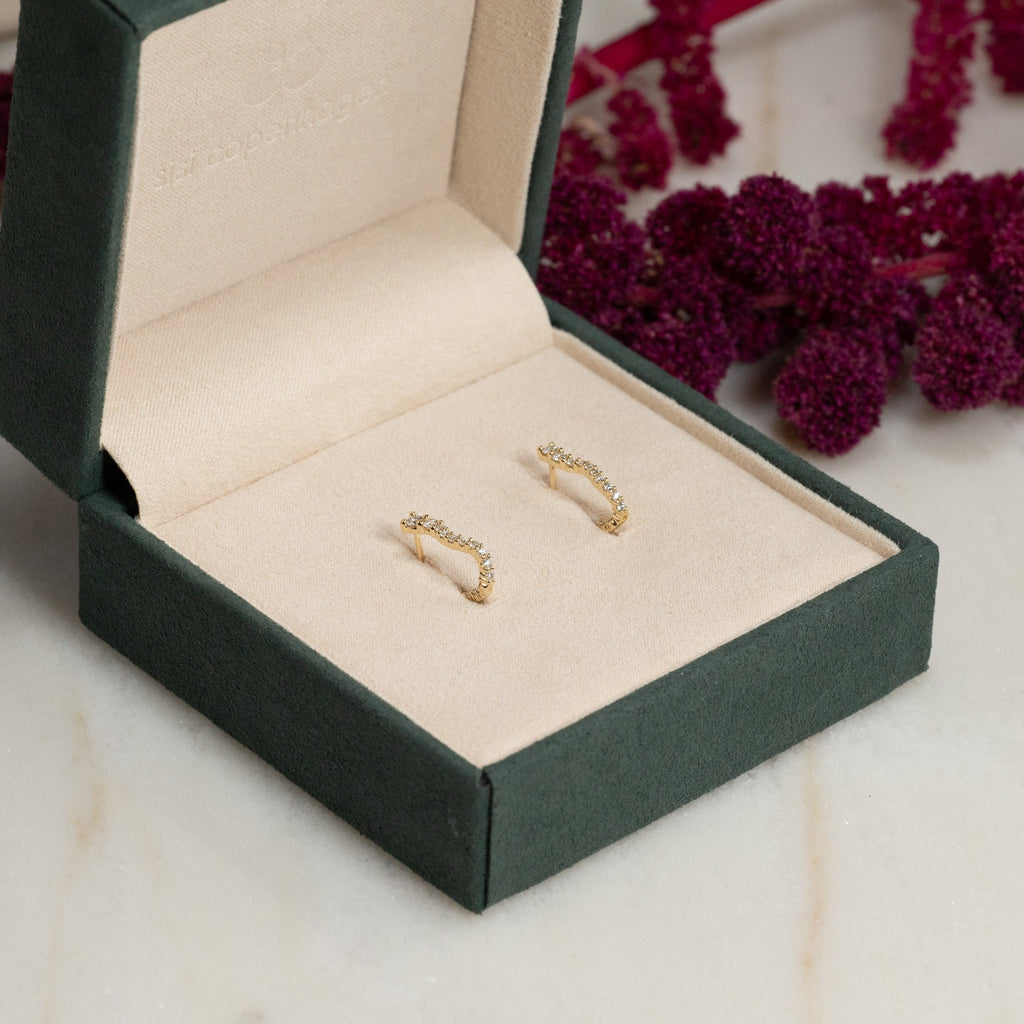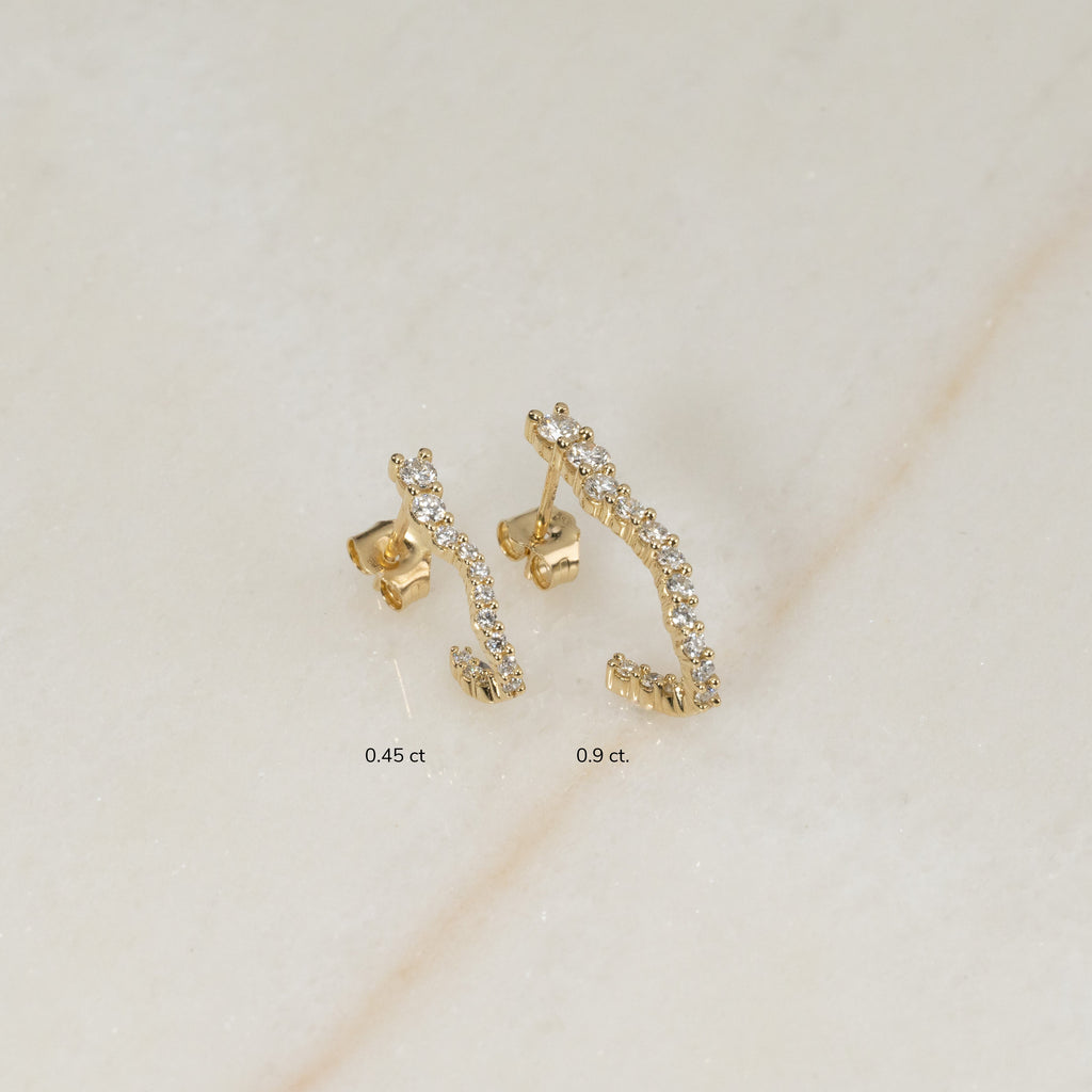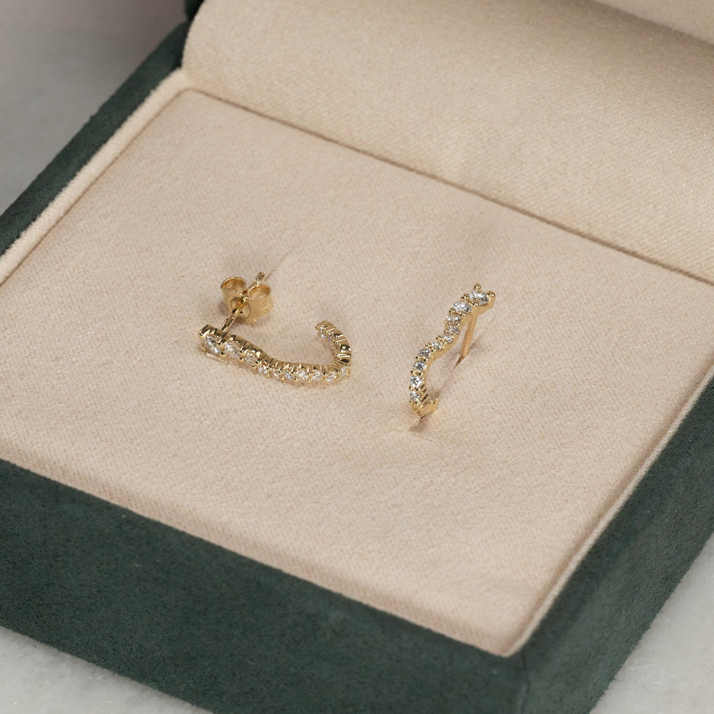 Øreringene er laget i massivt 14 karat gull med laboratoriedyrkede diamanter med en total vekt på 0,45 ct. Diamantene har varierende størrelser som følger creolens organiske og buede form. De har fargen E/F (River) og klarheten VVS. Smykket er skapt med omtanke – diamantene er produsert blant annet ved hjelp av solenergi, og gullet er 100 % sertifisert resirkulert.