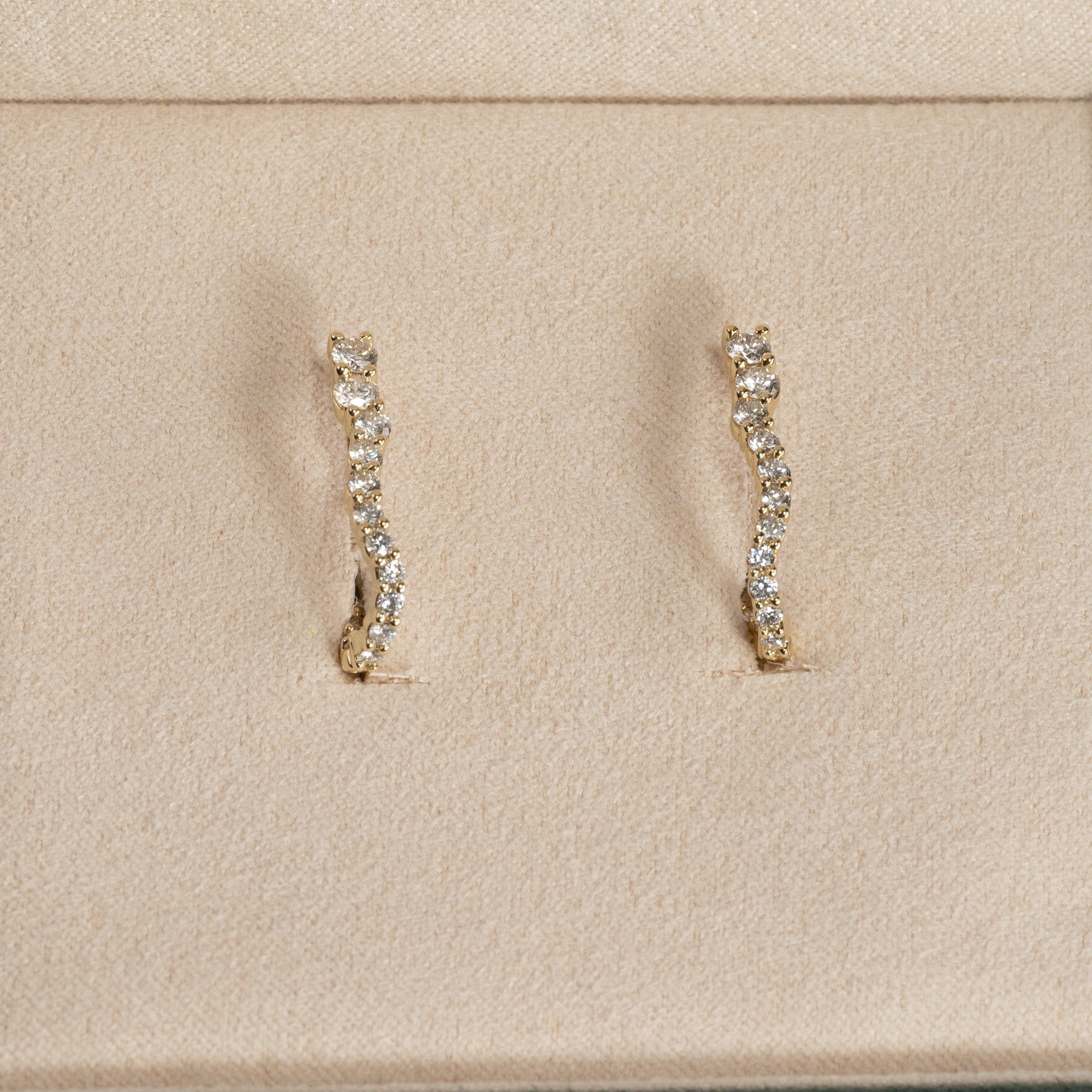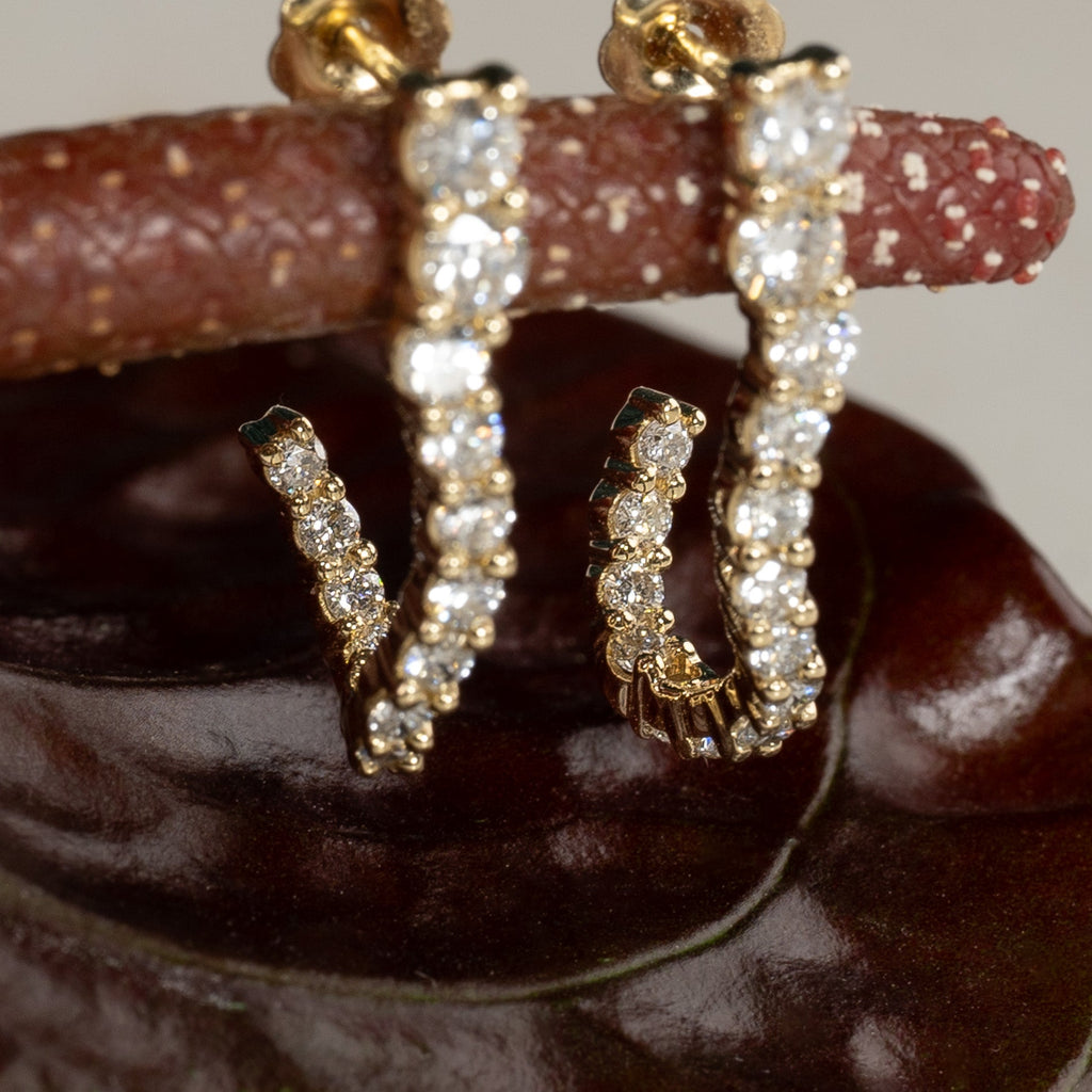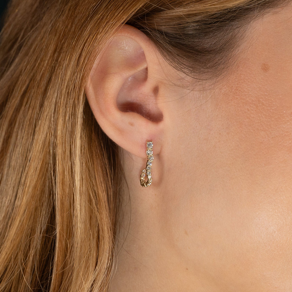 GRADUATING CURVED DIAMOND CREOL EARRING - 0.9ct - YG