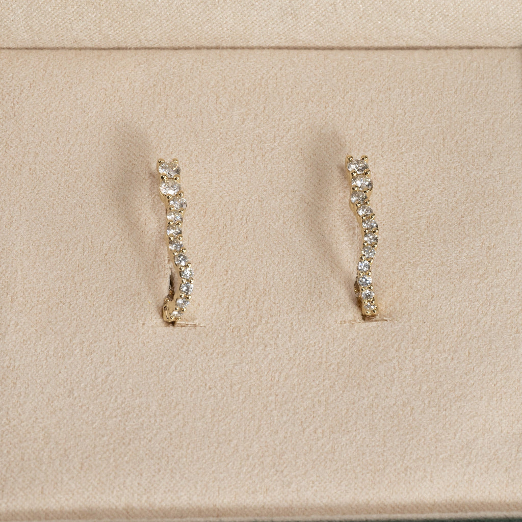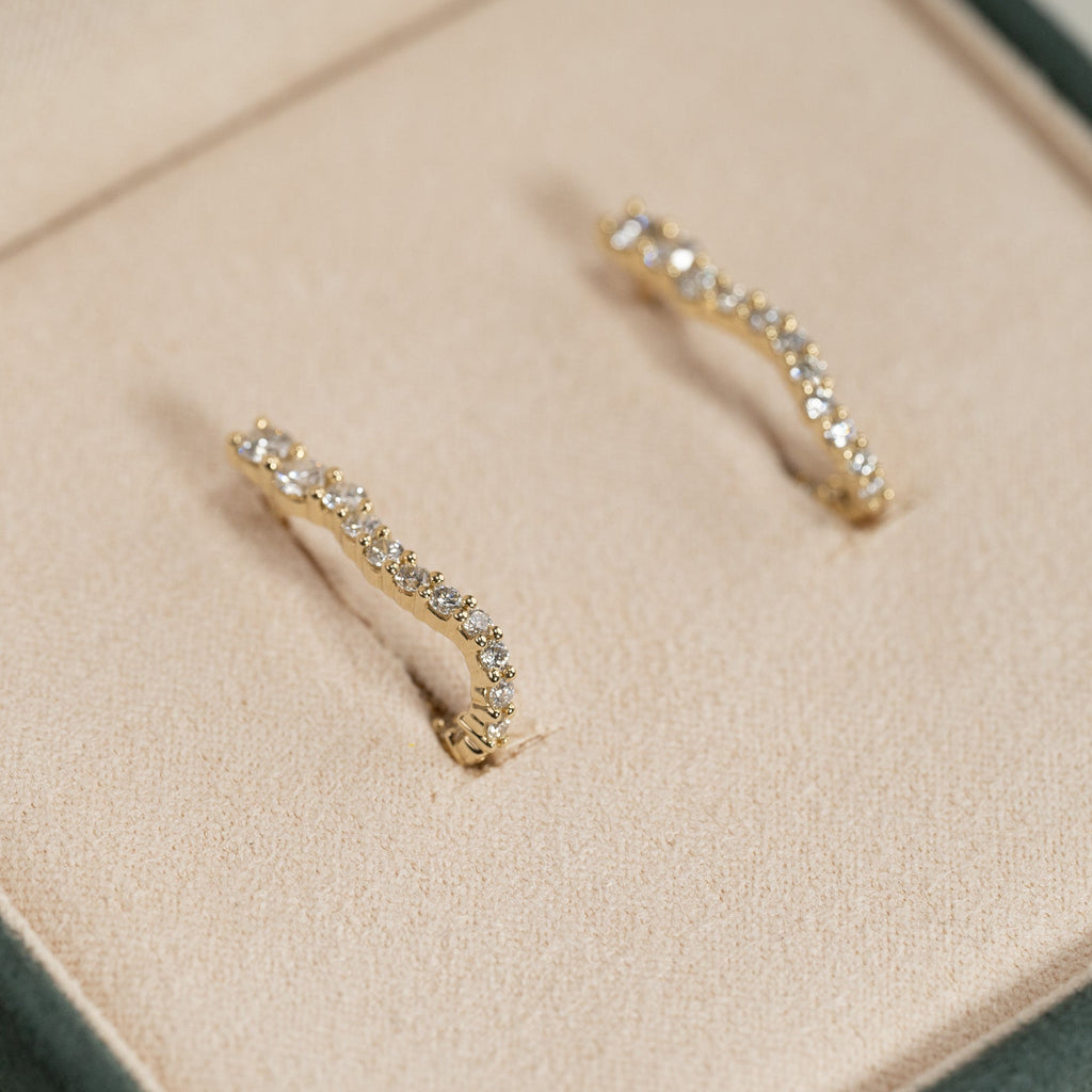 Elegante creoler i 14 karat gull med lab-grown diamanter. Det tidløse og moderne designet gjør dem perfekte både til hverdagsbruk og ved festlige anledninger.