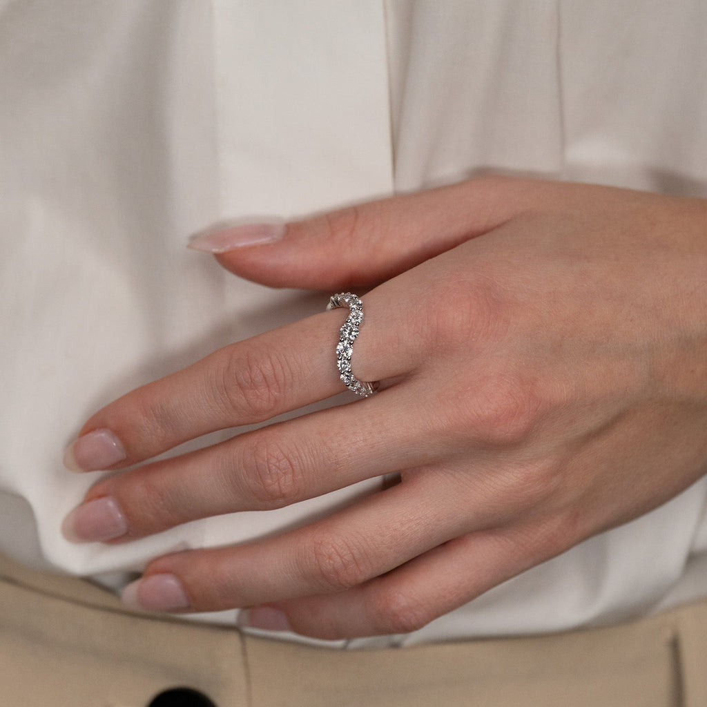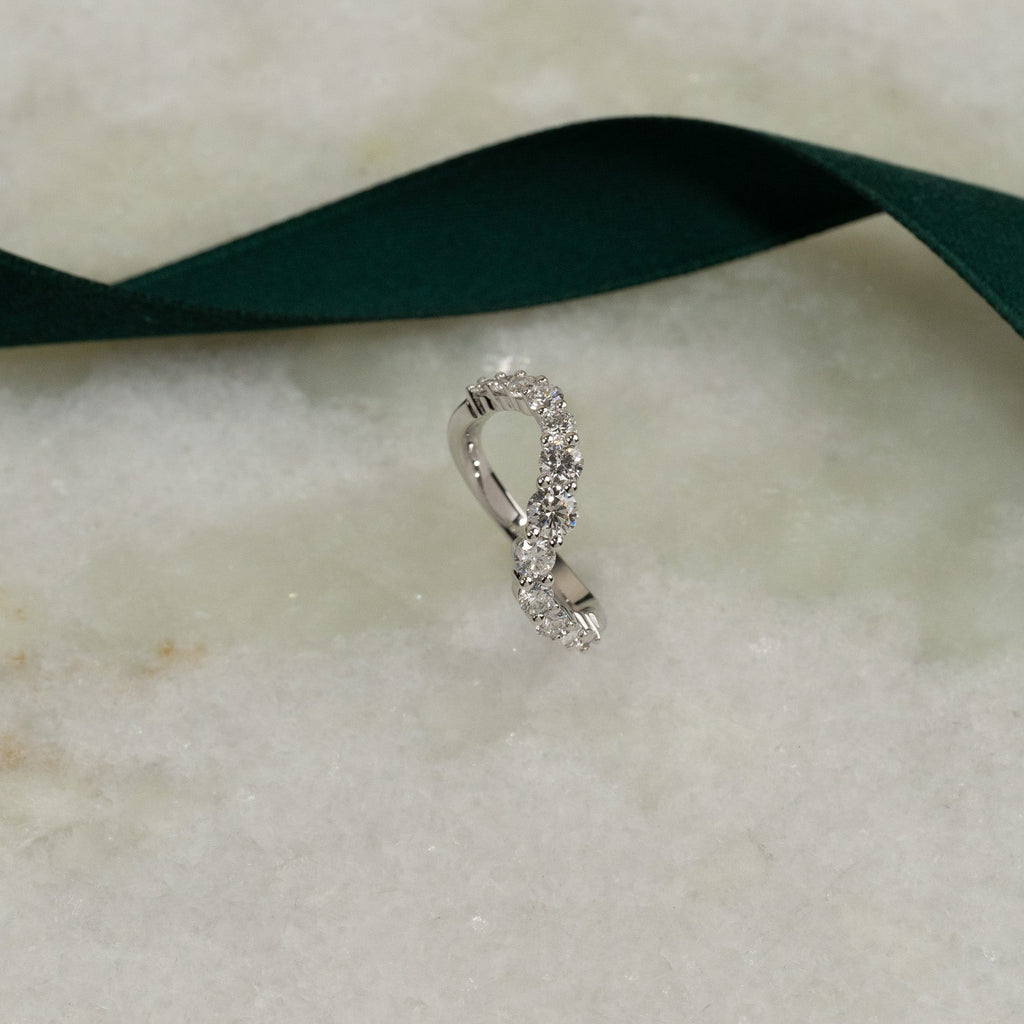 Curved diamantring i 14 karat hvittgull med 12 lab-grown diamanter med en samlet vekt på 1,2 ct.