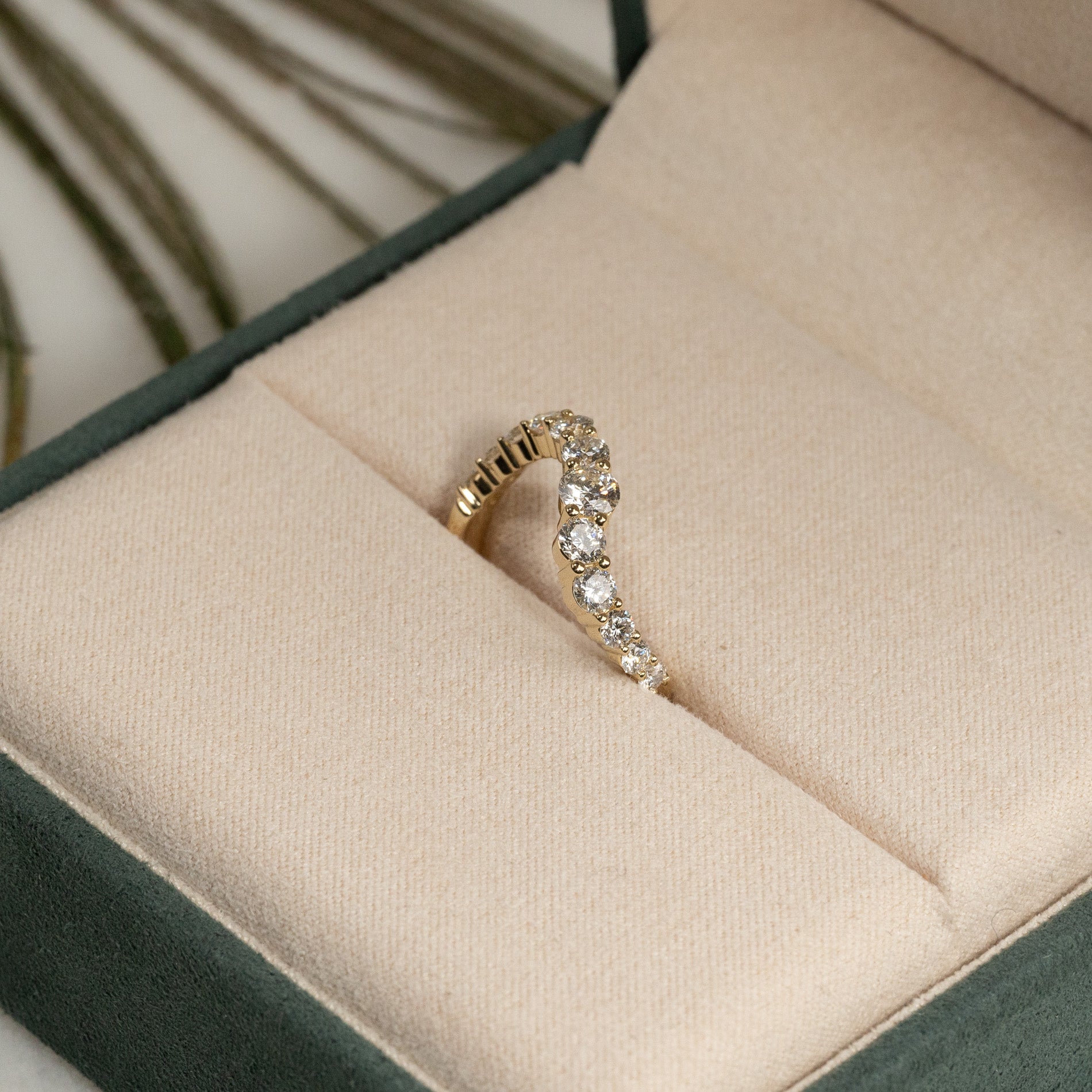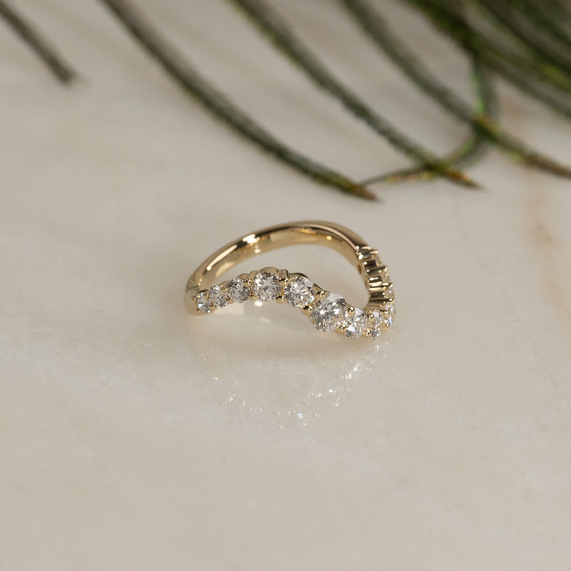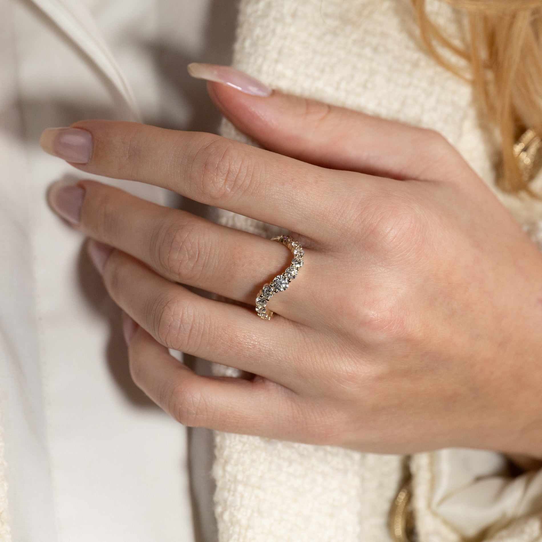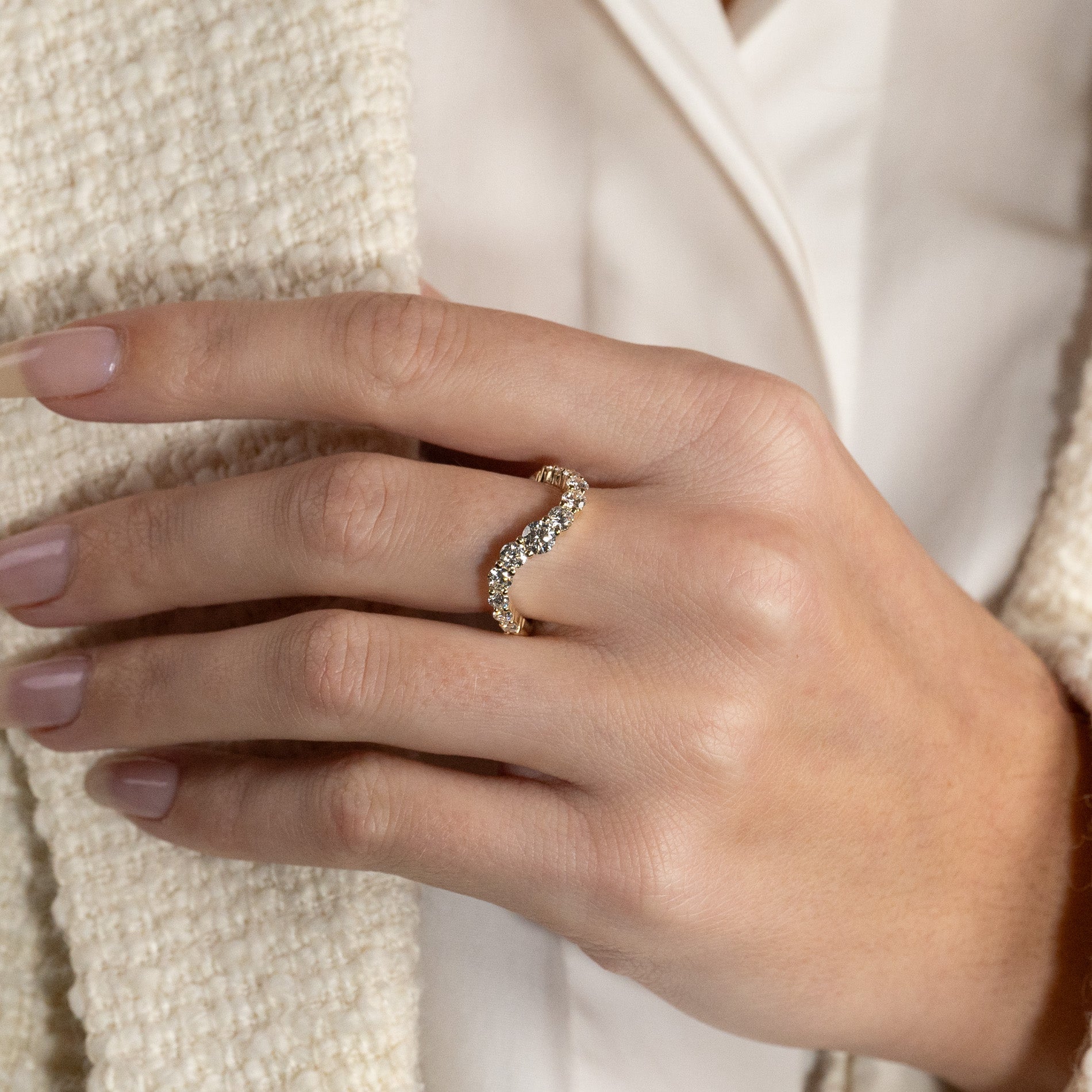 Curved diamantring i 14 karat gull med lab-grown diamanter med en samlet vekt på 1,2 ct.