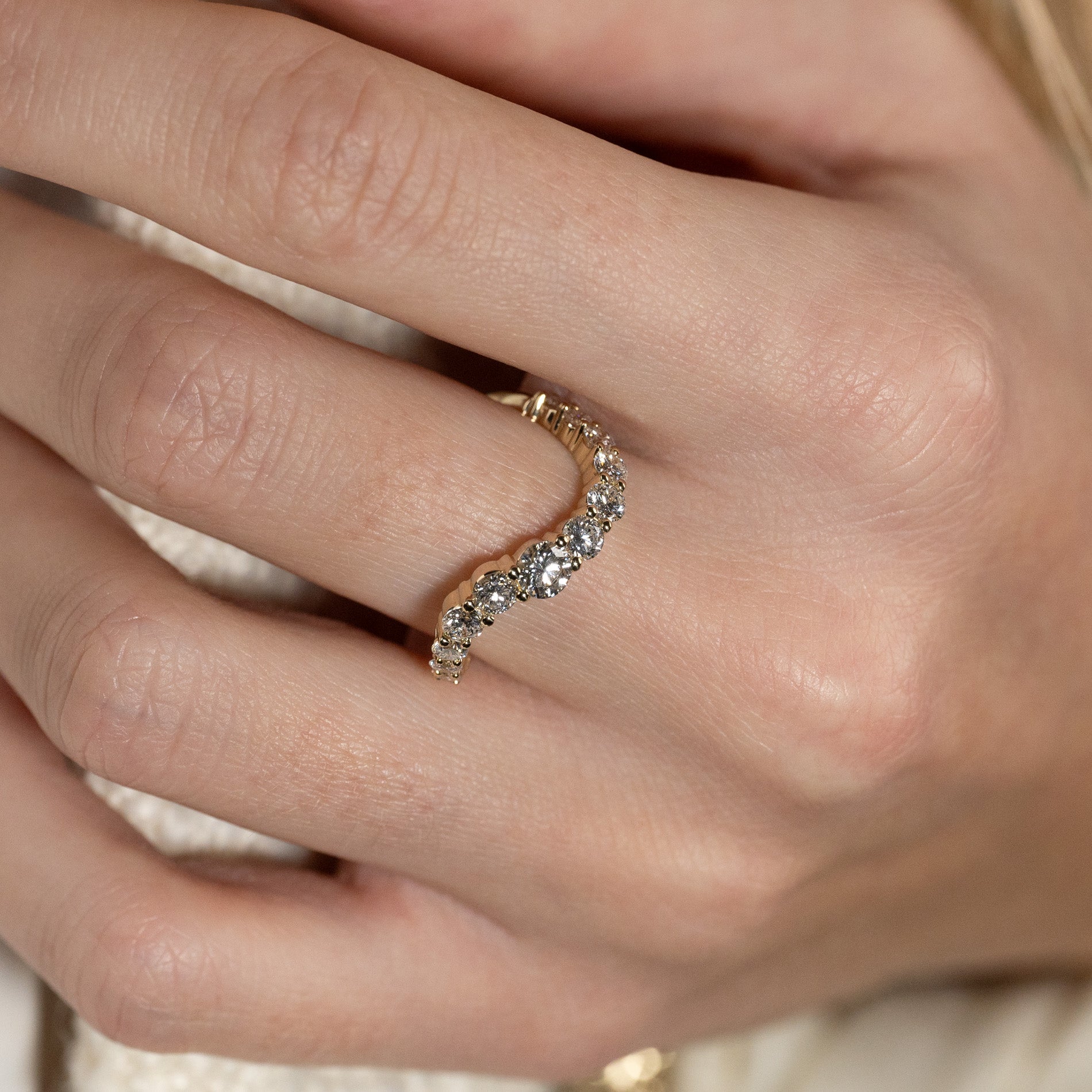 GRADUATING CURVED LAB-DIAMOND RING - 1.2ct - YG