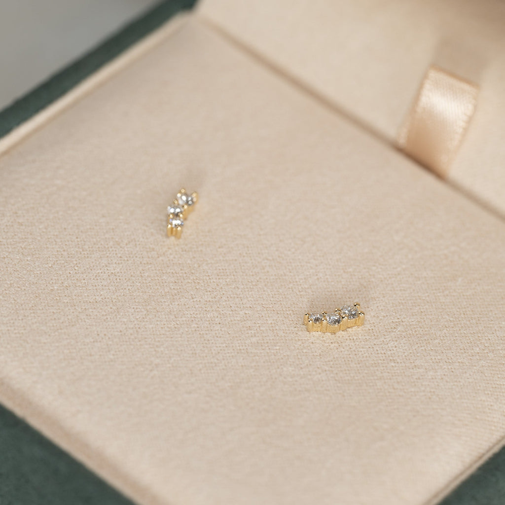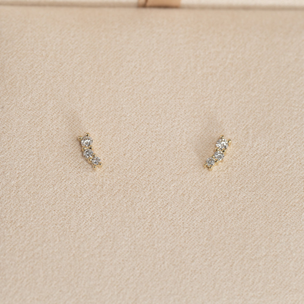 GRADUATING CURVED DIAMOND STUD EARRING - 0.22ct - YG