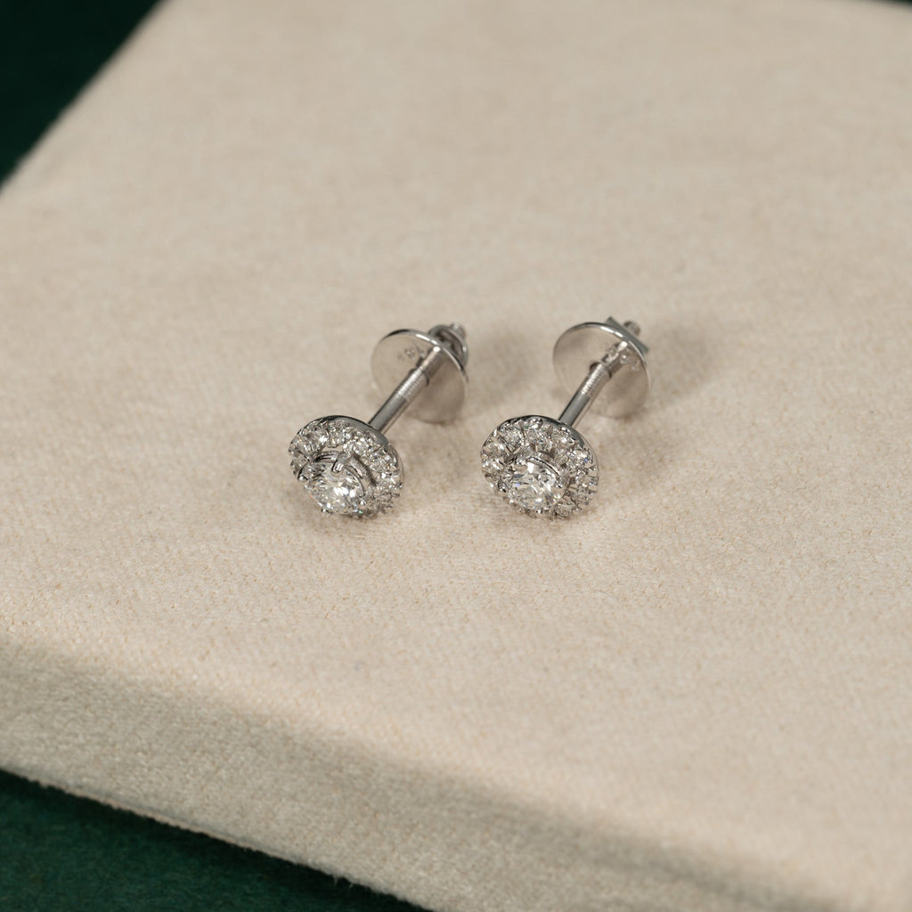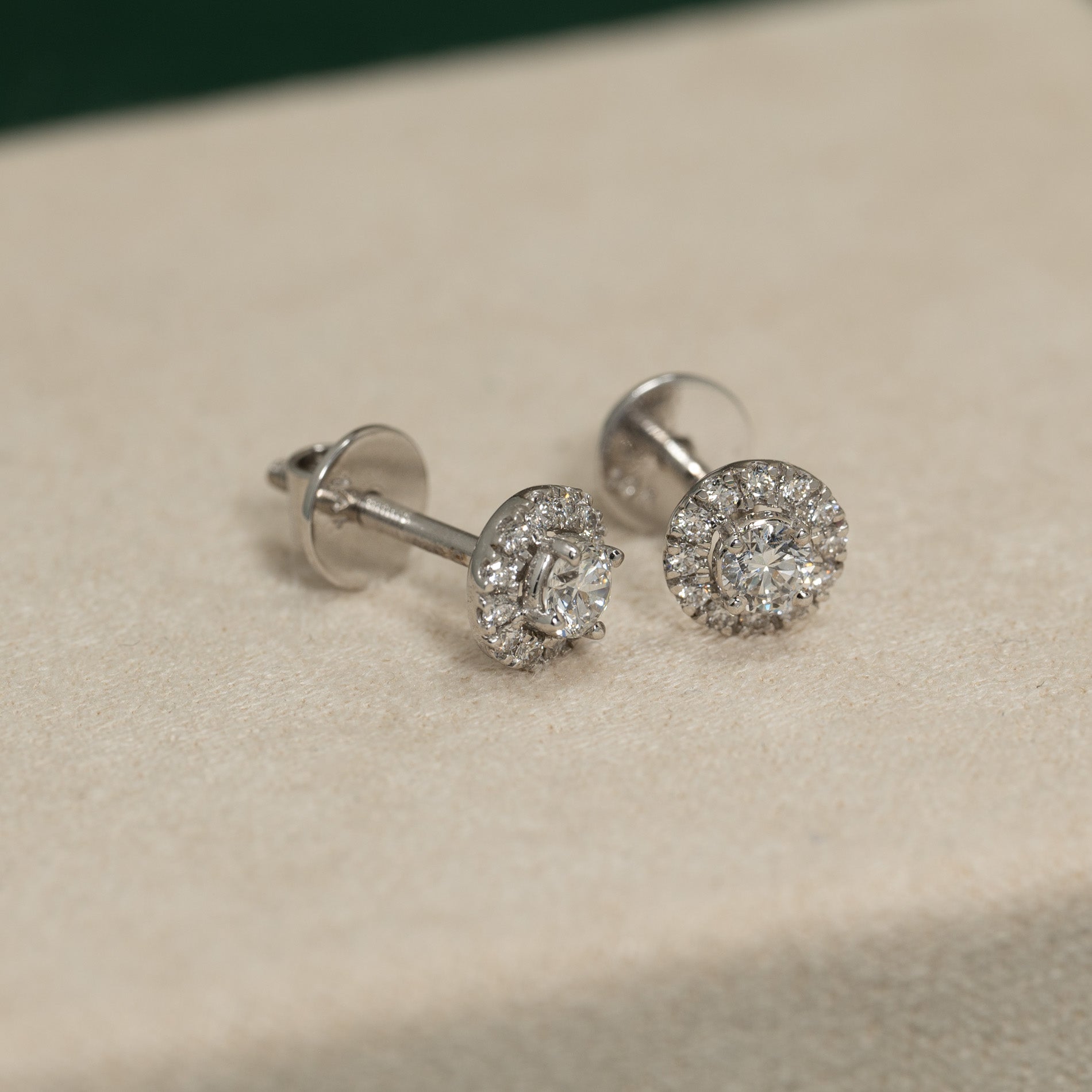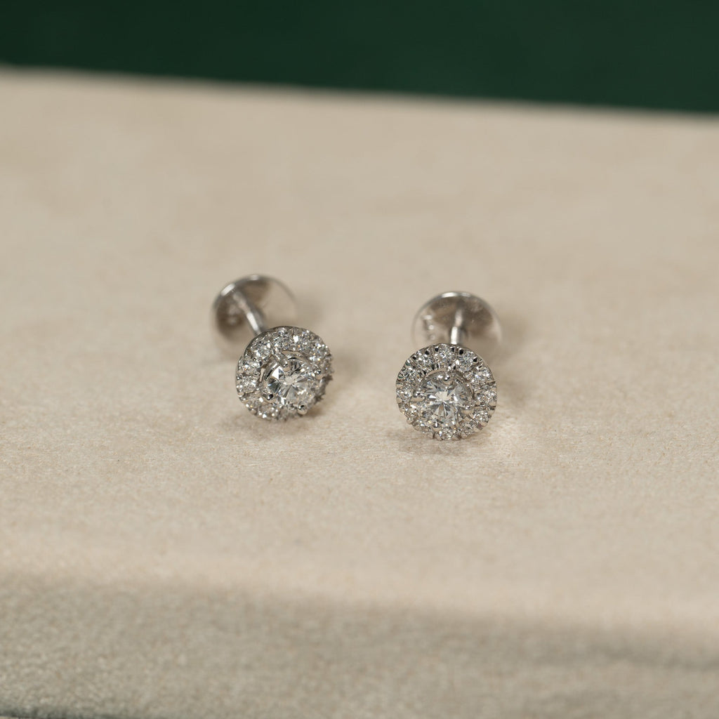 HALO DIAMOND STUD EARRING - 0.42ct - WG