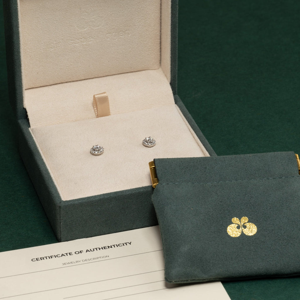 Øreringene kommer i vår eksklusive Diamond Collection boks med en flott smykkeeske, diamantsertifikat og pouch. Boksen er også perfekt om du skal gi smykket i gave.