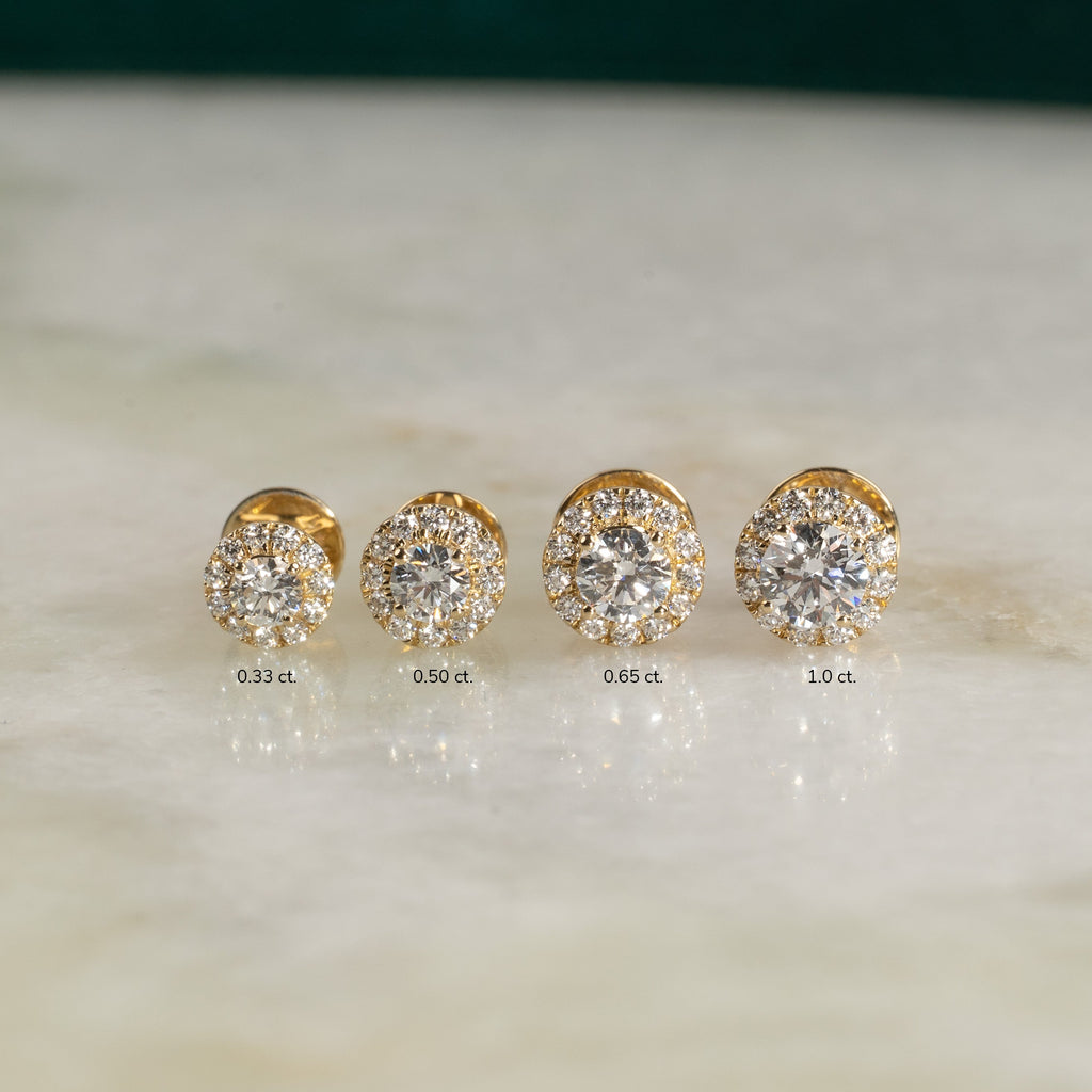 HALO DIAMOND STUD EARRING - 0.65ct - YG