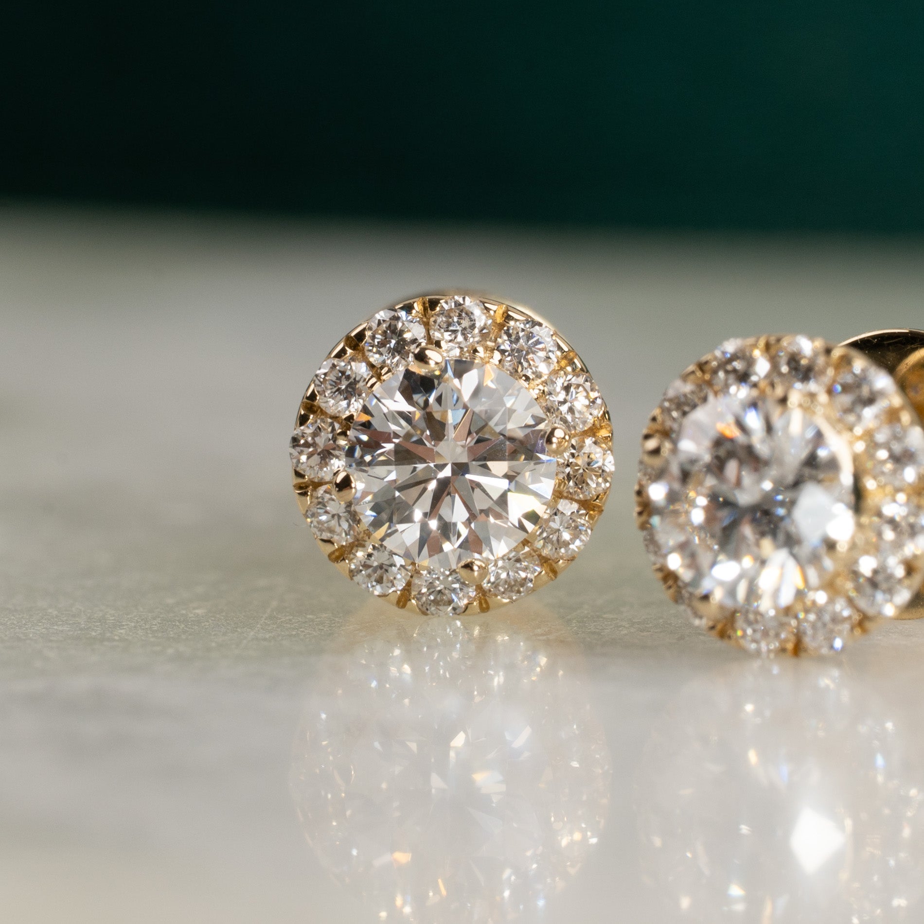 Par halo-øreringer i 14 karat gull med 1,0 carat laboratoriedyrkede diamanter