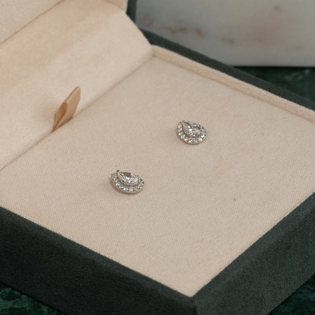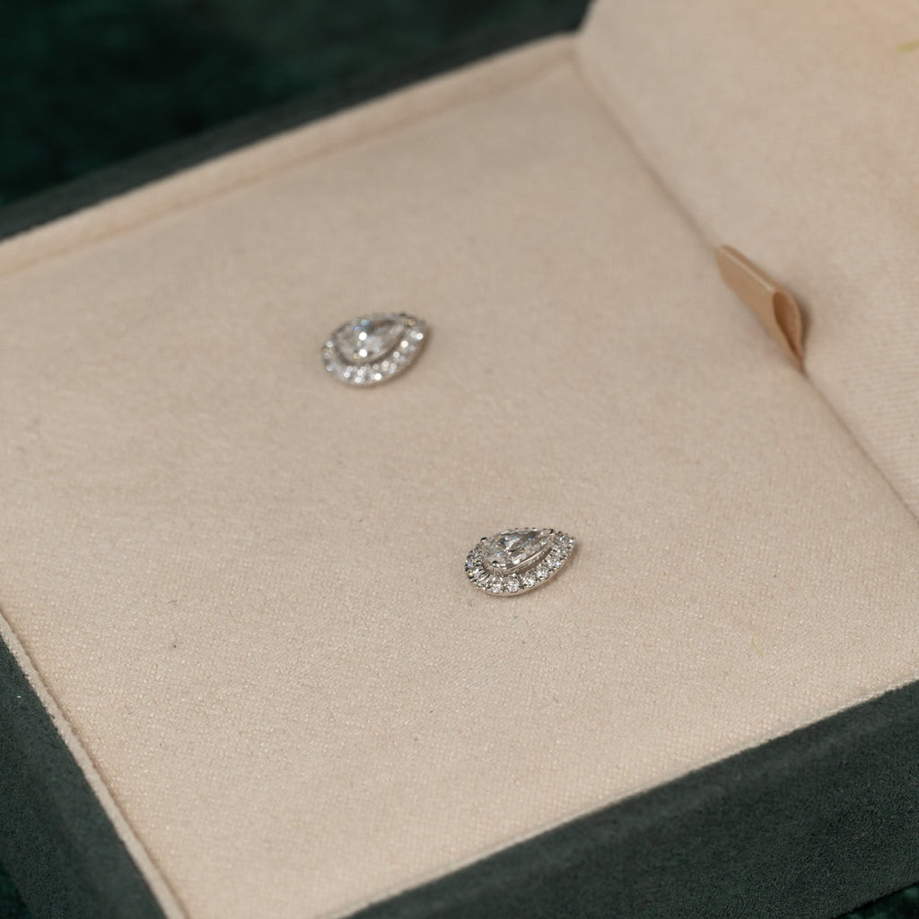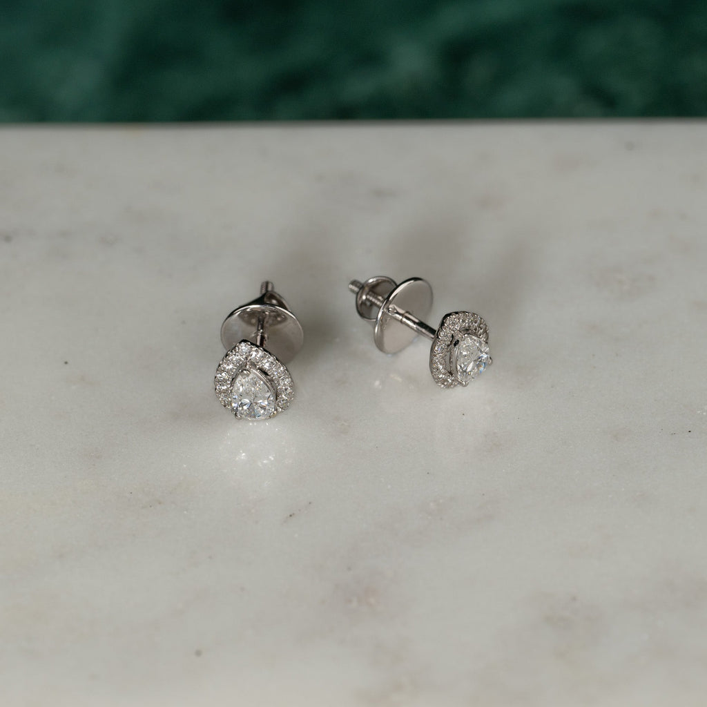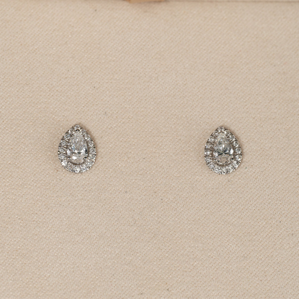 HALO PEAR-CUT DIAMOND STUD EARRING - 0.7ct - WG