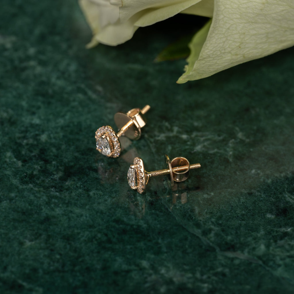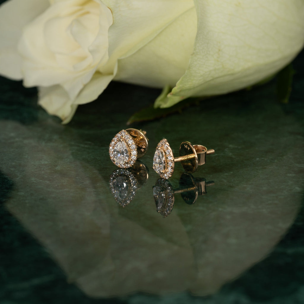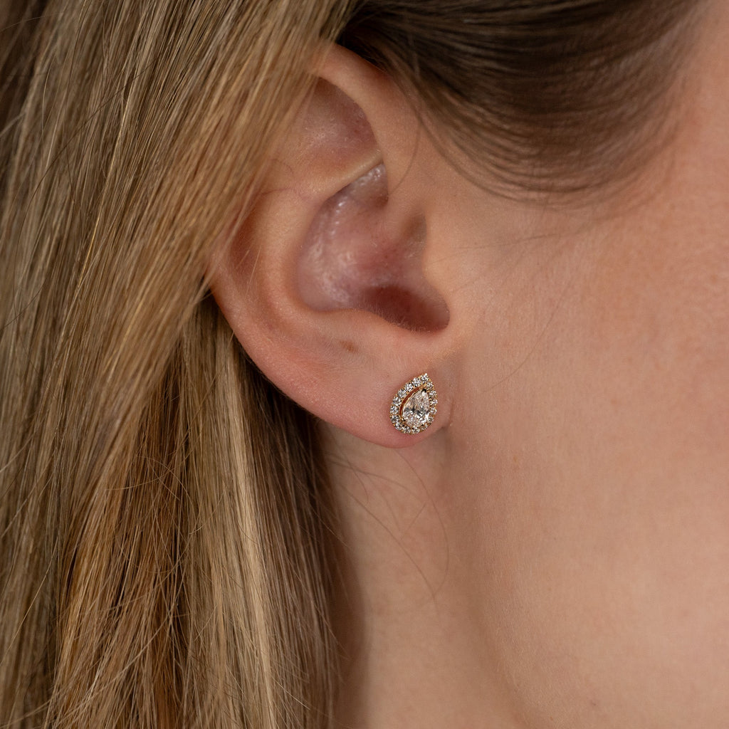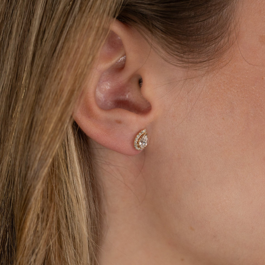 HALO PEAR-CUT DIAMOND STUD EARRING - 0.7ct - YG