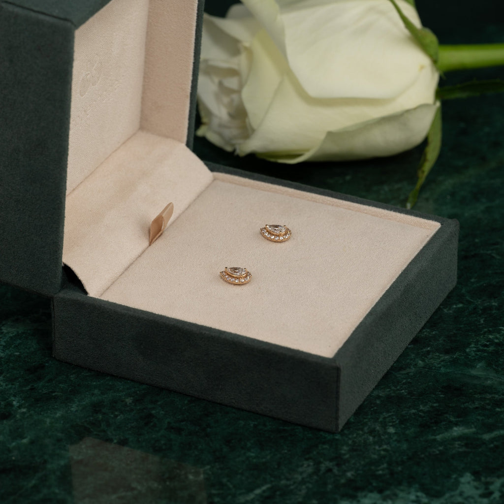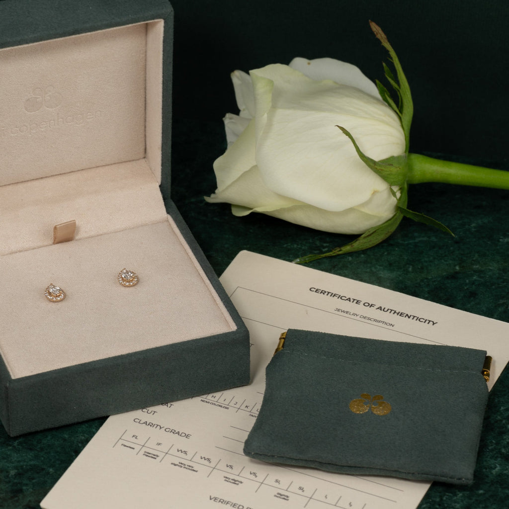 Øredobbene leveres i vår eksklusive Diamond Collection-boks med gavebånd. I boksen finner du en smykkeeske, sertifikat og smykkepose.