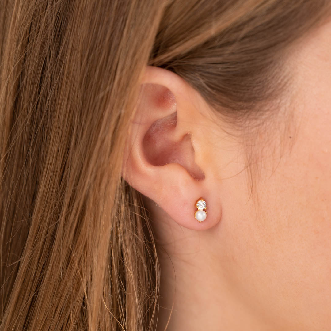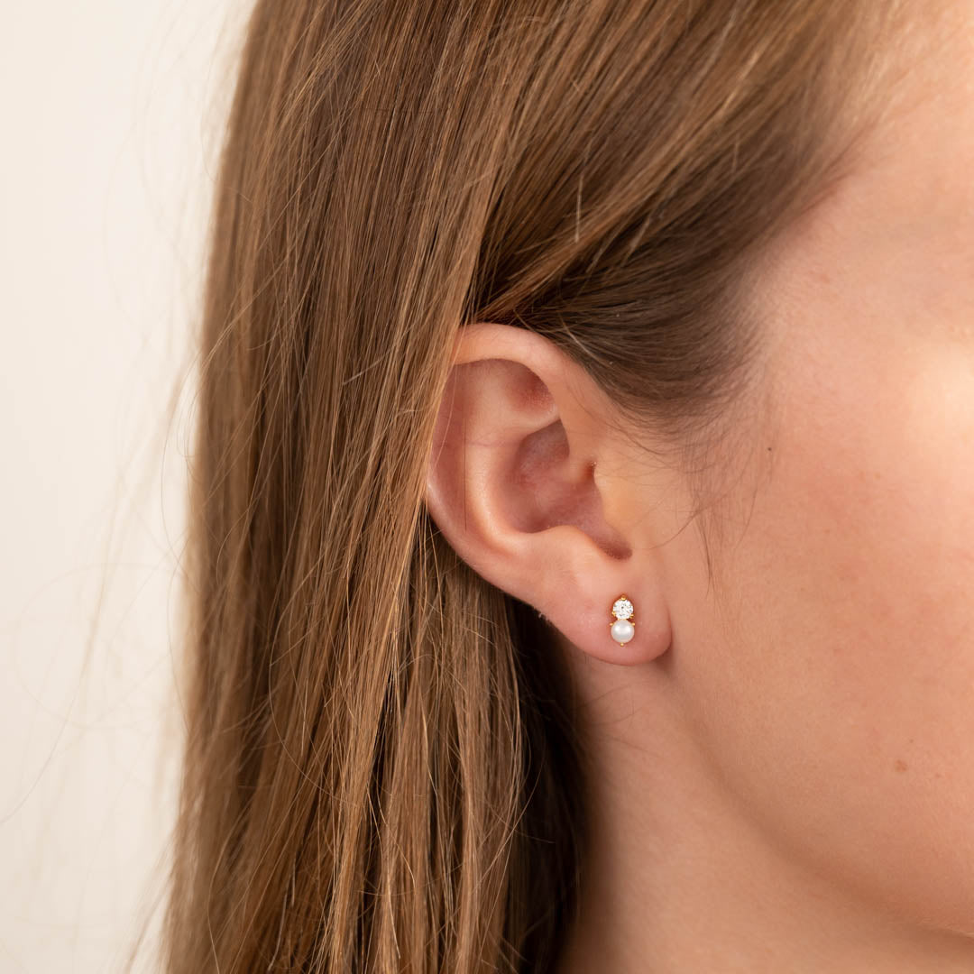 Våre Hannah øredobber har et klassisk og tidløst design. De består av en fin, liten ferskvannsperle og en zirkoniasten som sitter ved siden av hverandre. Øredeobbene måler 7mm på det lengste.