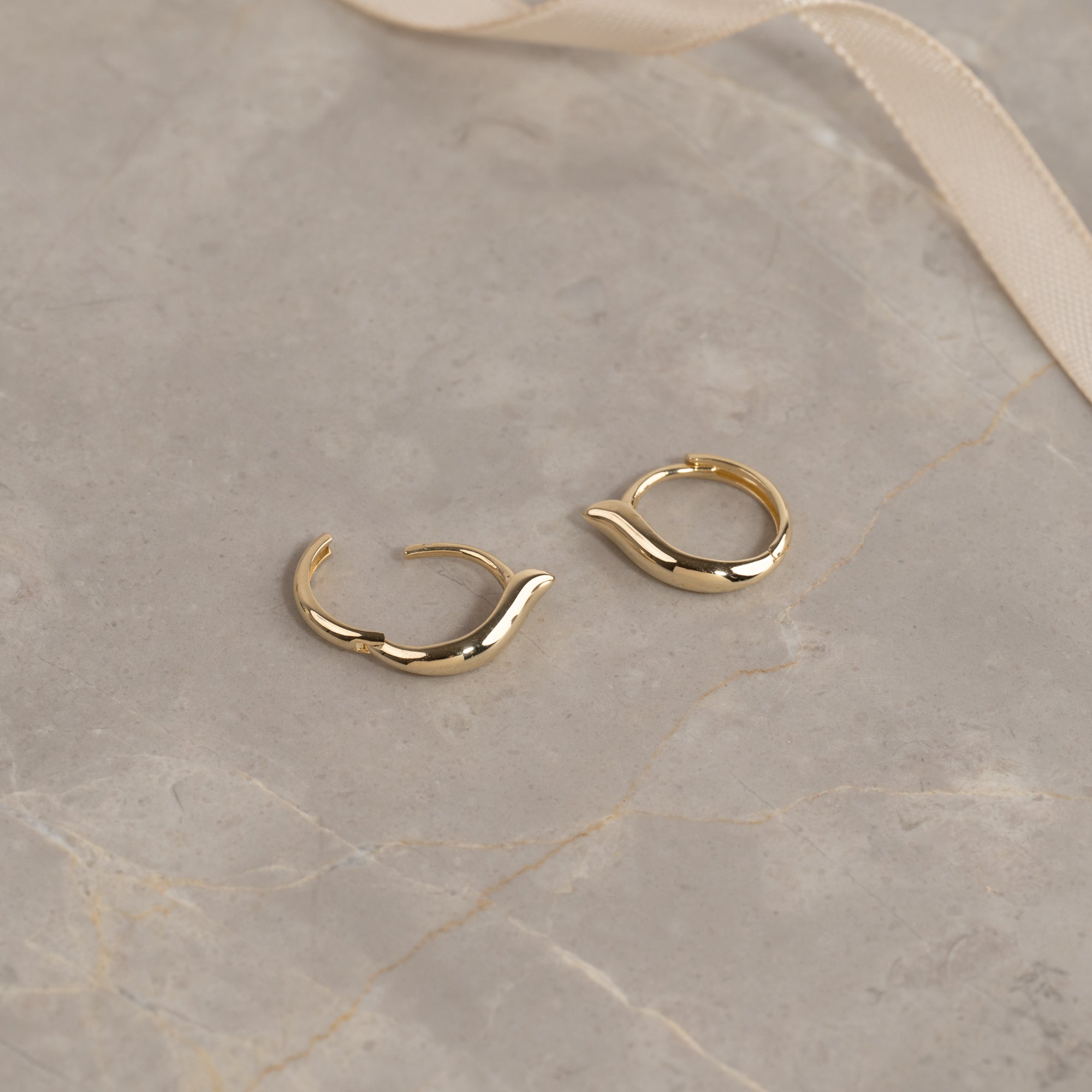 Øredobbene har et organisk preg med en lett bølgende silhuett som gir et elegant og moderne uttrykk. Det enkle designet gjør dem allsidige, perfekte både til hverdagsbruk og til spesielle anledninger.