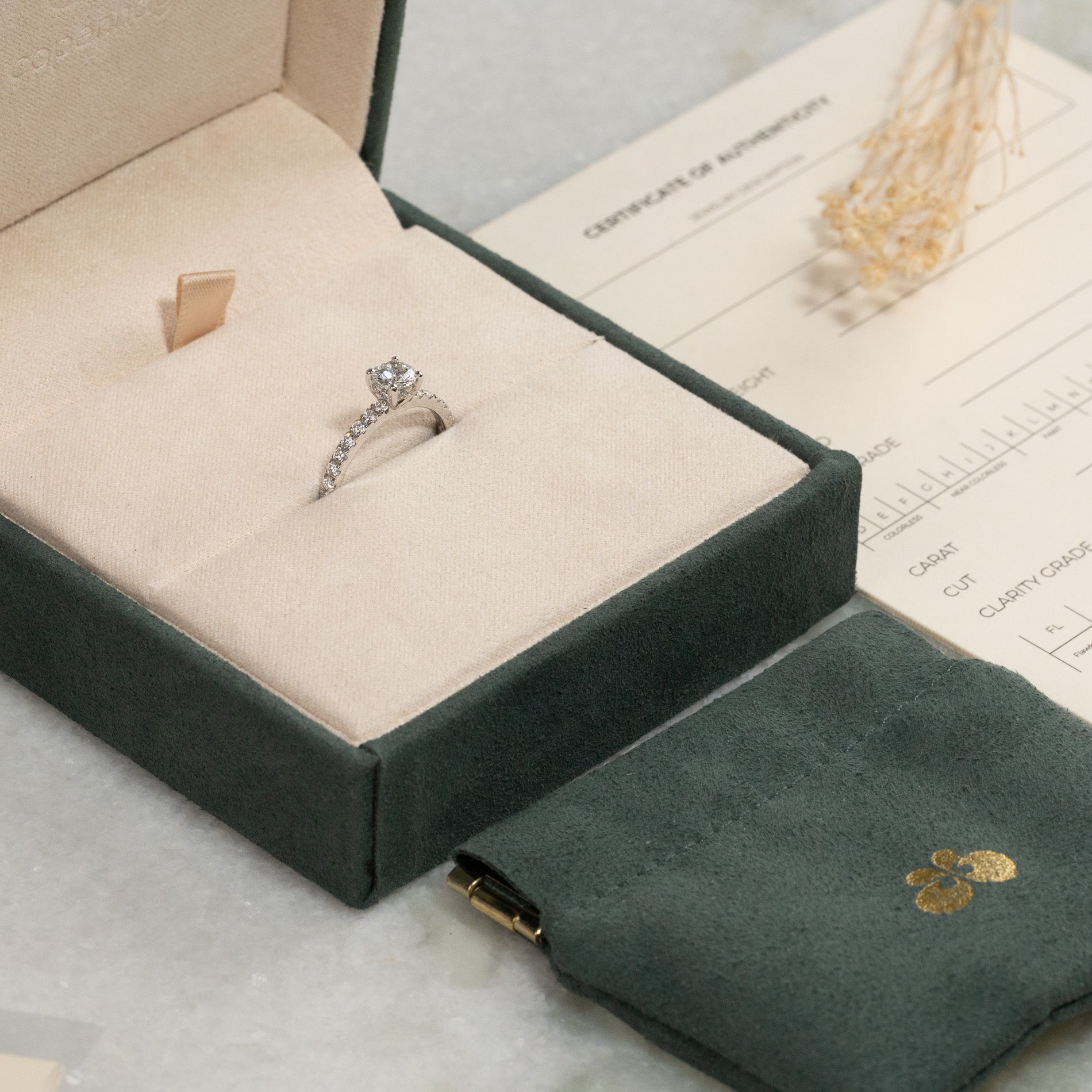 Sertifikatet inneholder all relevant og spesifikk informasjon om smykket, inkludert de 4 C'ene.