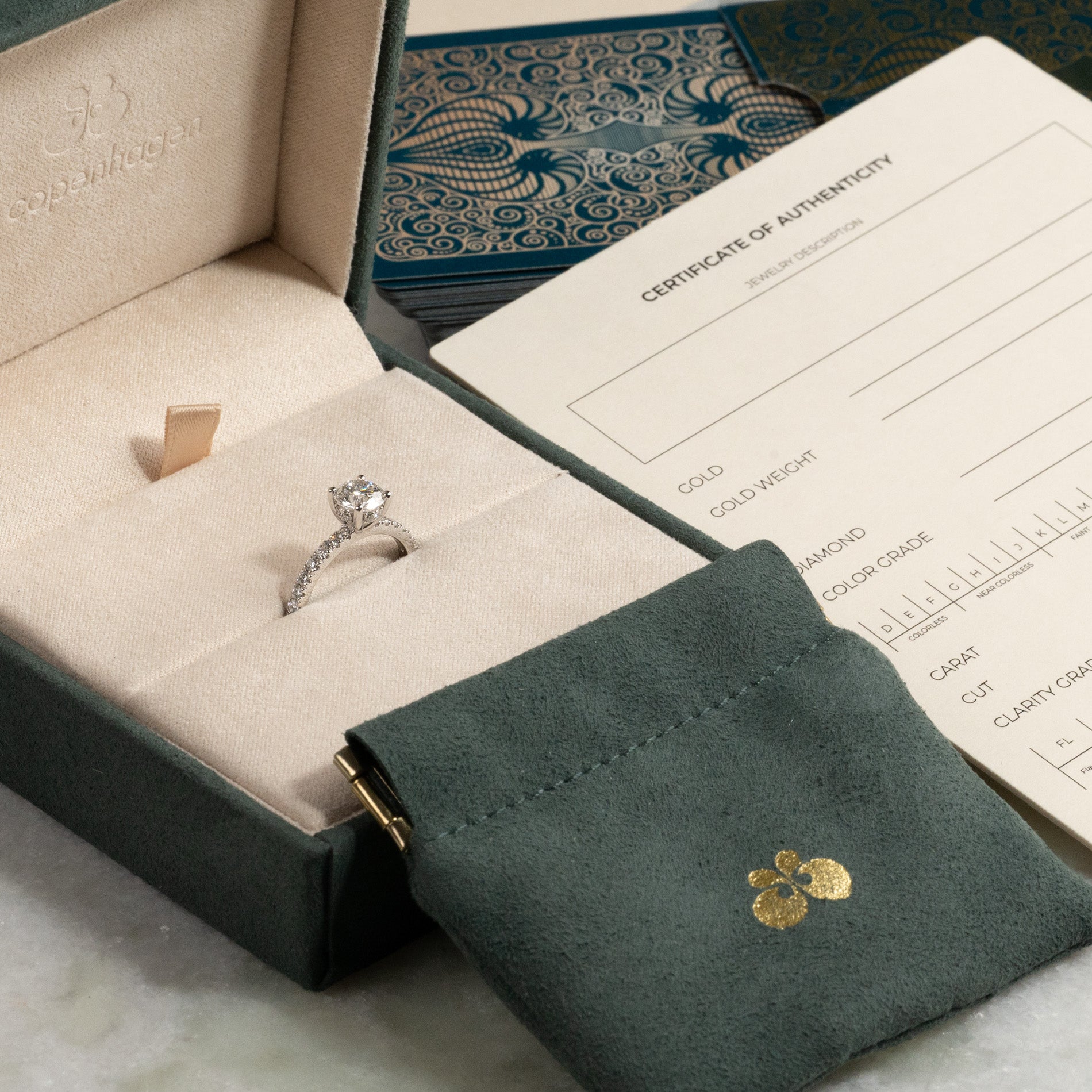 Sertifikatet inneholder all relevant og spesifikk informasjon om smykket, inkludert de 4 C'ene.