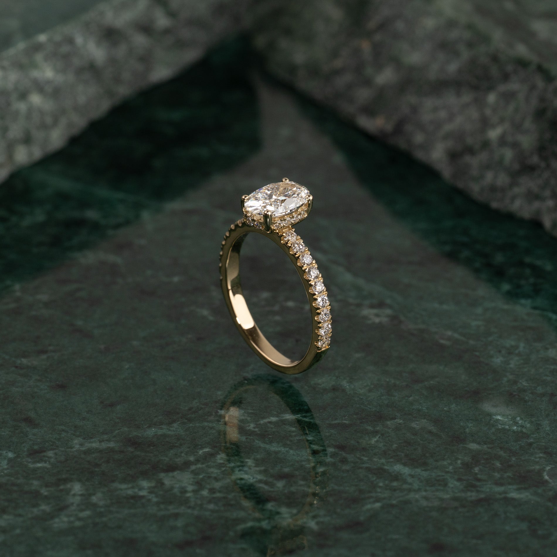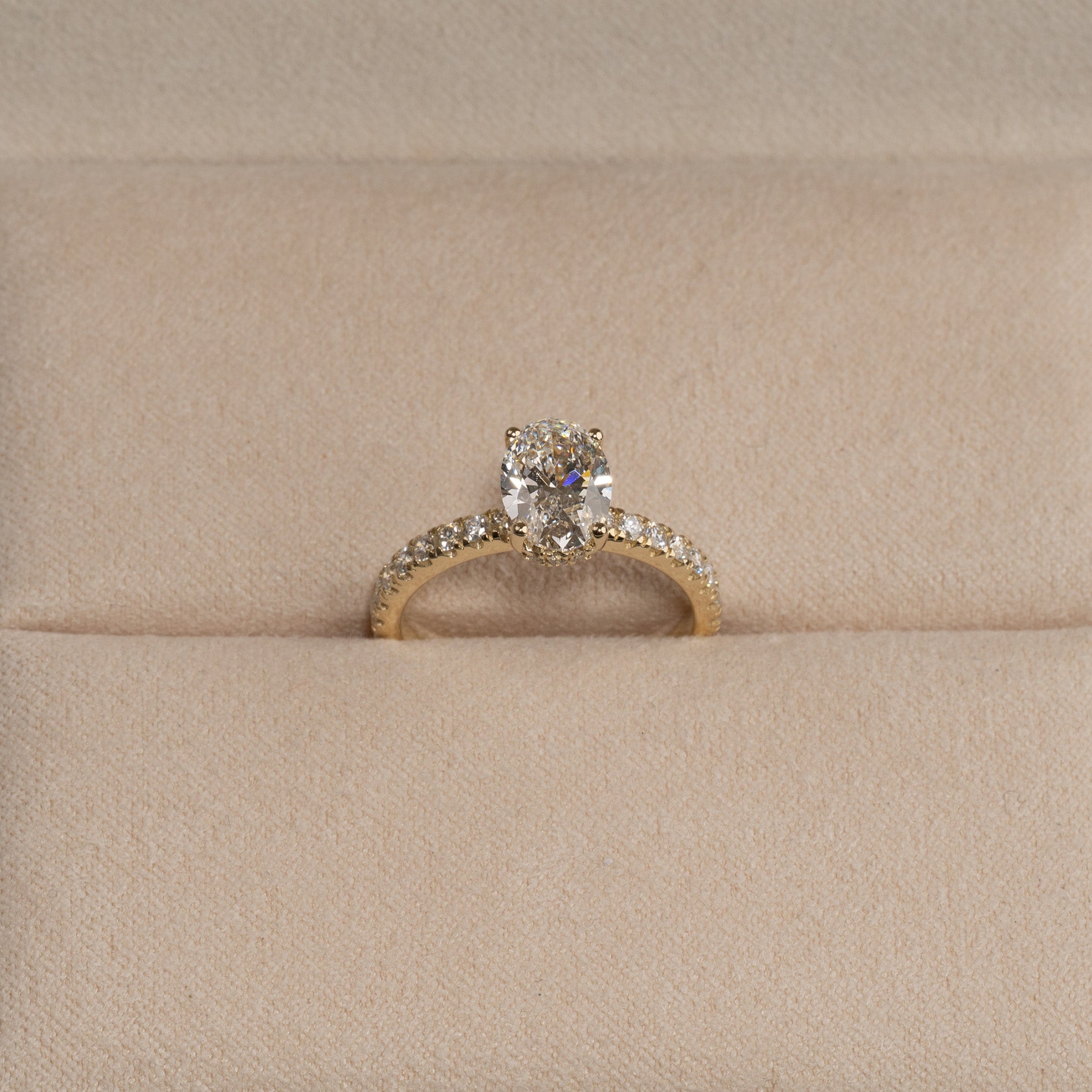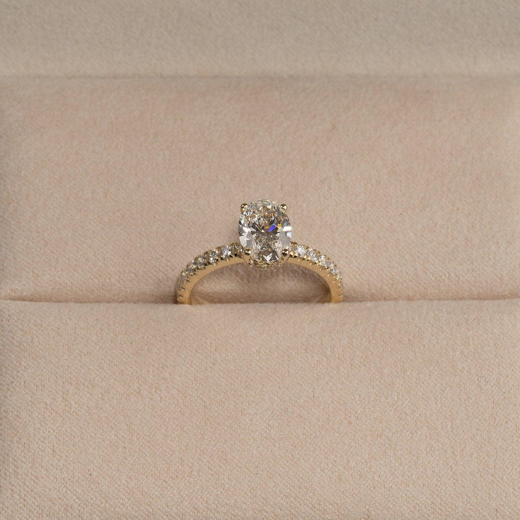 HIDDEN HALO OVAL-CUT ALLIANCE DIAMOND RING - 2.0ct - YG
