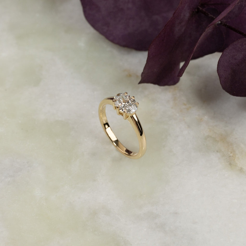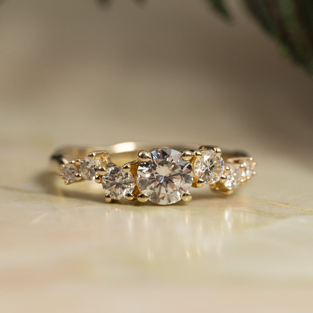 Ringen er laget i 14 karat gull med laboratoriedyrkede diamanter på totalt 1,5 ct. Diamantene har fargen E/F (River) og klarheten VVS. Smykket er laget med omtanke; diamantene er produsert ved hjelp av solenergi, og gullet er 100 % sertifisert resirkulert.