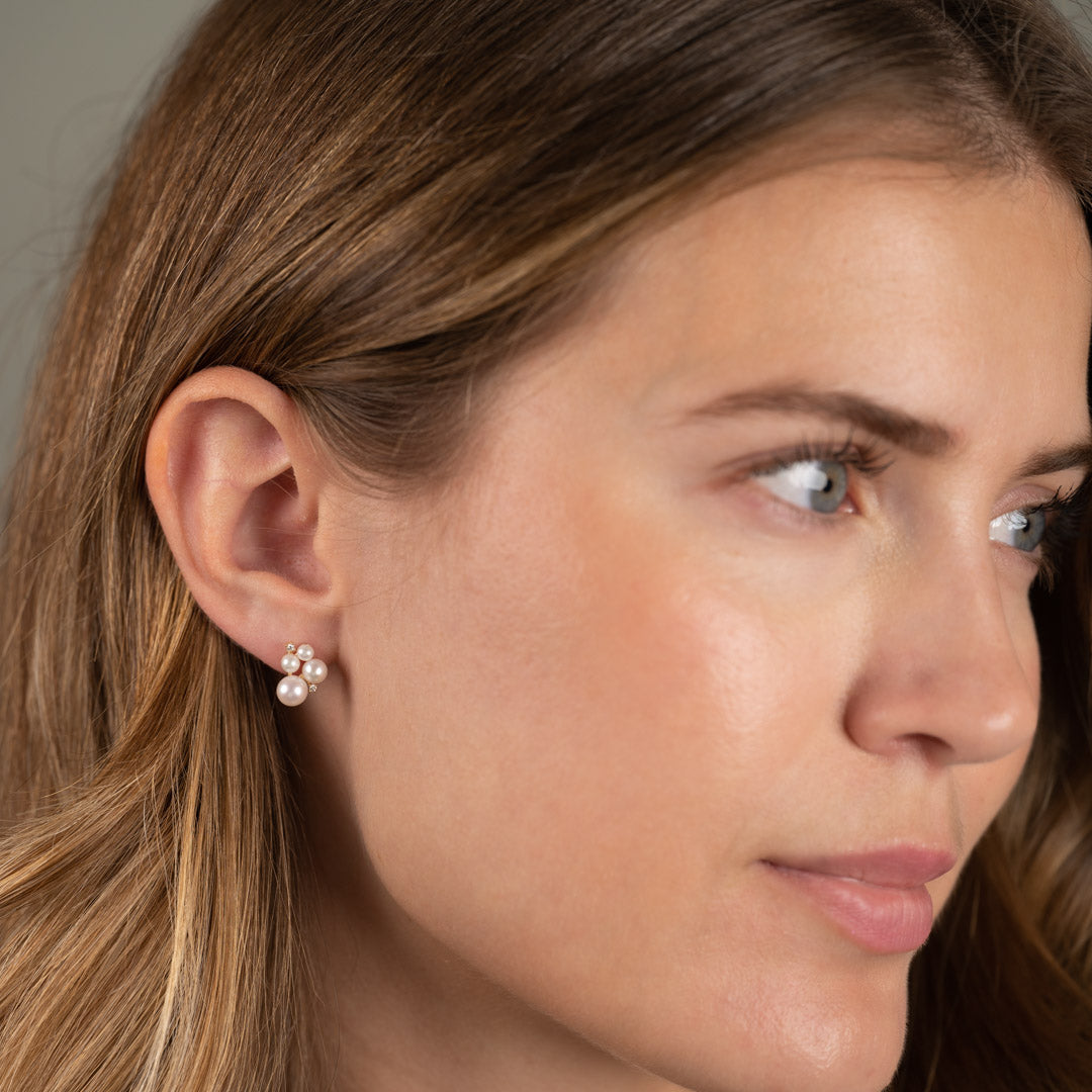 Denne øredobben er designet som en klassisk øredobb med sommerfugllås. Kombinasjonen av de feminine ferskvannsperlene og de vakre diamantene skaper et lett volum når du bruker øredobbene.
