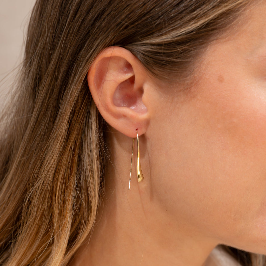 Øredobbene har et enkelt og klassisk uttrykk og er designet i en avlang, åpen form uten bakstopp. De er lette å kombinere med nesten alle typer øredobber og passer perfekt både til hverdagsbruk og festlige anledninger.