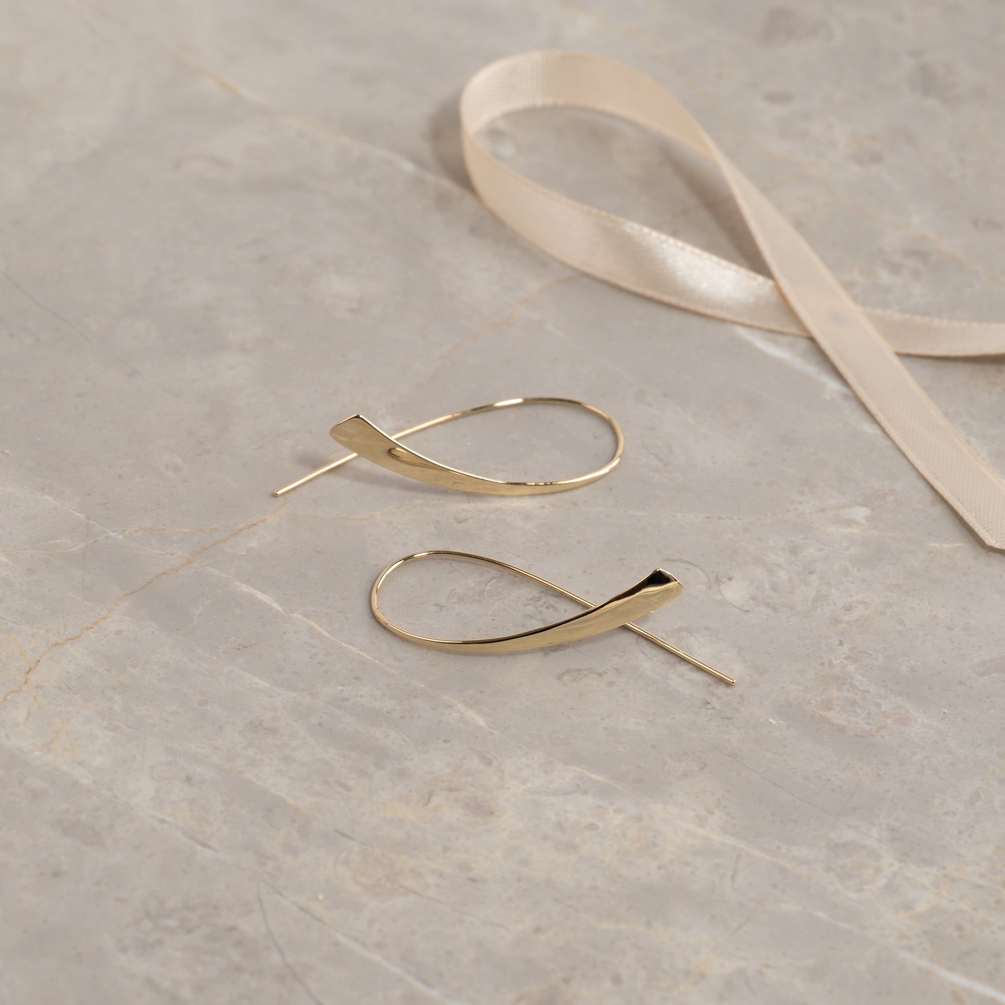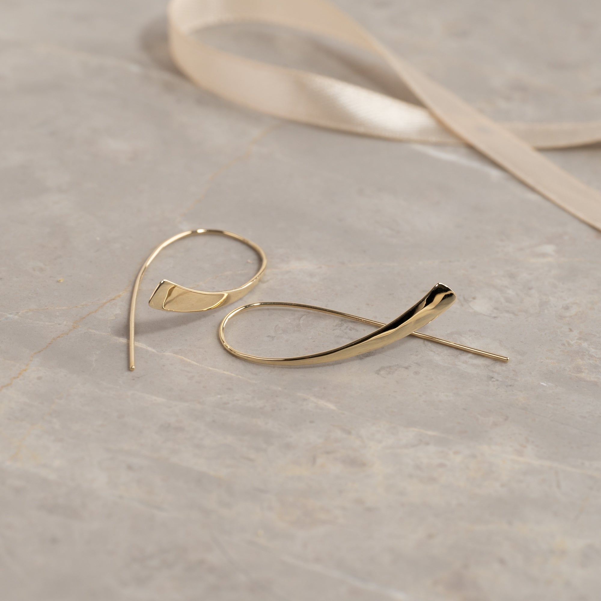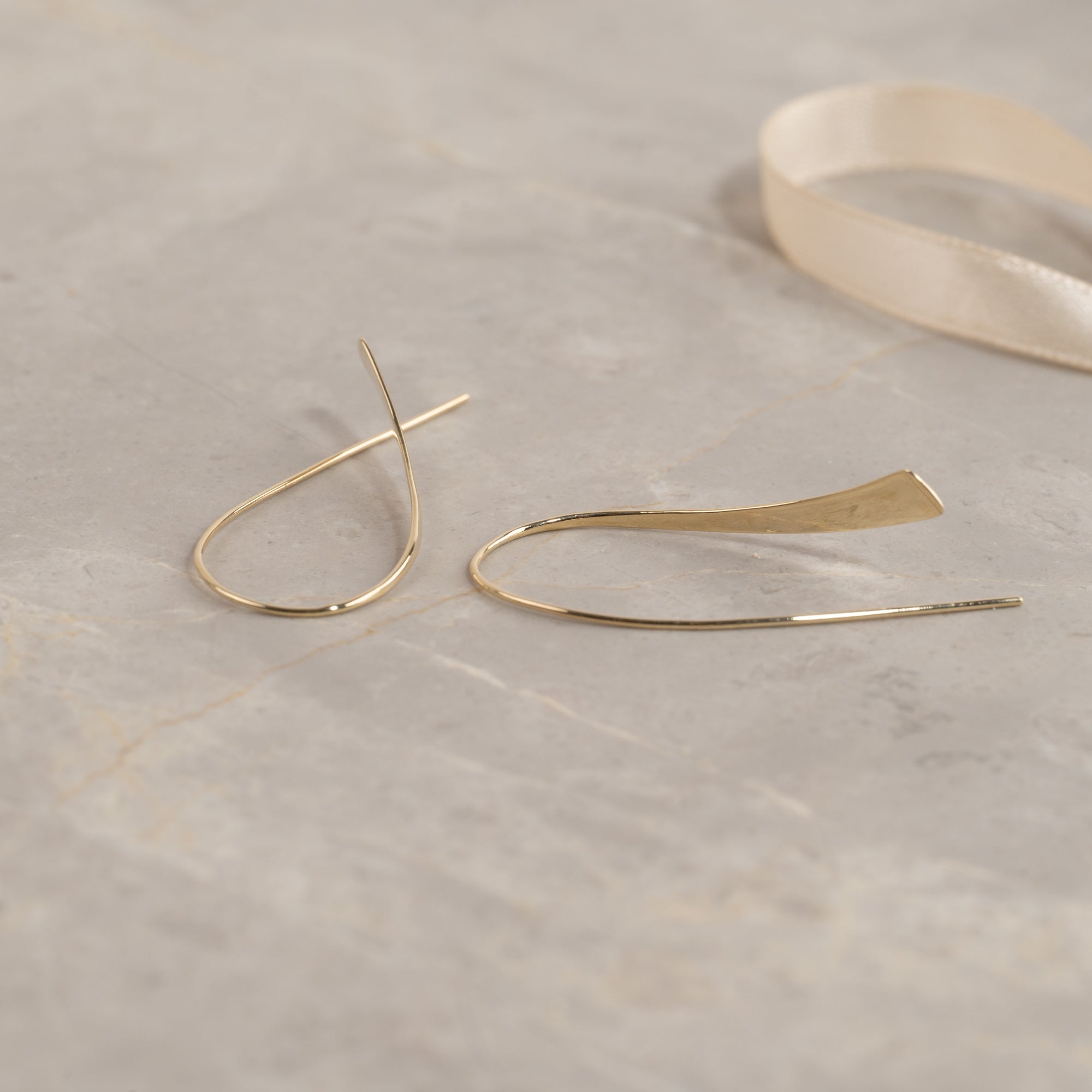 Avlange åpne øreringer i massivt gull