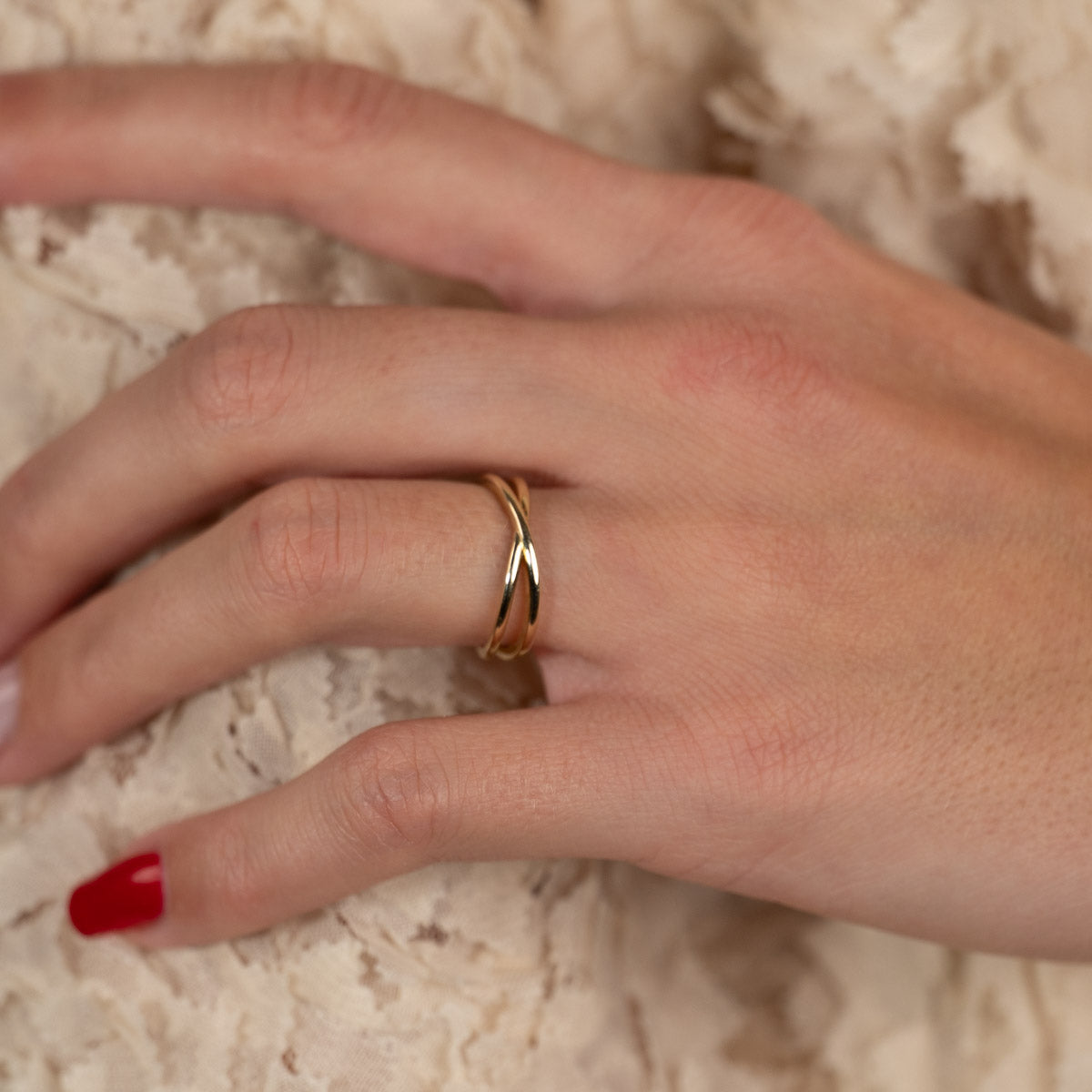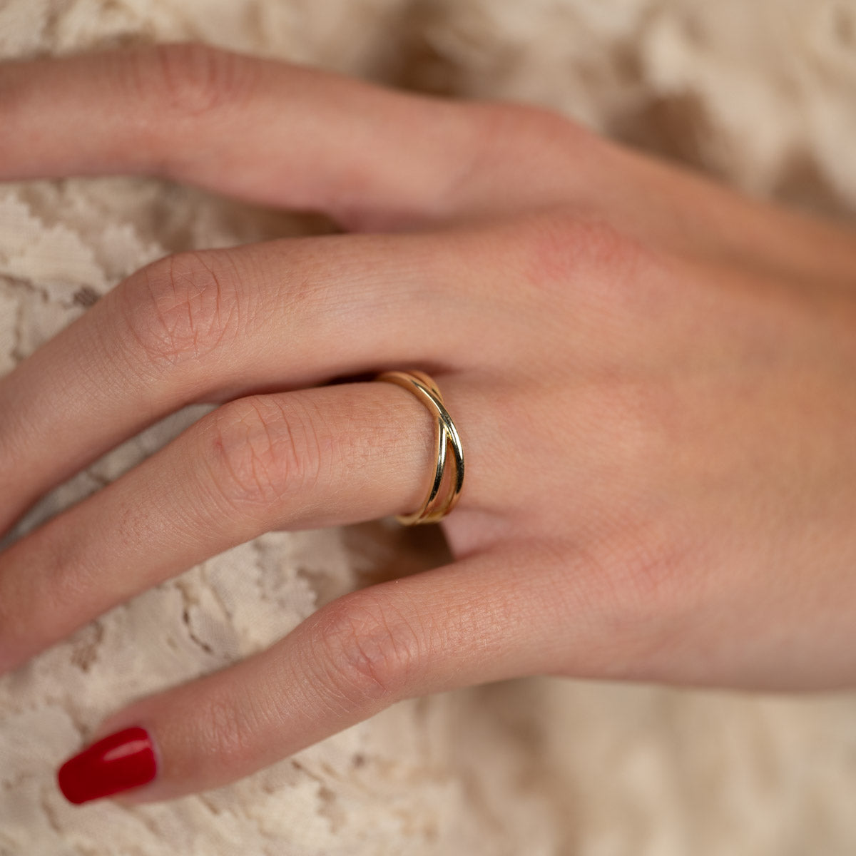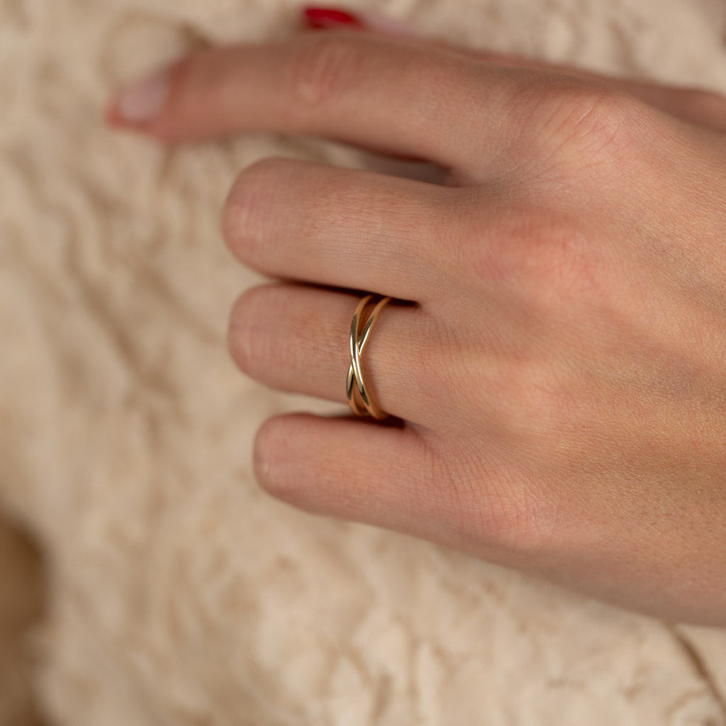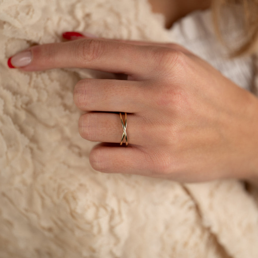 Gullring i krysset design