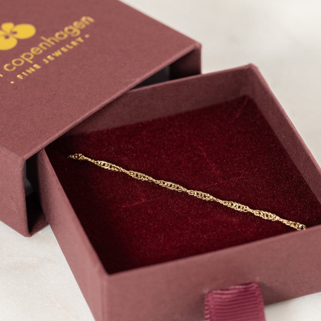 Alle våre 9kt Solid Gold-smykker kommer i vakker pakking.