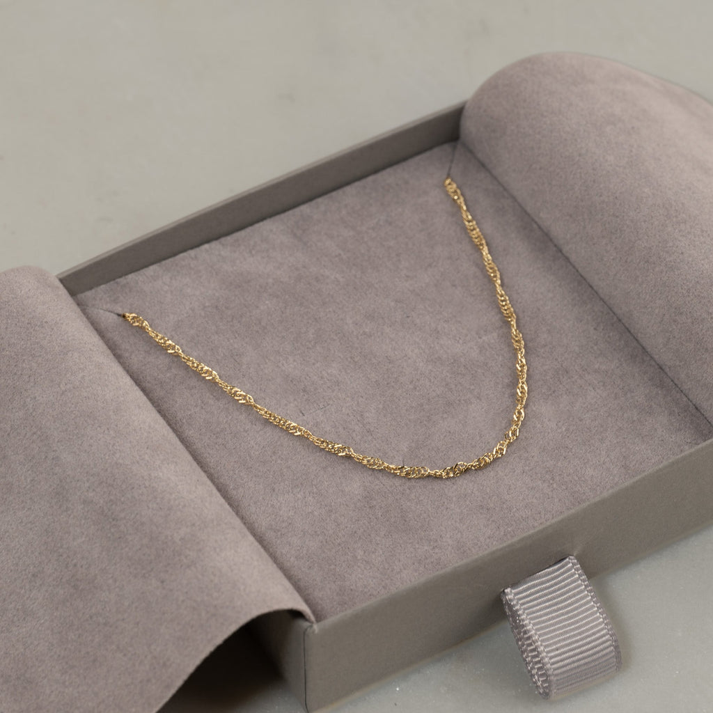 Alle våre 9kt Solid Gold-smykker kommer i vakker pakking.