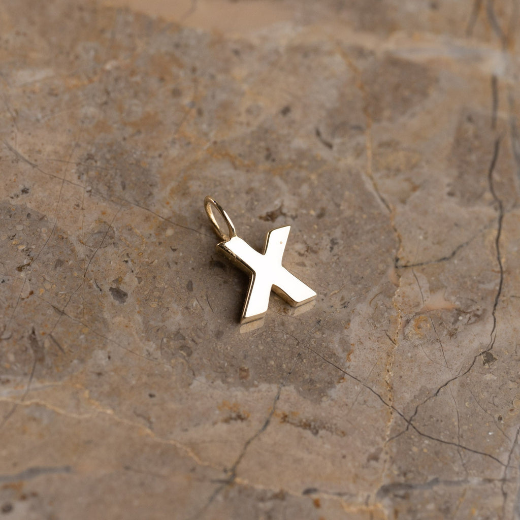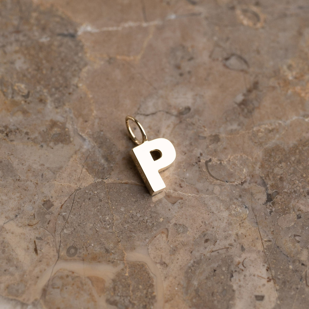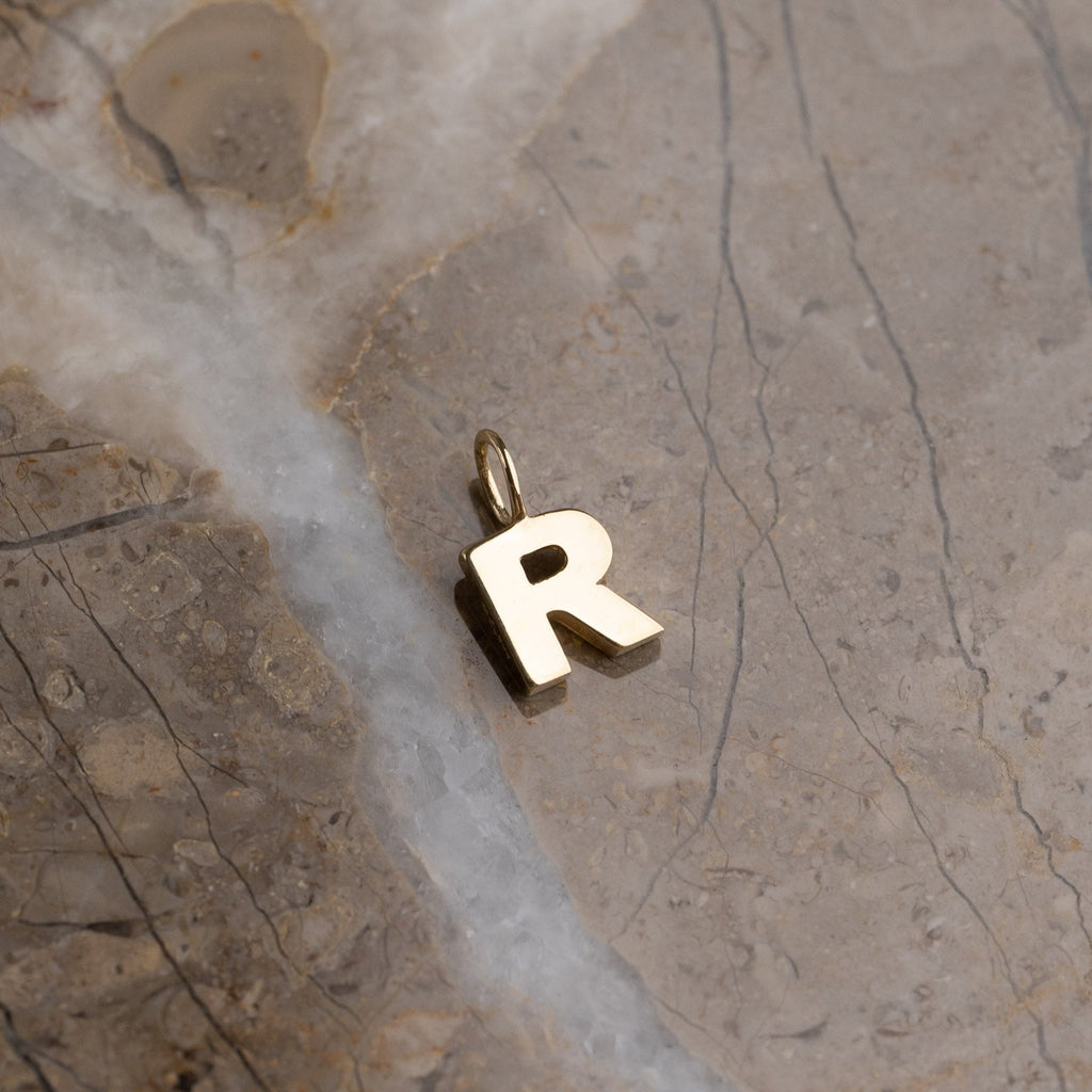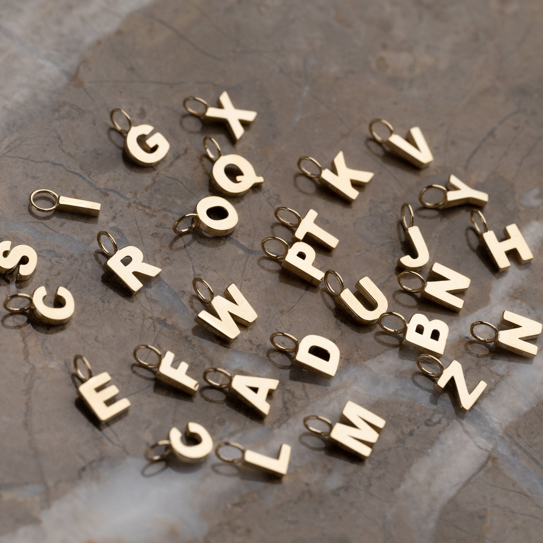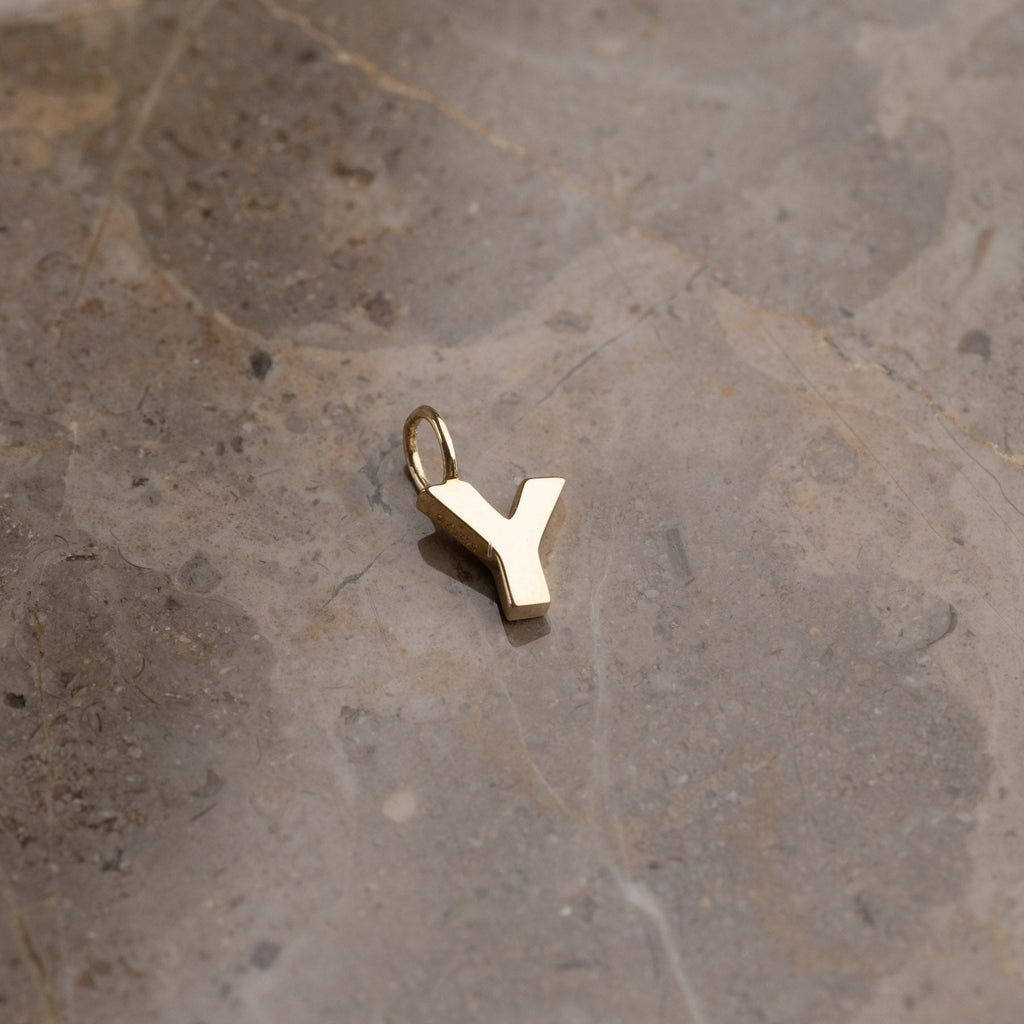 Vårt Letter Solid Gold anheng er laget av 100% resirkulert 9 karat massivt gull. Bokstavene måler 6 mm i høyden.
