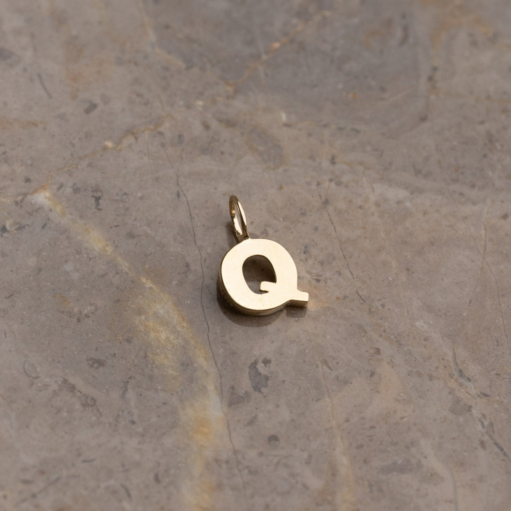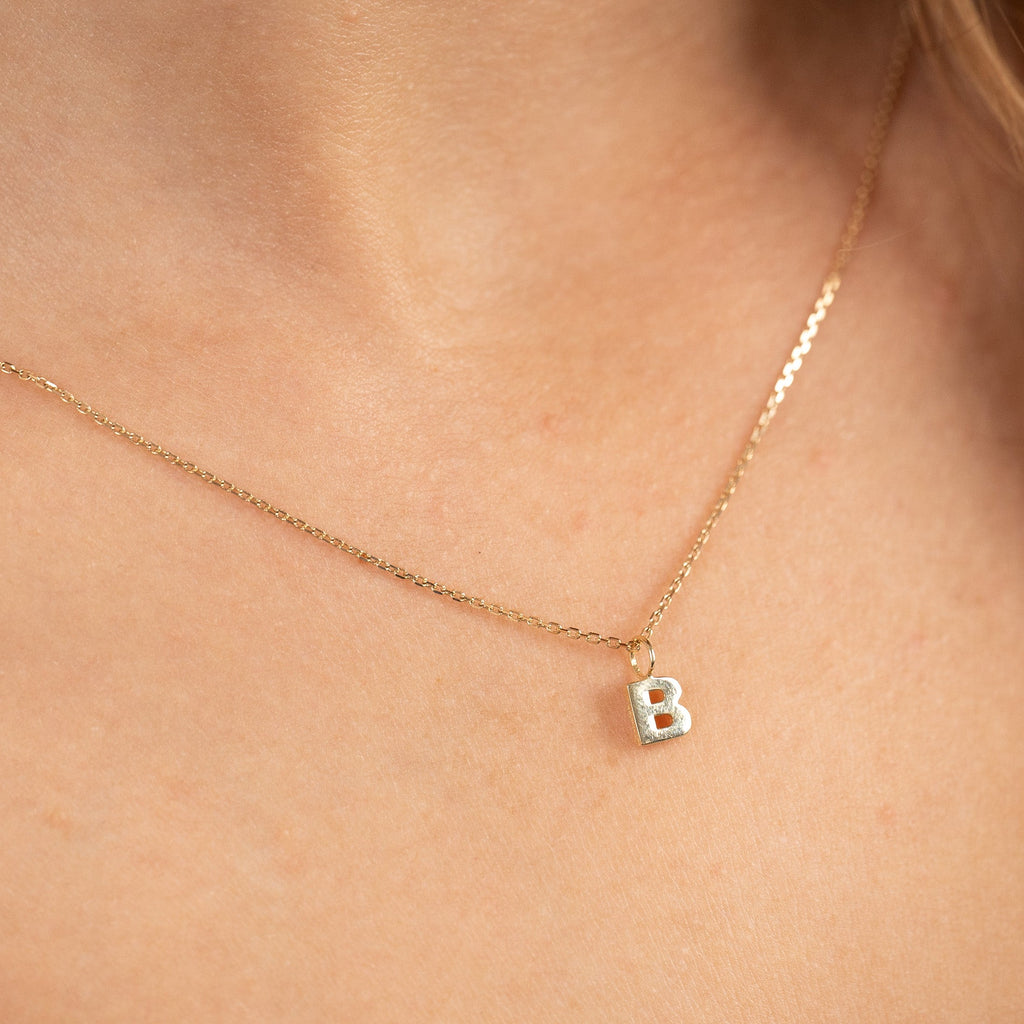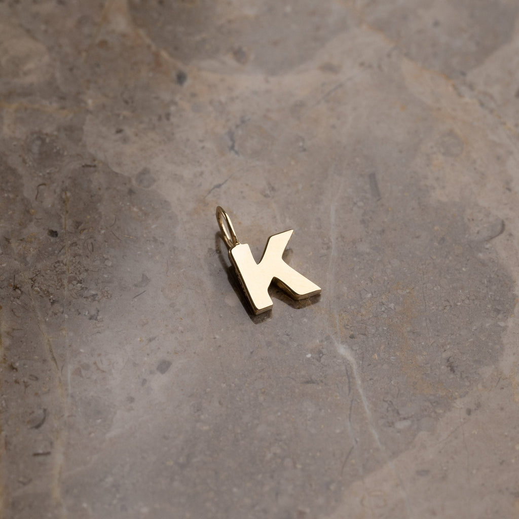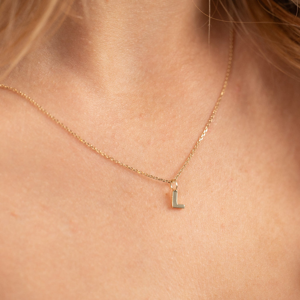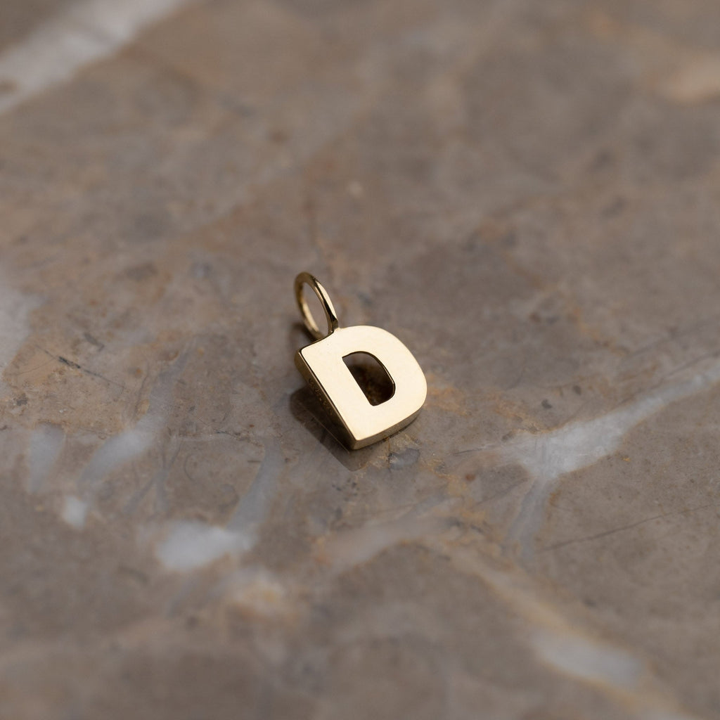 Vårt Letter Solid Gold anheng er laget av 100% resirkulert 9 karat massivt gull. Bokstavene måler 6 mm i høyden.
