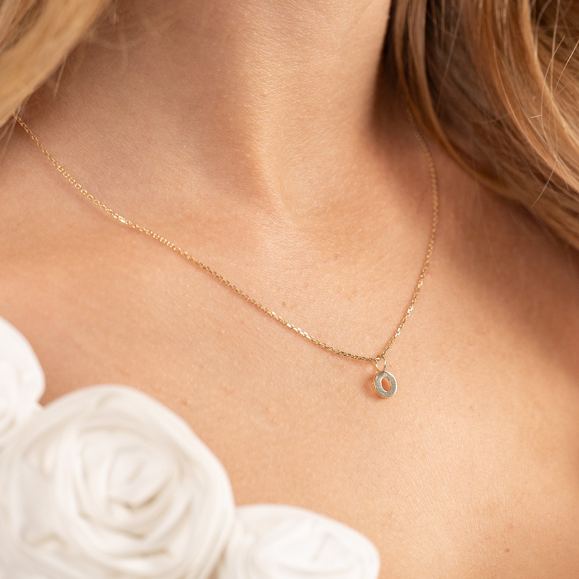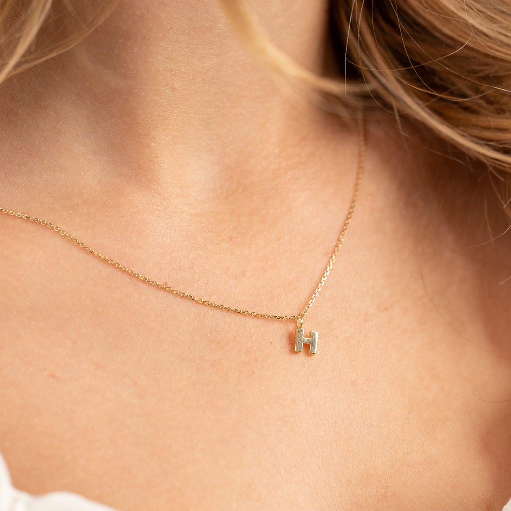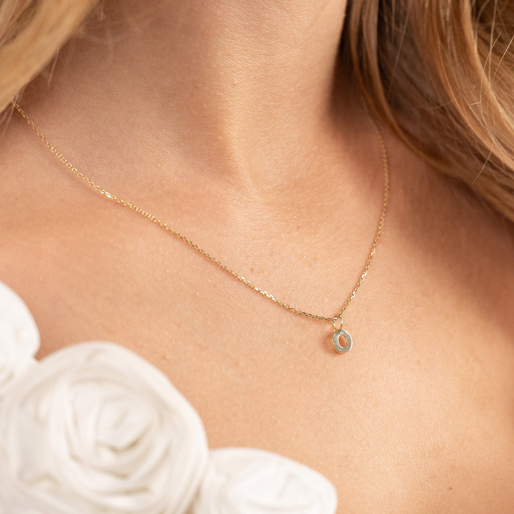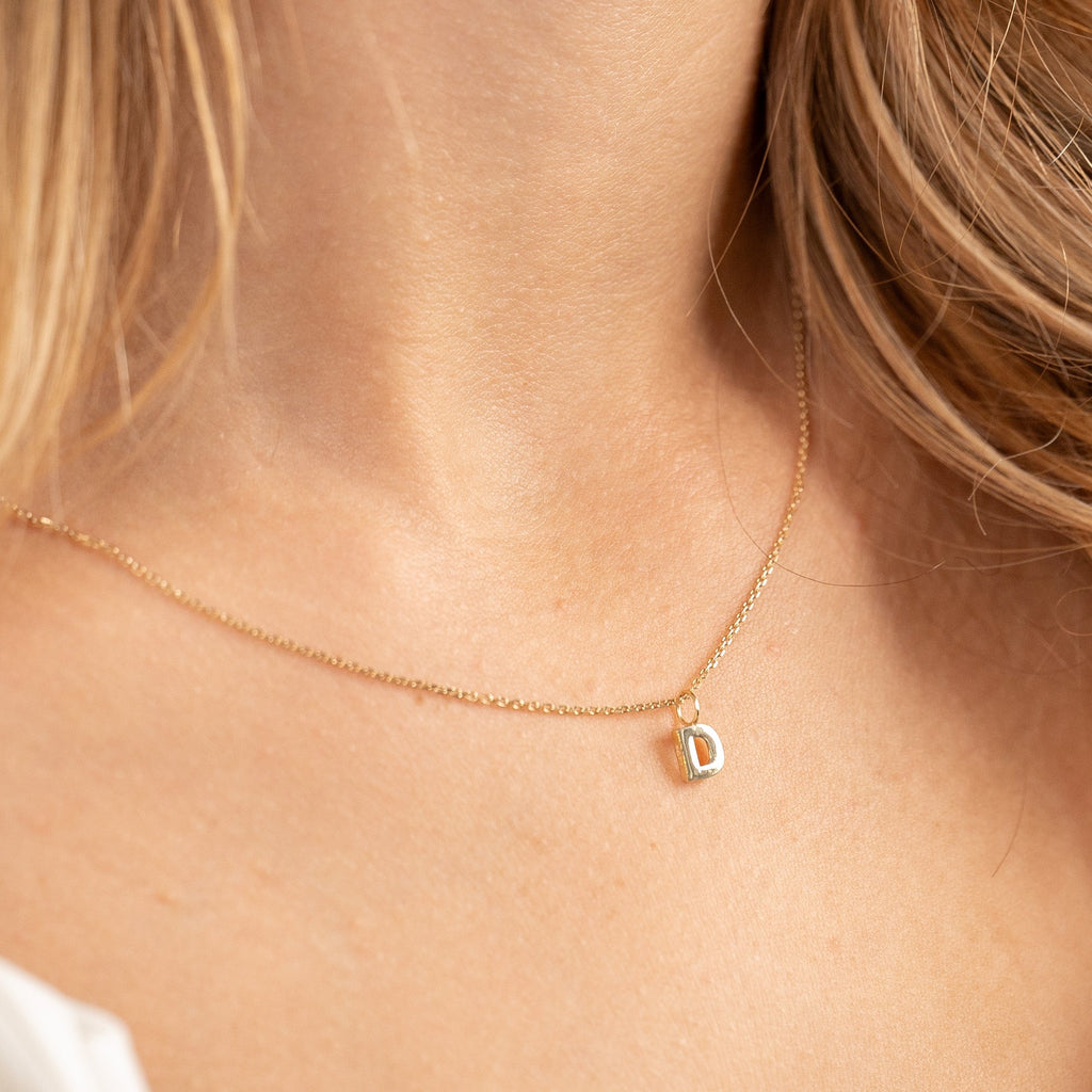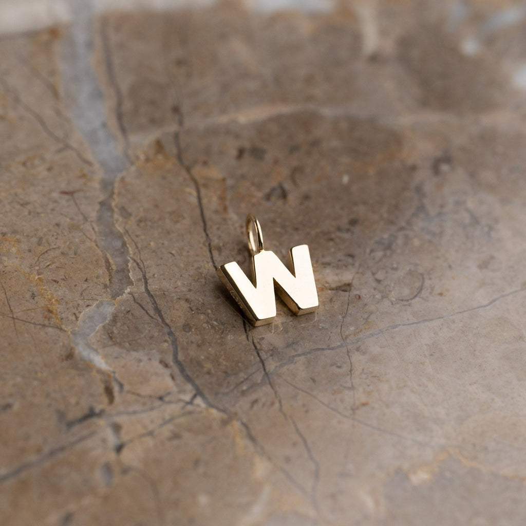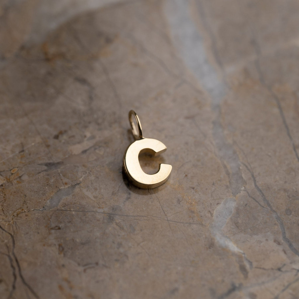 Vårt Letter Solid Gold anheng er laget av 100% resirkulert 9 karat massivt gull. Bokstavene måler 6 mm i høyden.